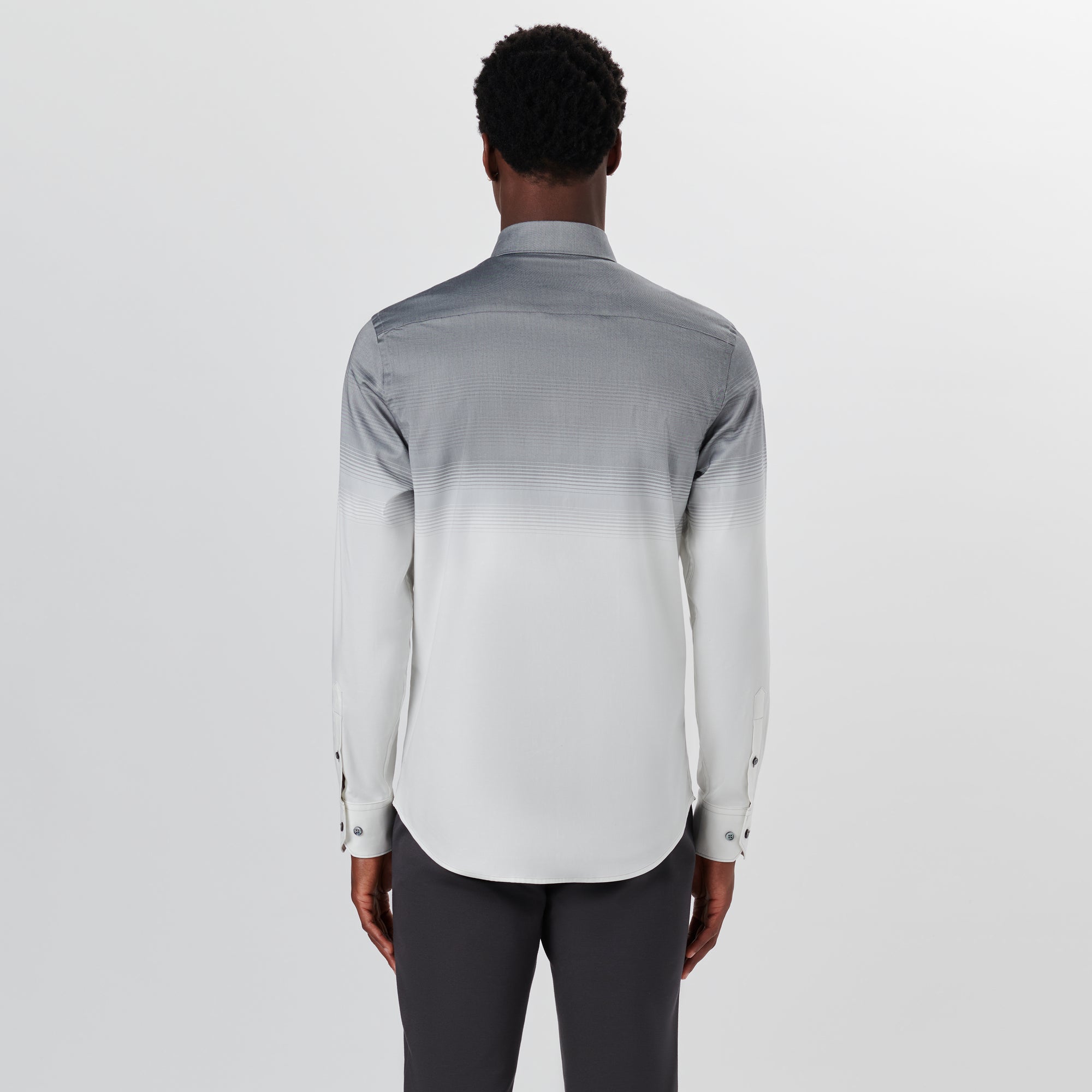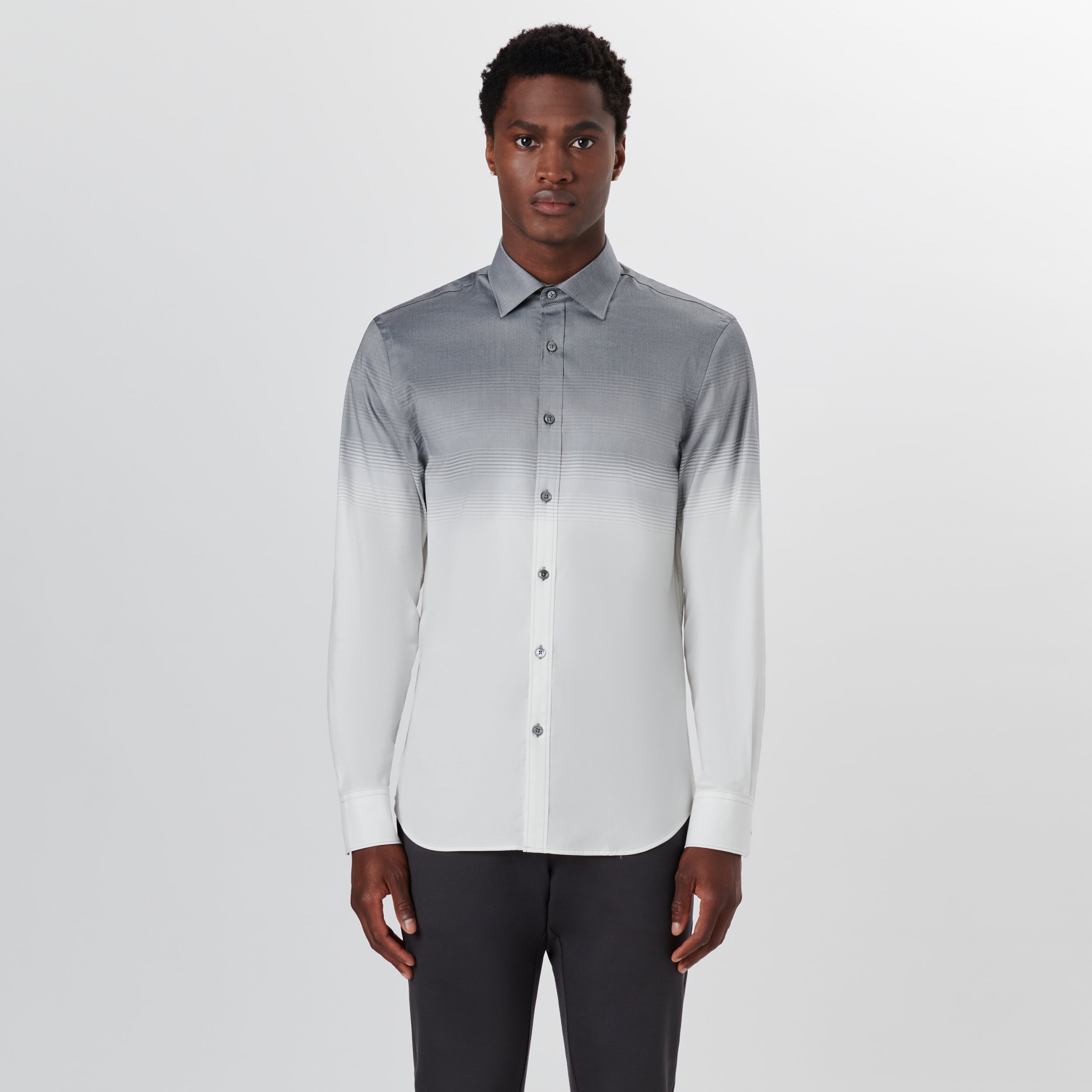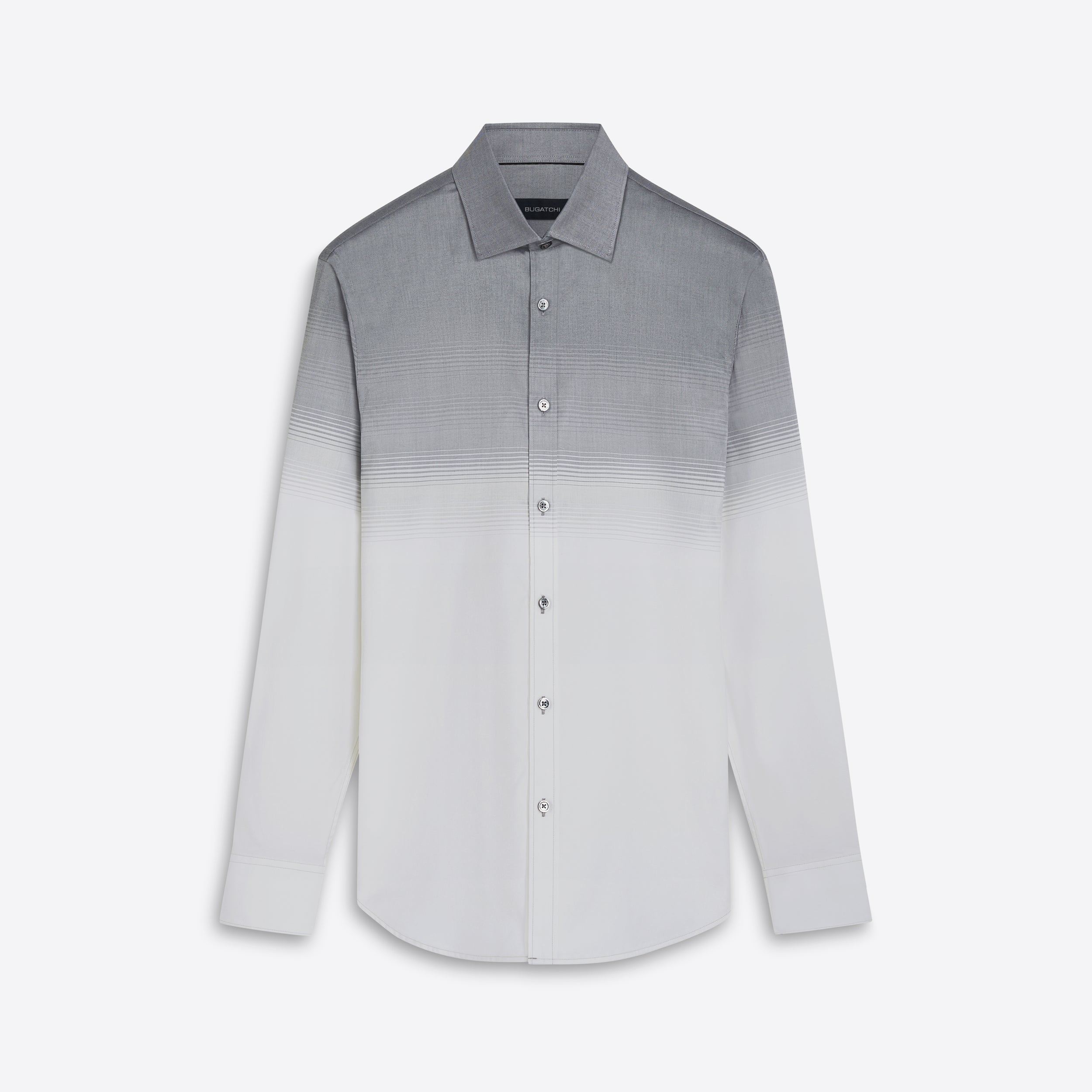 JULIAN long-sleeved shirt in degrade stripe COMFORT STRETCH cotton with point collar, adjustable notched cuffs and curved hem.