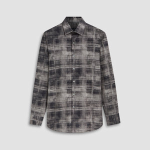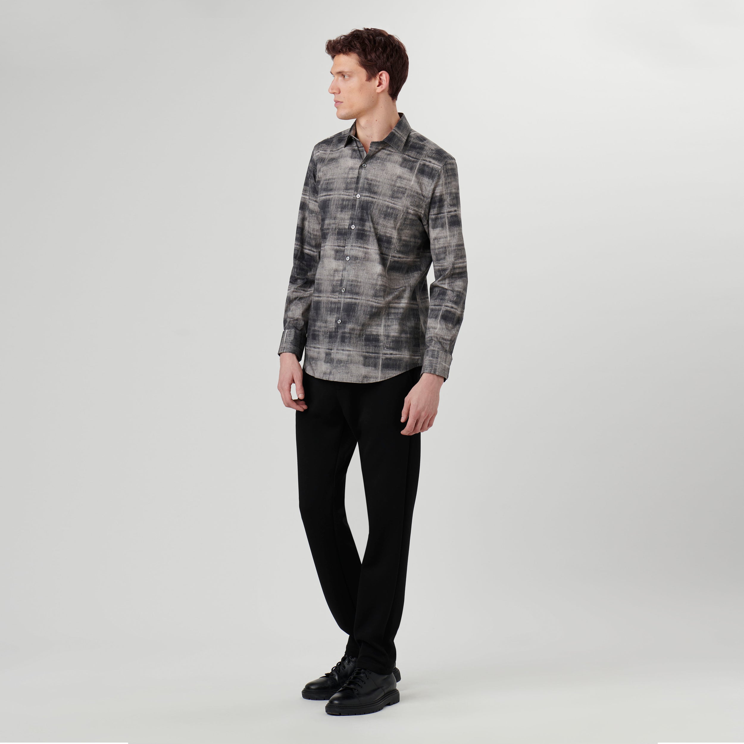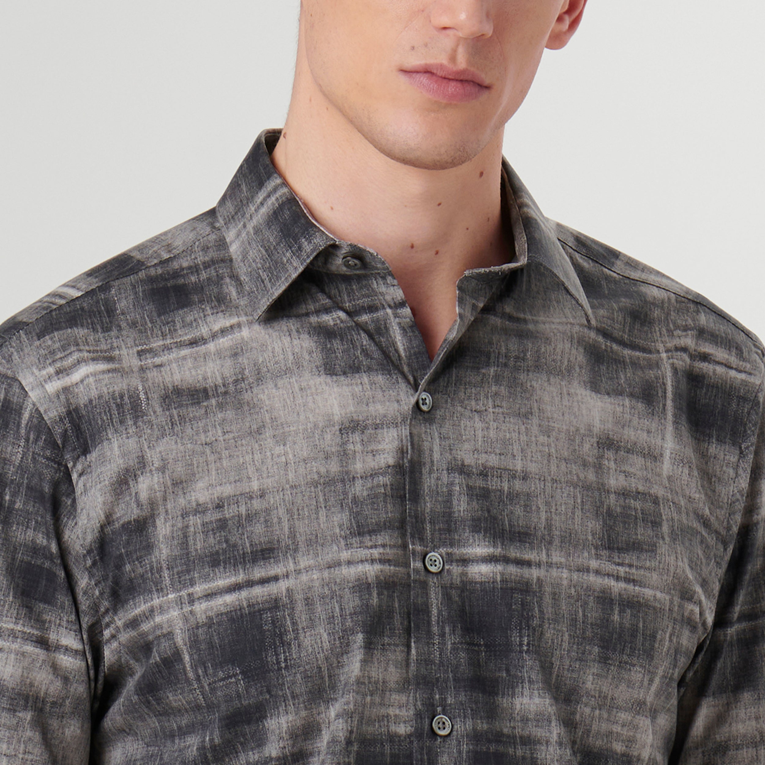 Julian long-sleeved shirt in distressed print COMFORT STRETCH cotton with point collar, adjustable notched cuffs and curved hem.