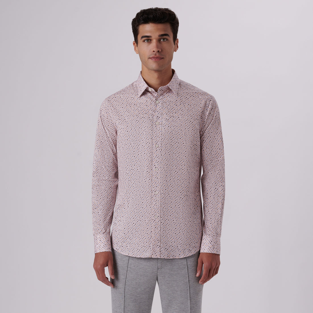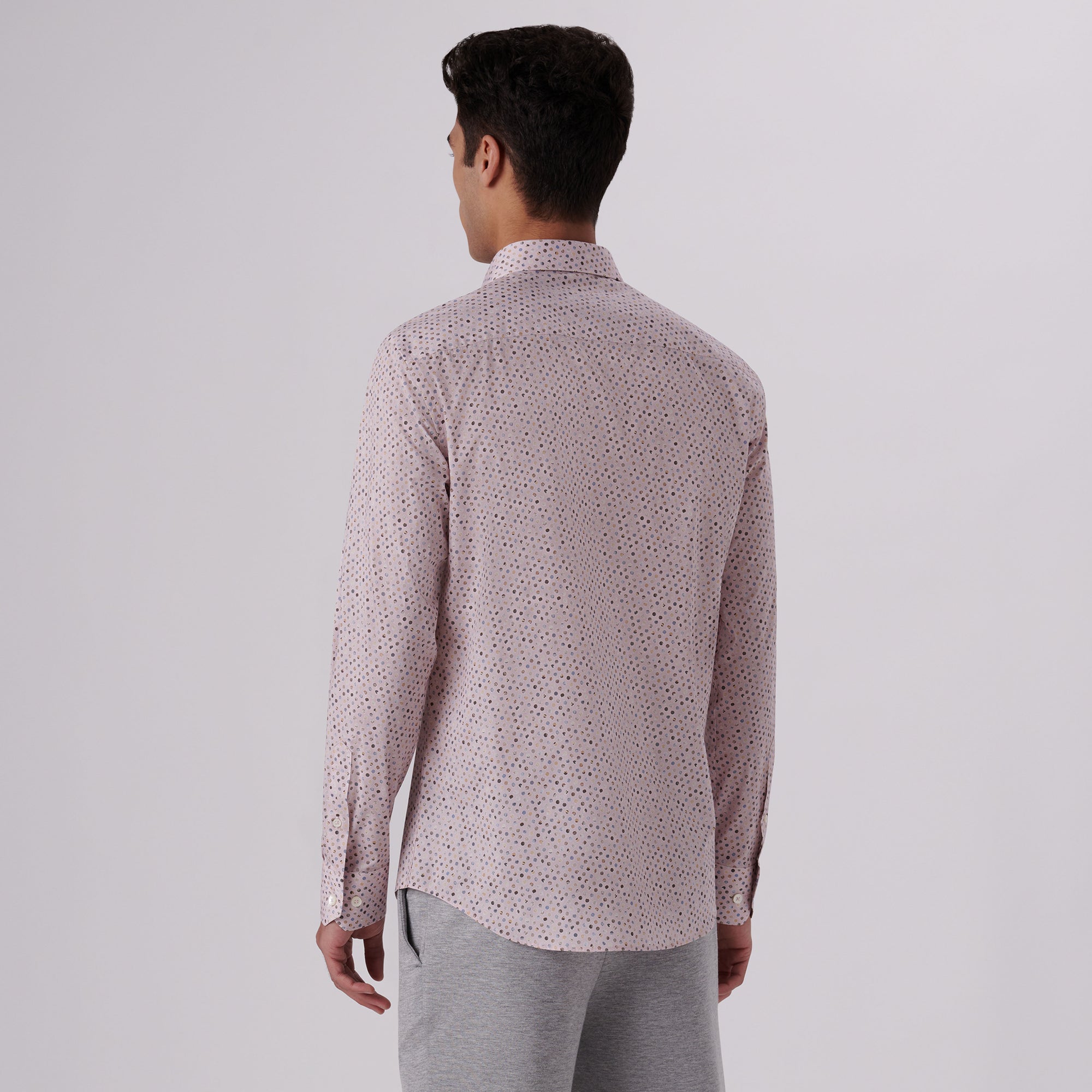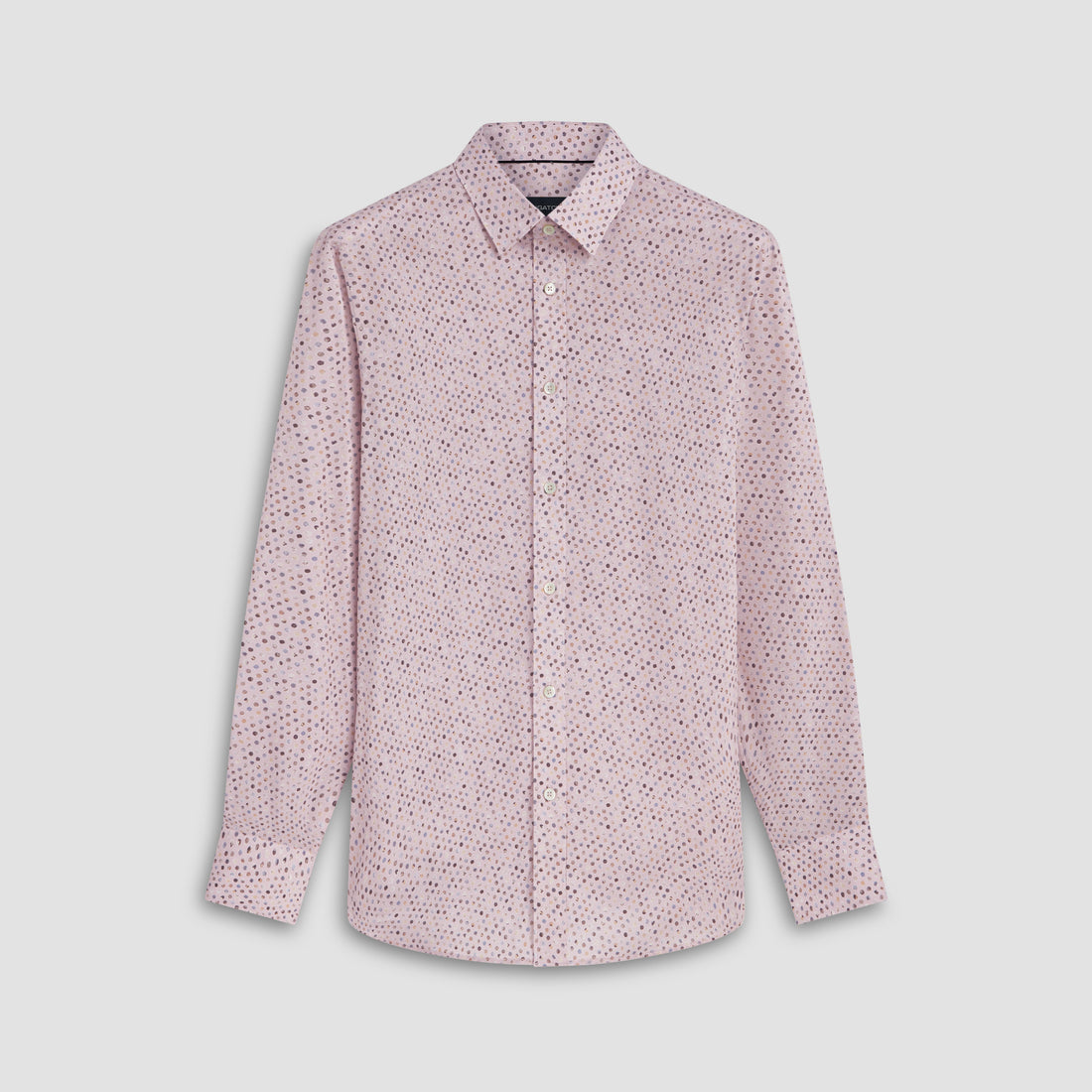 Julian dot print long-sleeved shirt in comfort stretch cotton with point collar, adjustable notched cuffs, genuine shell buttons and a curved hemline.