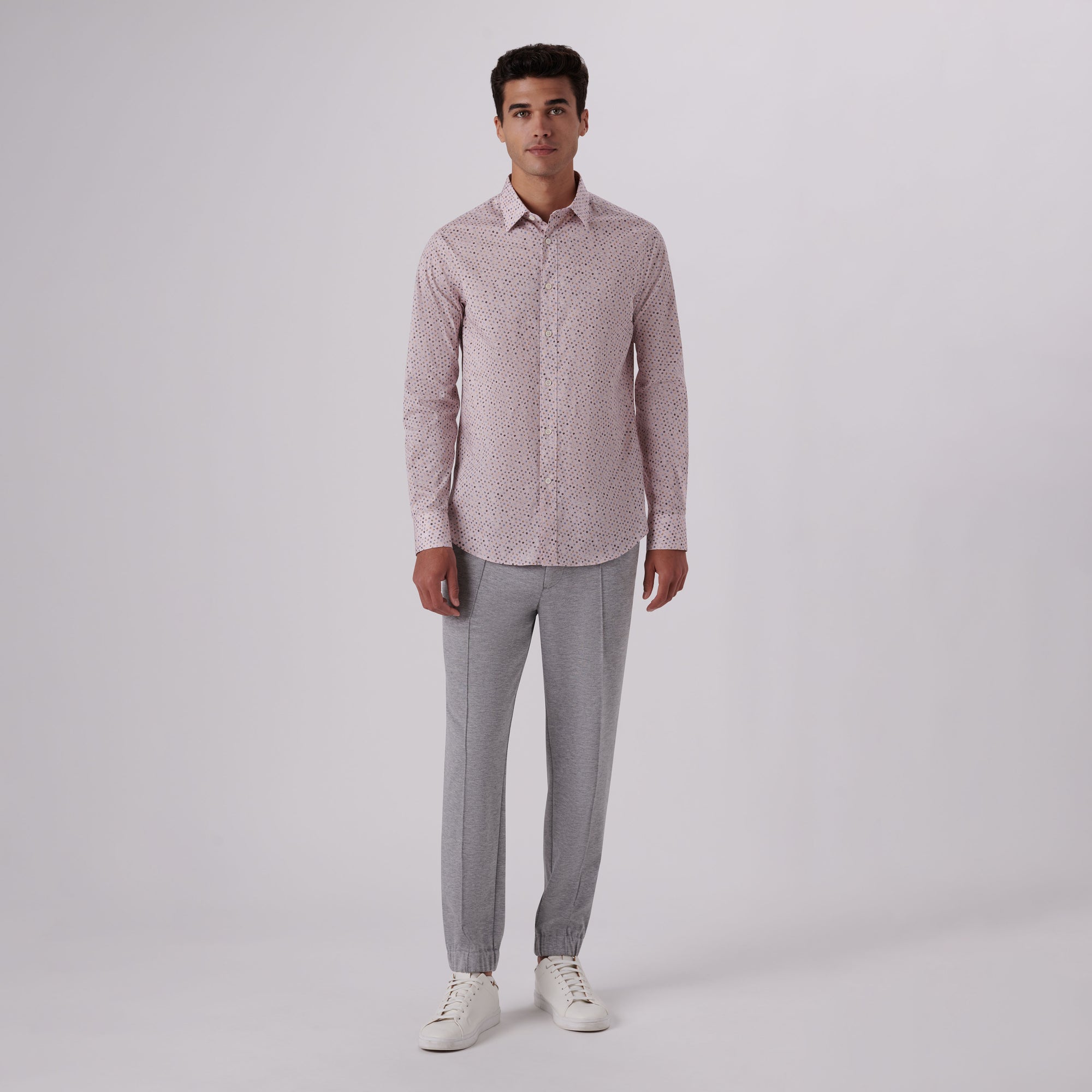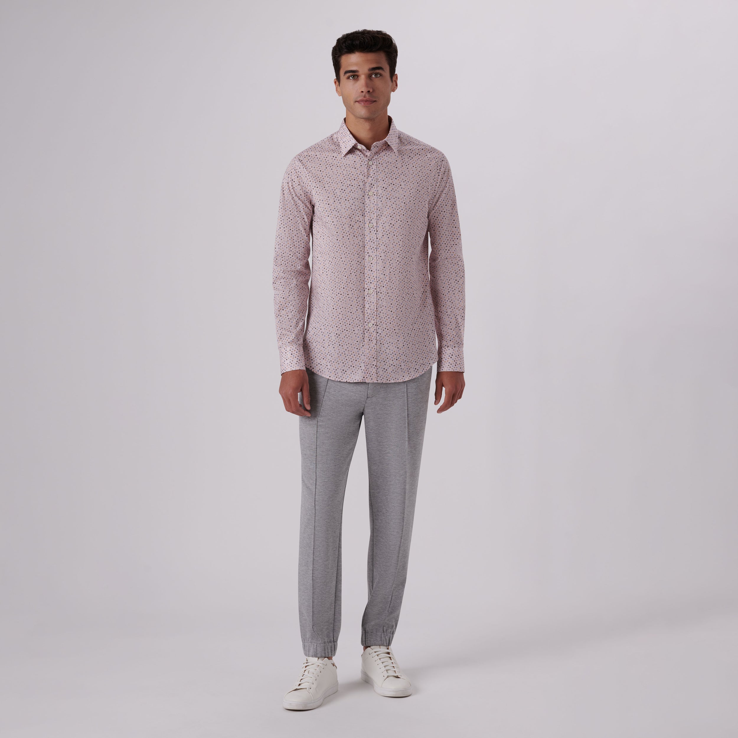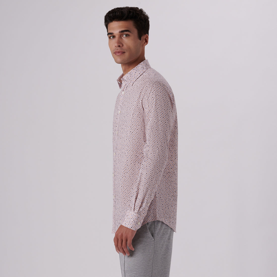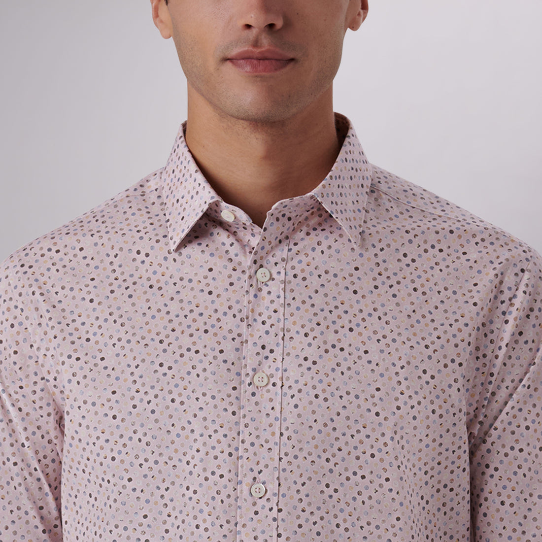 Julian dot print long-sleeved shirt in comfort stretch cotton with point collar, adjustable notched cuffs, genuine shell buttons and a curved hemline.