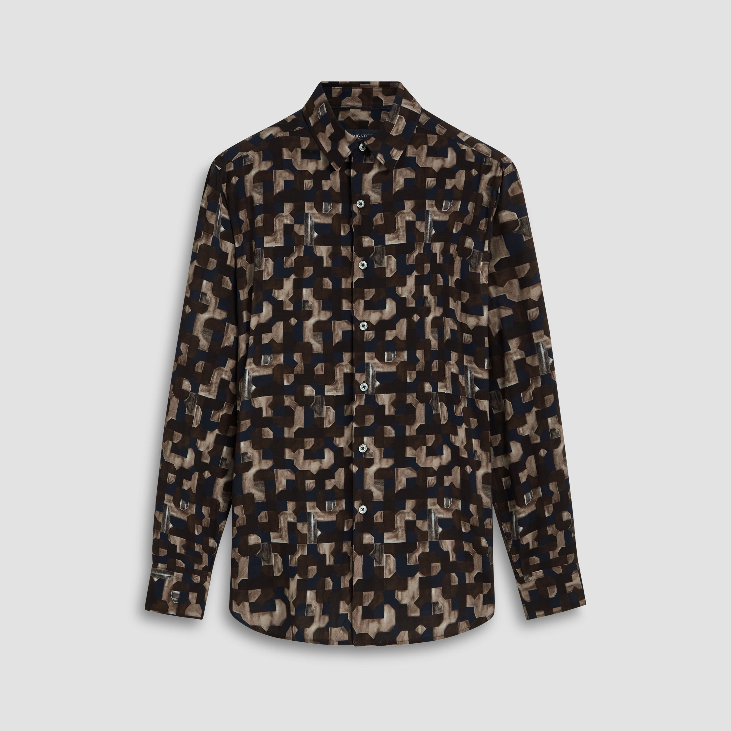 Julian long-sleeved shirt in geometric print EcoVero viscose with point collar, adjustable notched cuffs and curved hem. EcoVero is a more sustainable viscose made with sustainable wood from controlled sources.