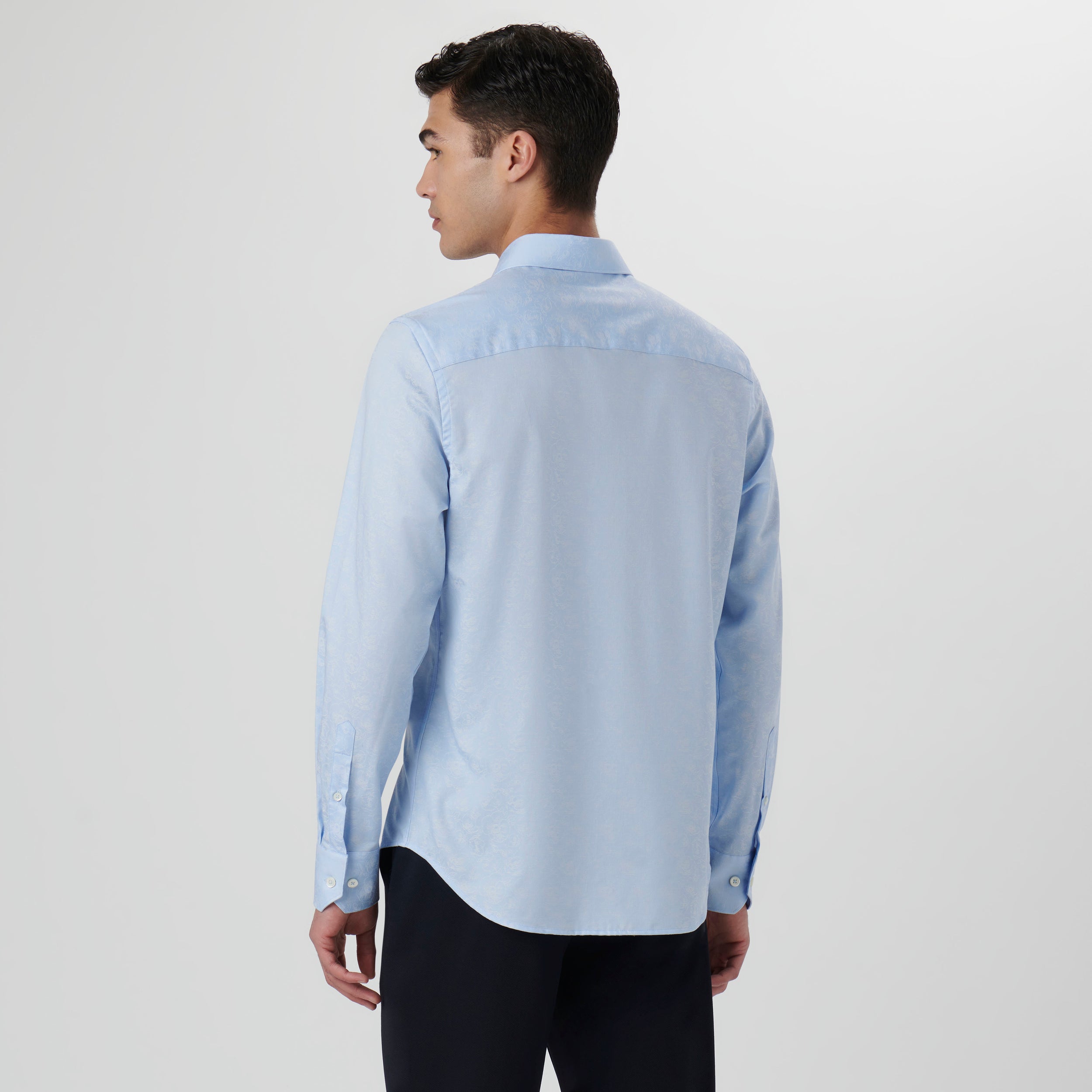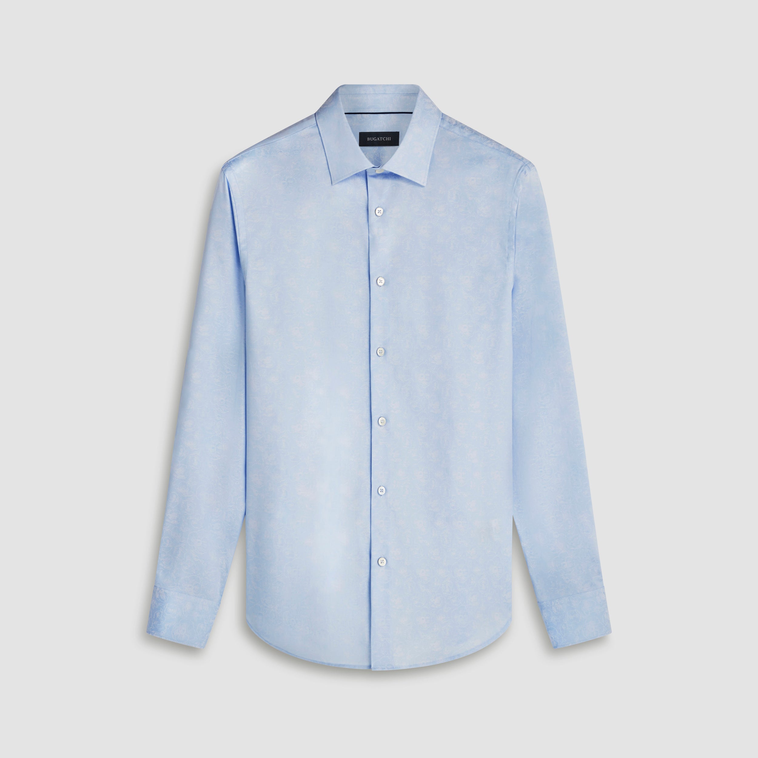 Julian long-sleeved shirt in floral jacquard COMFORT STRETCH cotton with point collar, adjustable notched cuffs and curved hem.