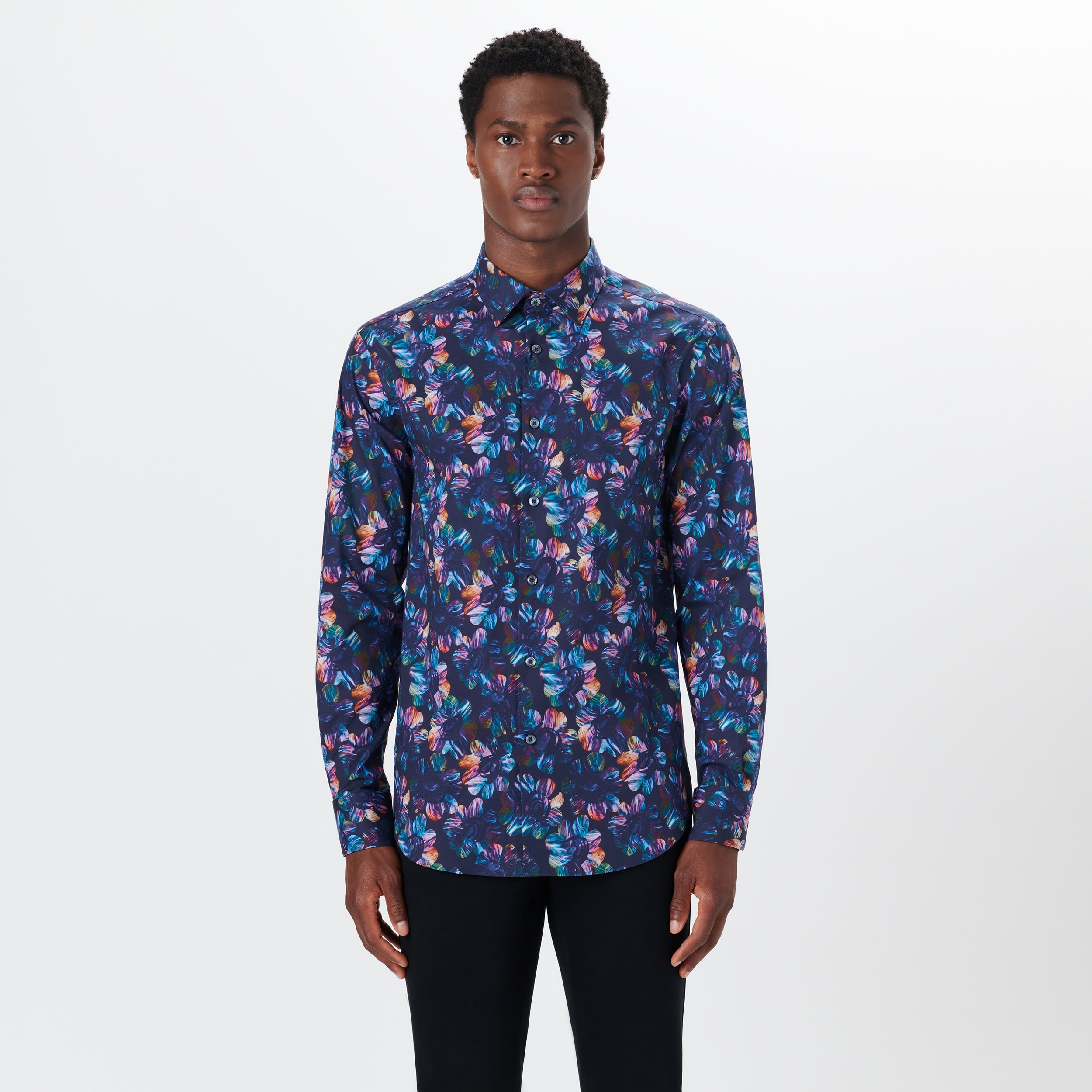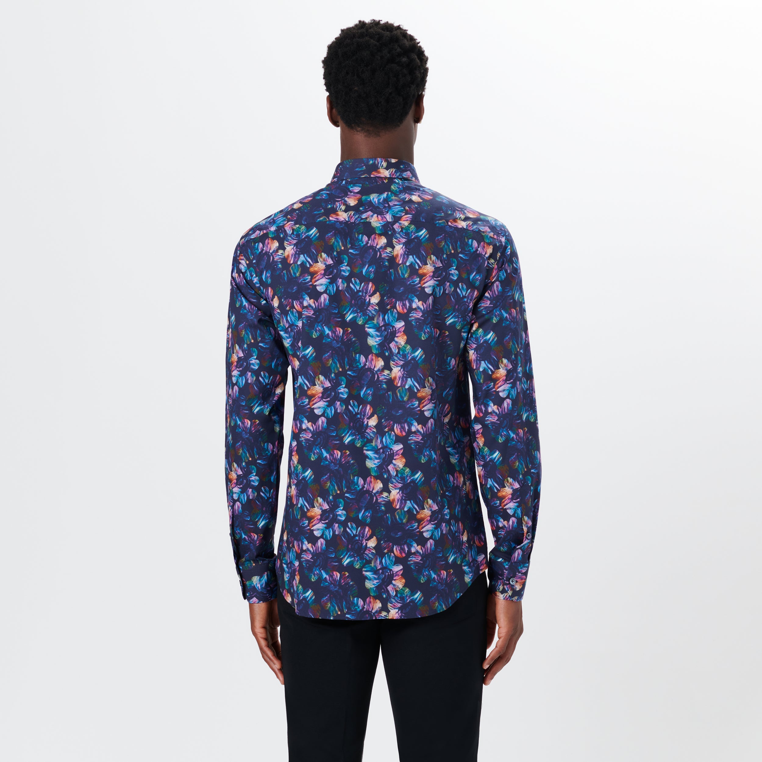 JULIAN long-sleeved shirt in floral print COMFORT STRETCH cotton with point collar, adjustable notched cuffs and curved hem.