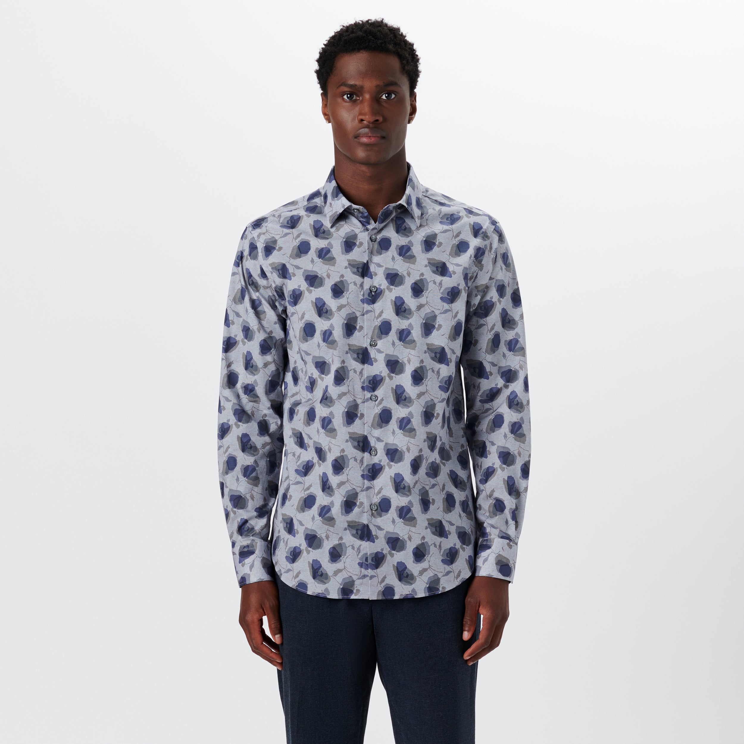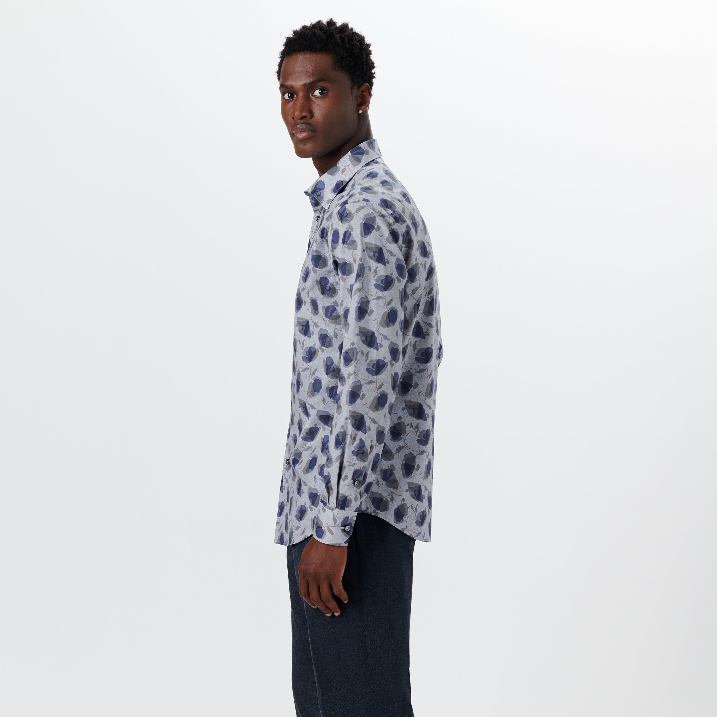 JULIAN long-sleeved shirt in floral print COMFORT STRETCH cotton with point collar, adjustable notched cuffs and curved hem.