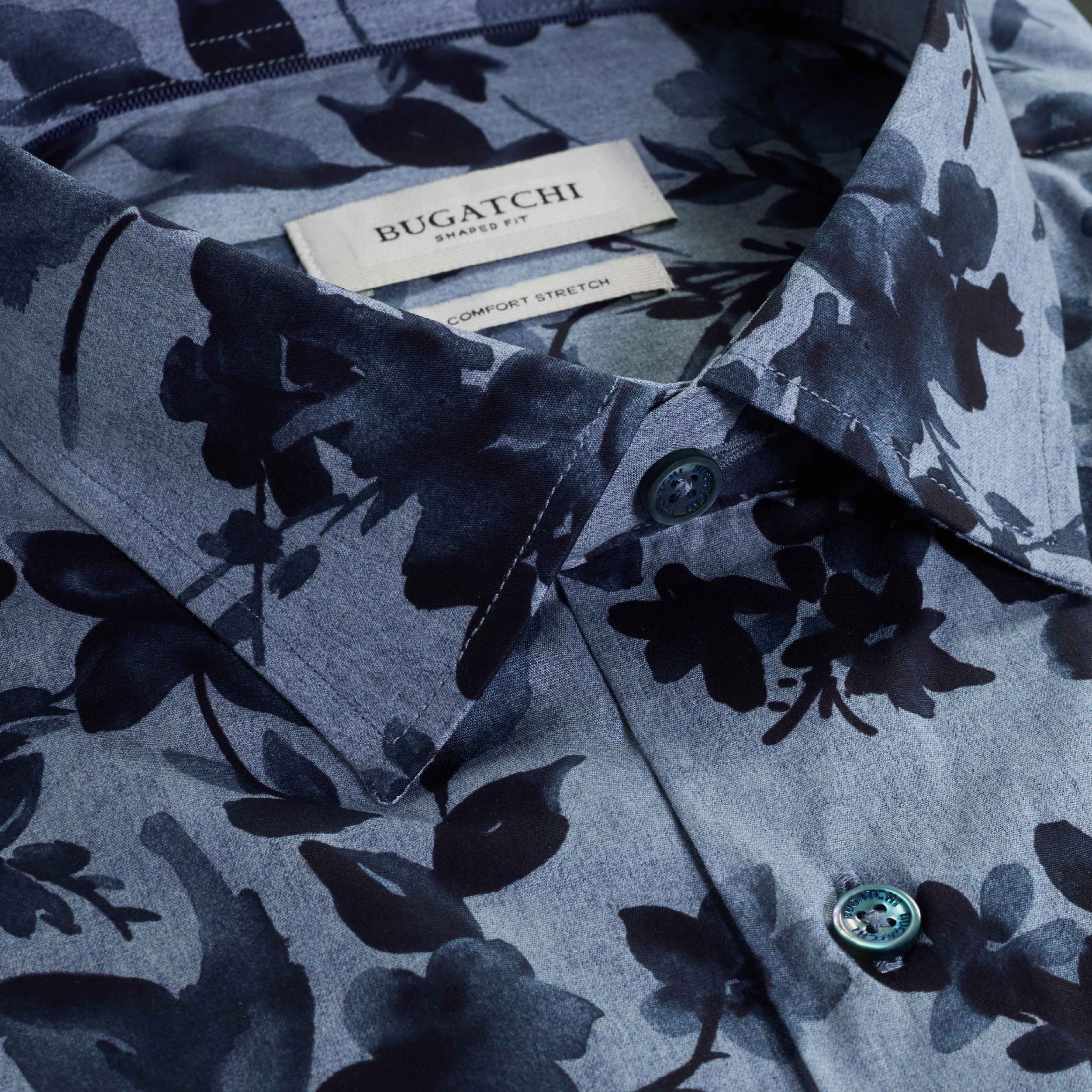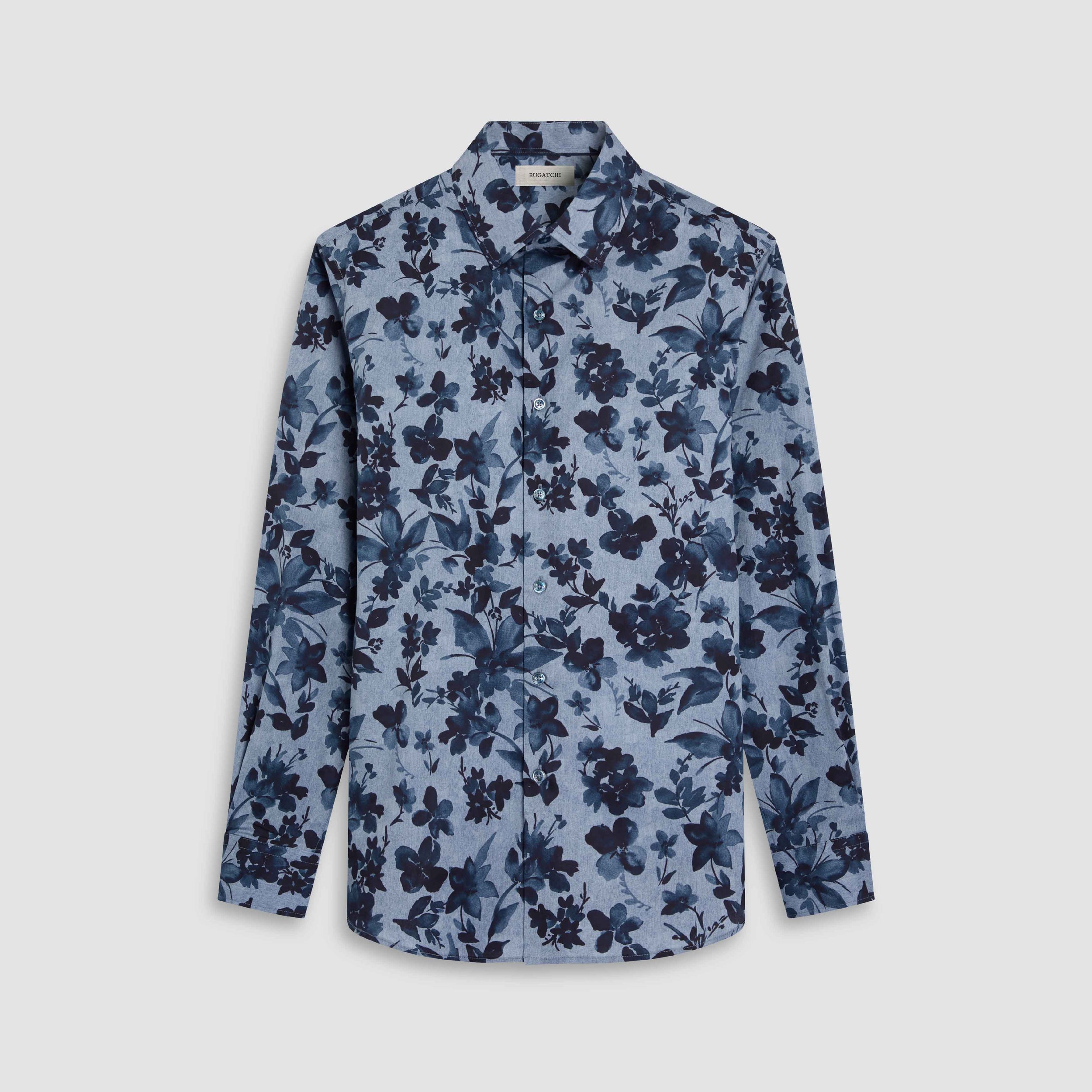 The Julian long-sleeve Comfort Stretch shirt in floral print is crafted from premium Italian cotton with a hint of stretch for all-day comfort. It features a point collar, mother-of-pearl buttons, a curved hem that looks great tucked or untucked, and adjustable notched cuffs that also convert for cufflinks. A refined, all-occasion shirt.