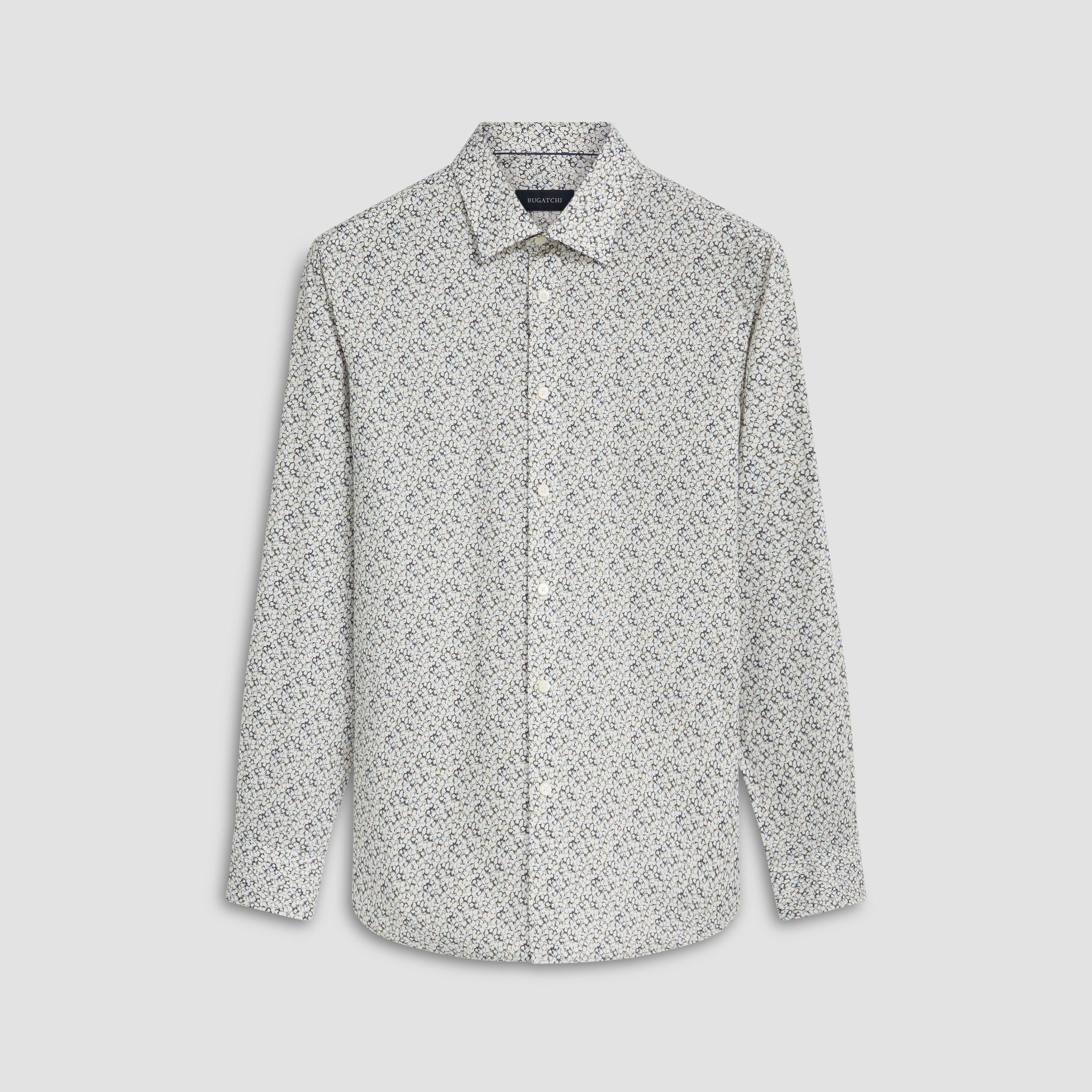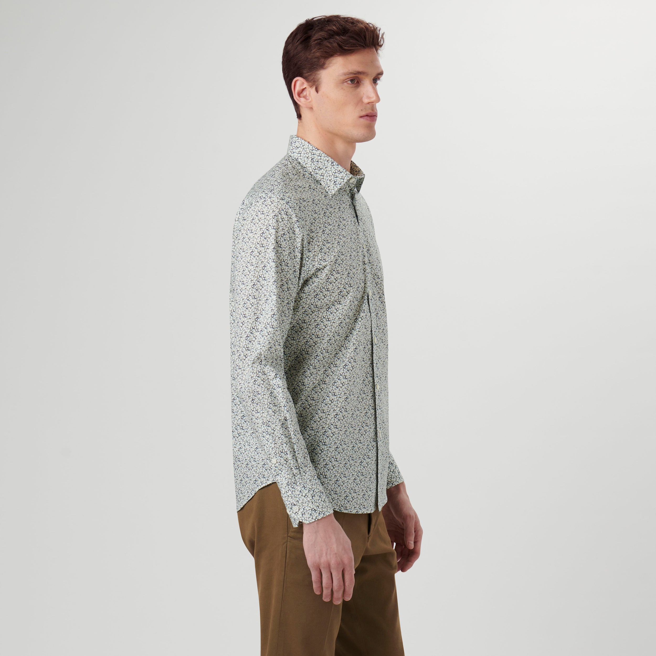 Julian long-sleeved shirt in floral print COMFORT STRETCH cotton with point collar, adjustable notched cuffs and curved hem.