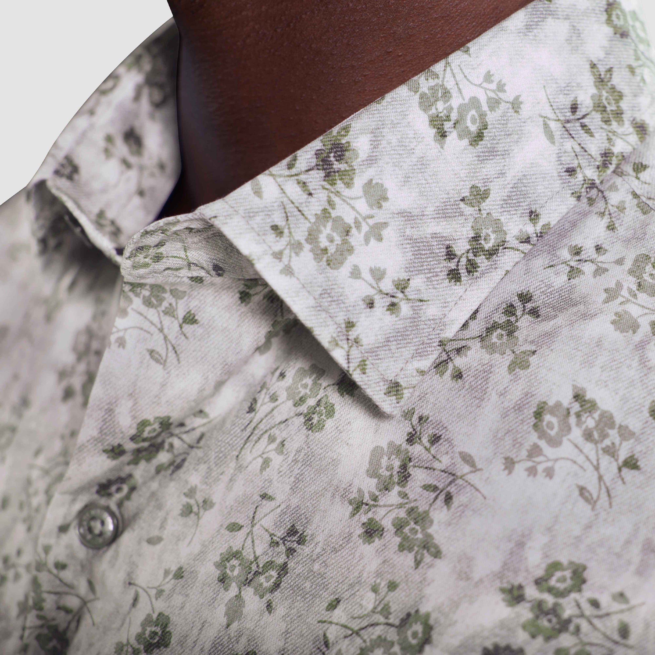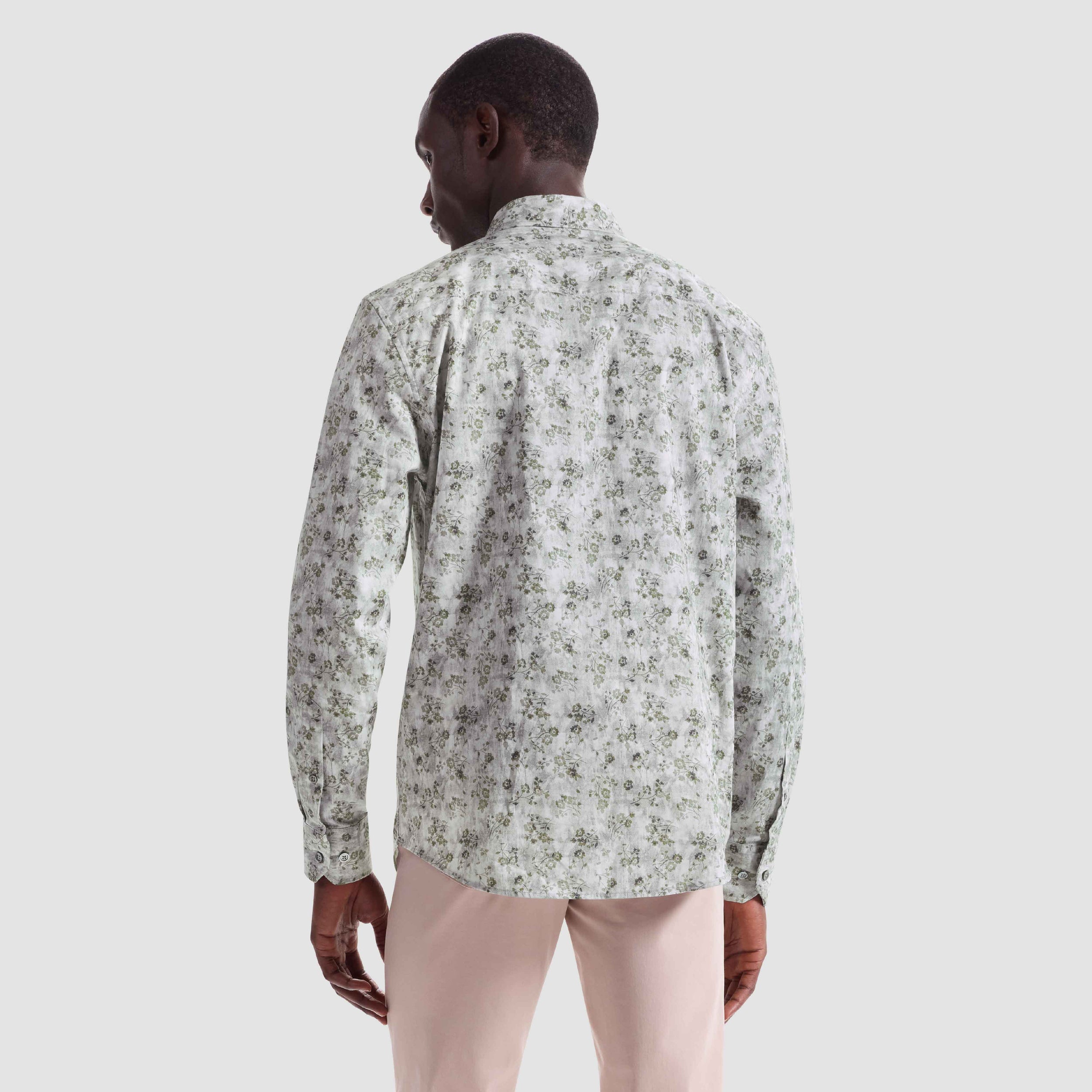 The Julian long-sleeve shirt in floral print is crafted from premium 100% cotton. It features a point collar, mother-of-pearl buttons, a curved hem that looks great tucked or untucked, and adjustable notched cuffs that also convert for cufflinks. A refined, all-occasion shirt.