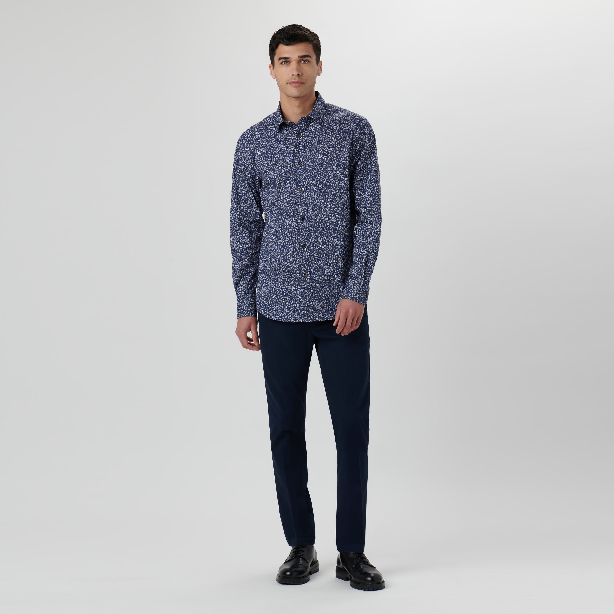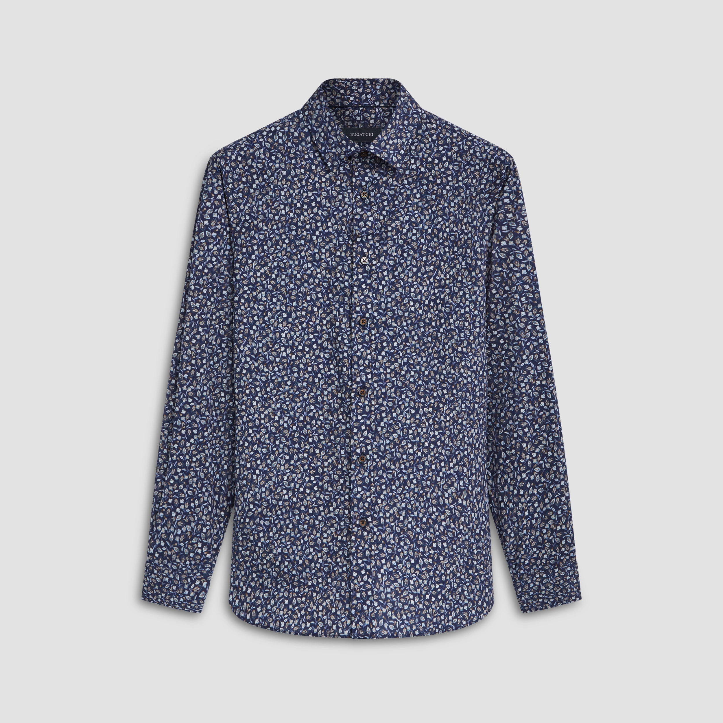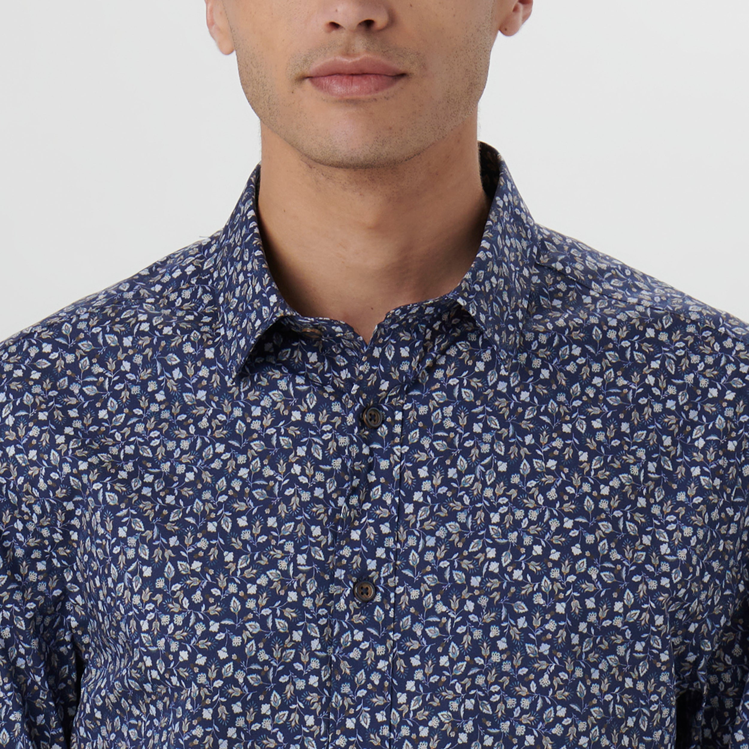 Julian long-sleeved shirt in floral print COMFORT STRETCH cotton with point collar, adjustable notched cuffs and curved hem.