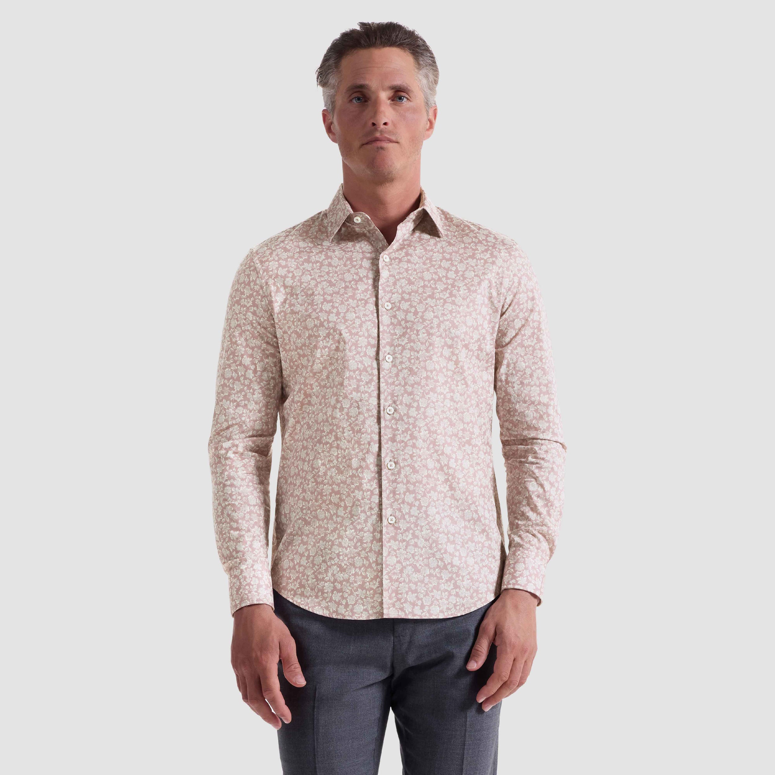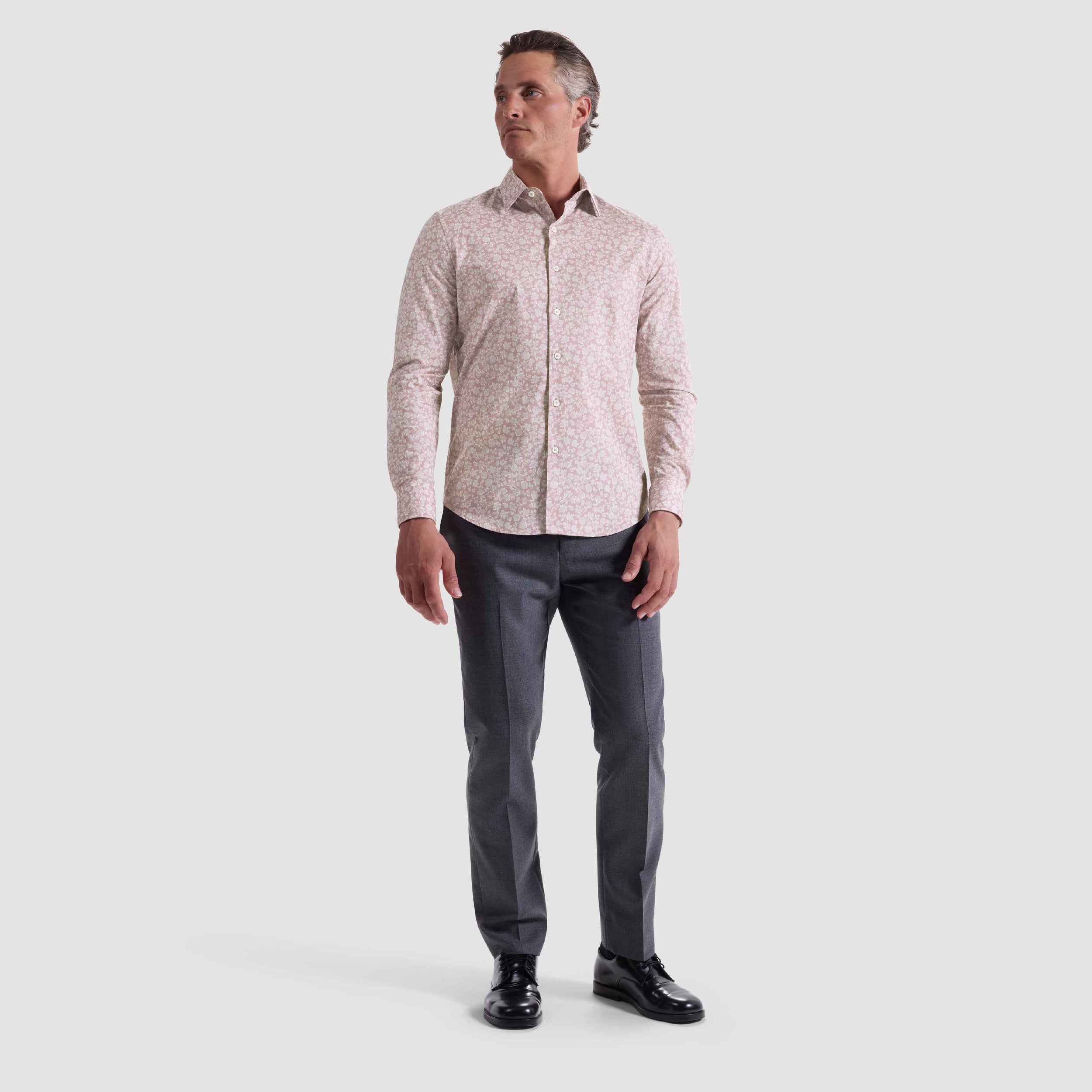 The Julian long-sleeve Comfort Stretch shirt in floral print is crafted from premium Italian cotton with a hint of stretch for all-day comfort. It features a point collar, mother-of-pearl buttons, a curved hem that looks great tucked or untucked, and adjustable notched cuffs that also convert for cufflinks. A refined, all-occasion shirt.