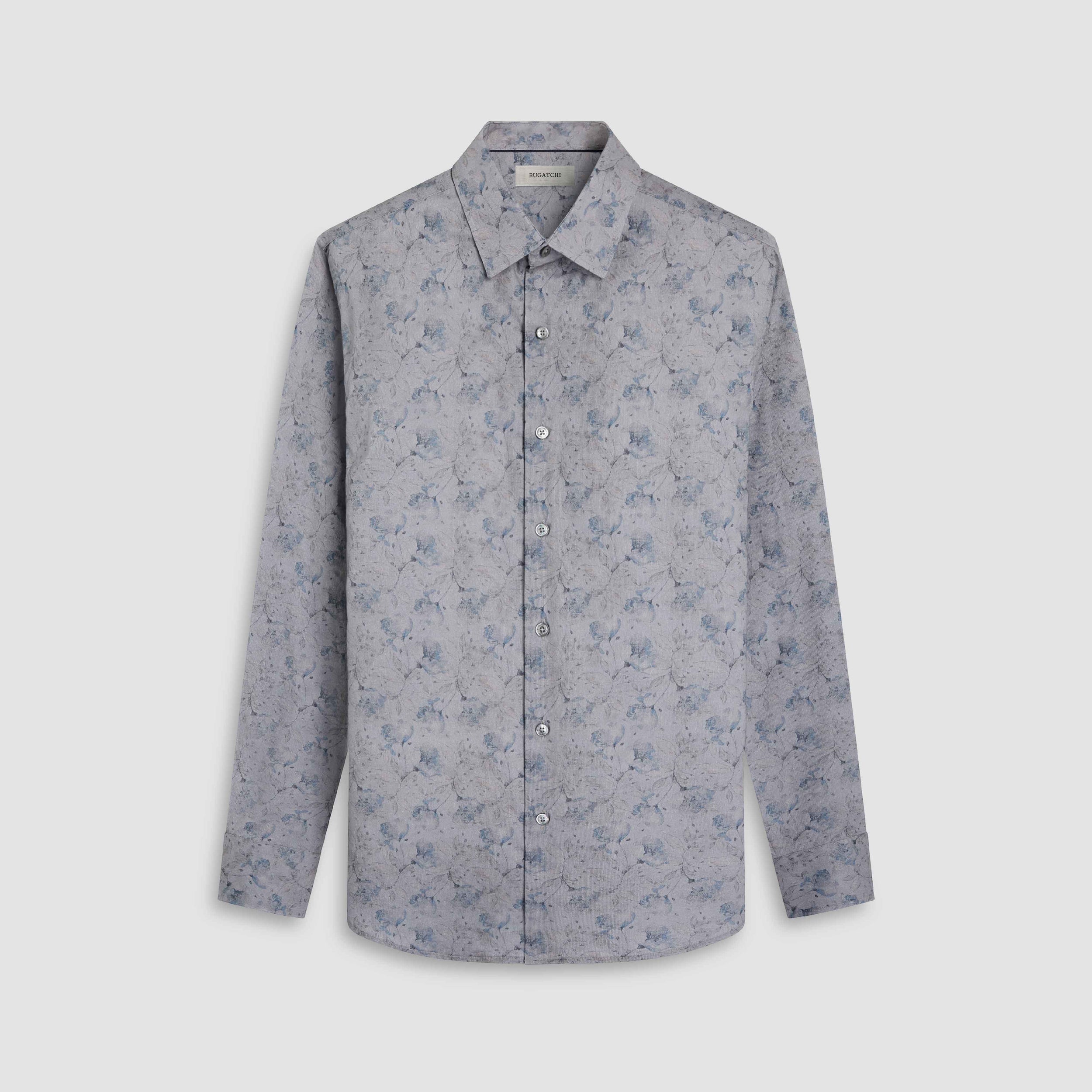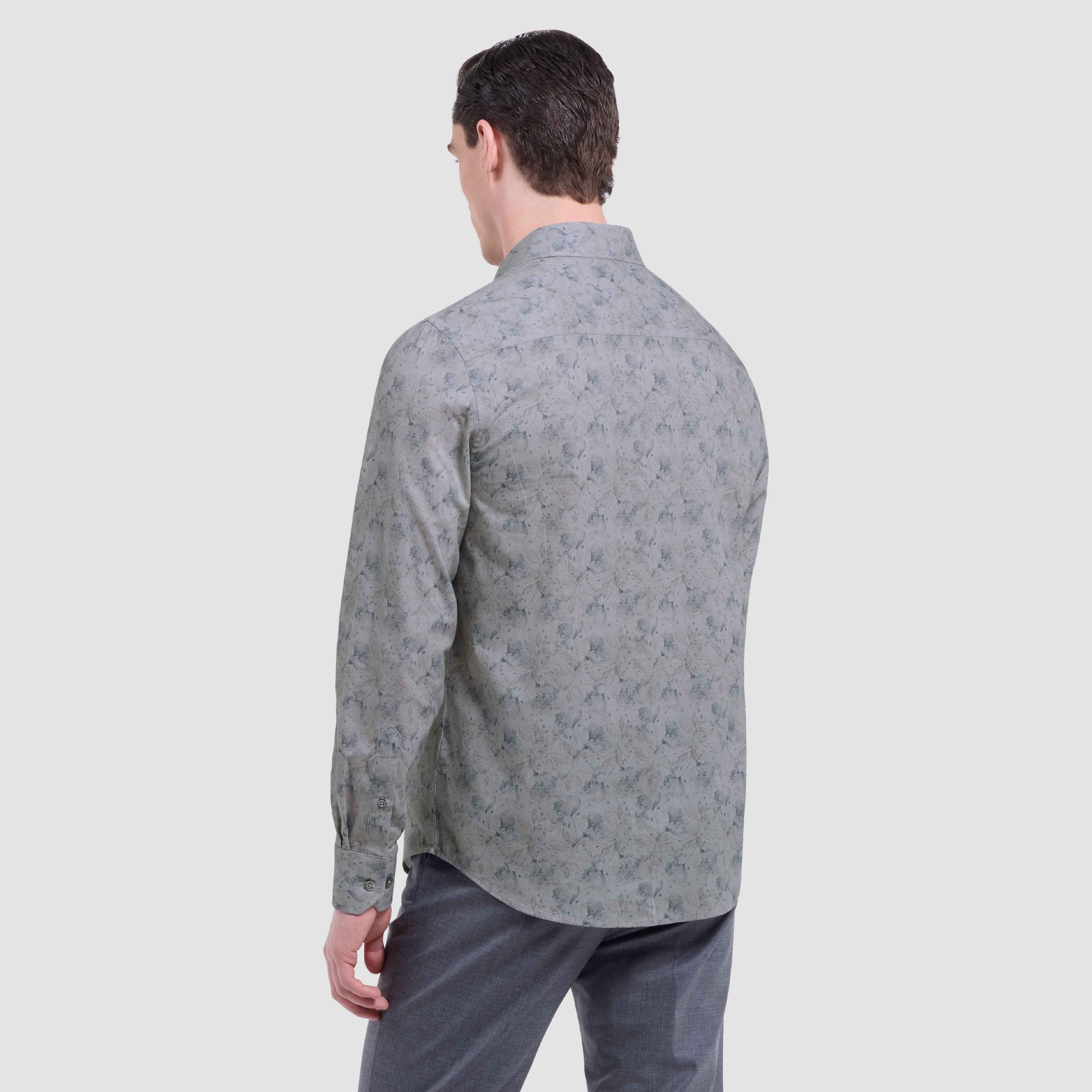 The Julian long-sleeve shirt in floral pinwale corduroy is crafted from premium 100% cotton. It features a point collar, mother-of-pearl buttons, a curved hem that looks great tucked or untucked, and adjustable notched cuffs that also convert for cufflinks. A refined, all-occasion shirt.