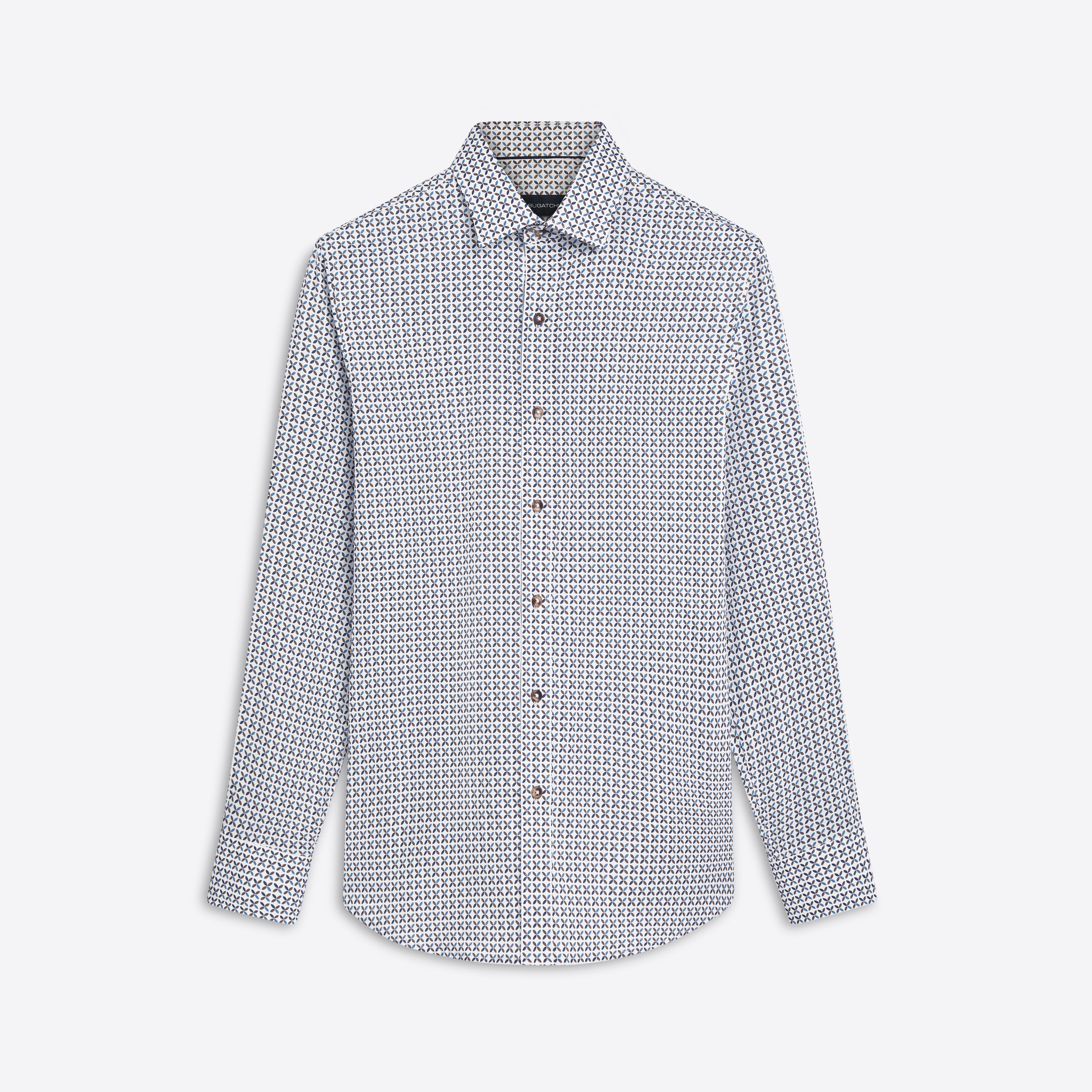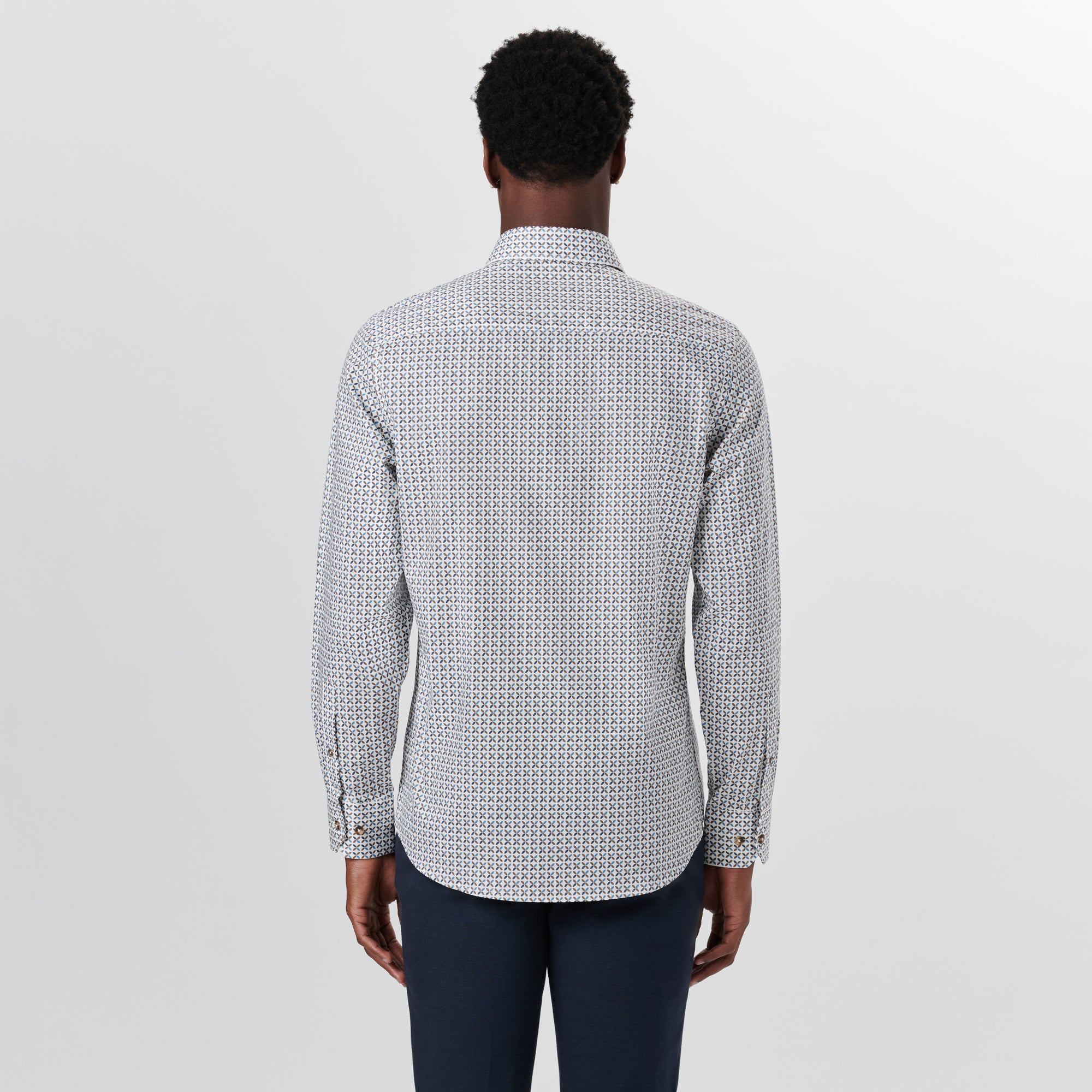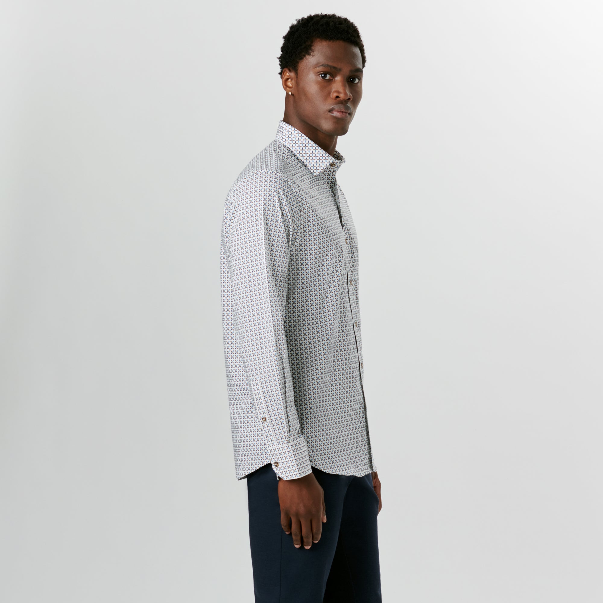 JULIAN long-sleeved shirt in geometric print COMFORT STRETCH cotton with point collar, adjustable notched cuffs and curved hem.