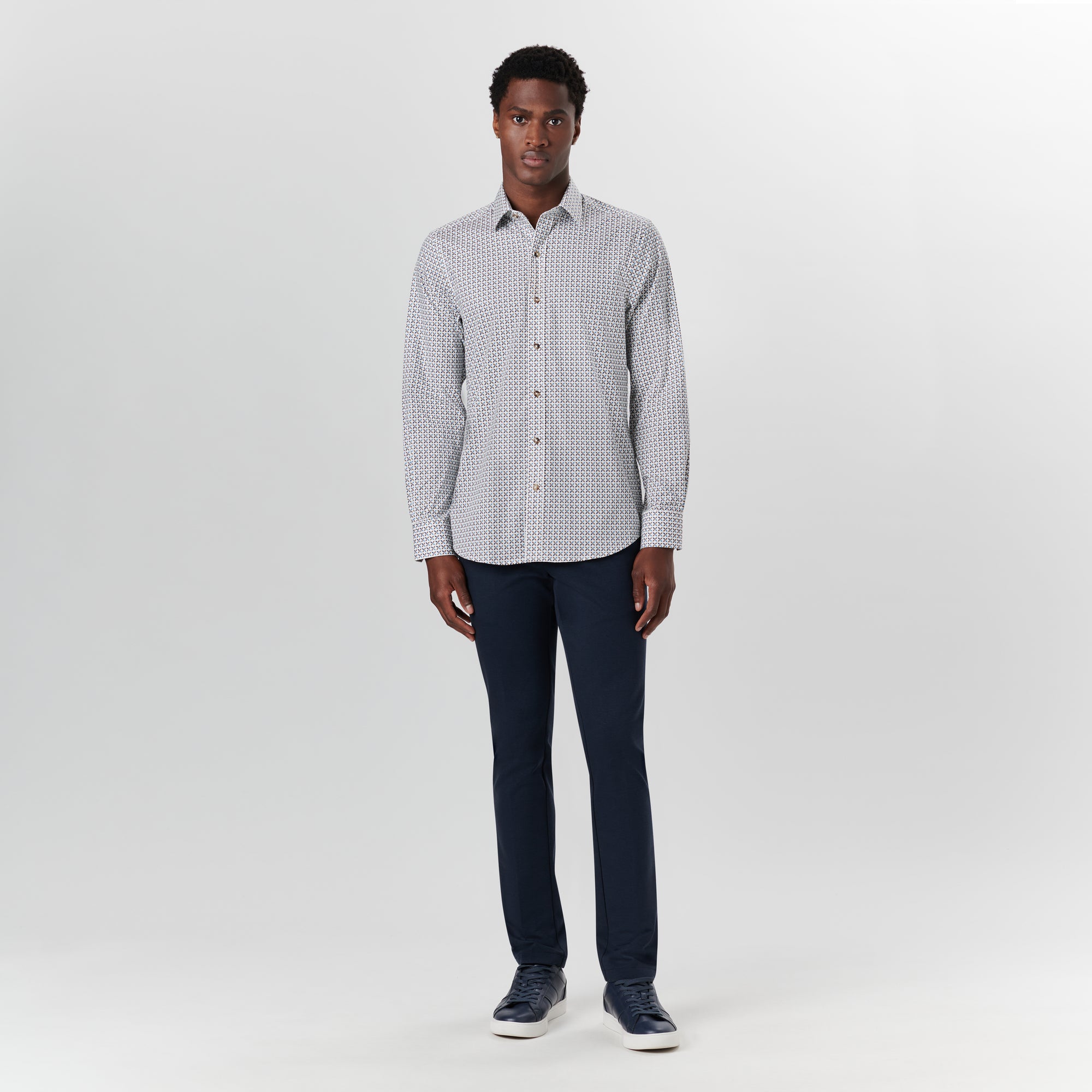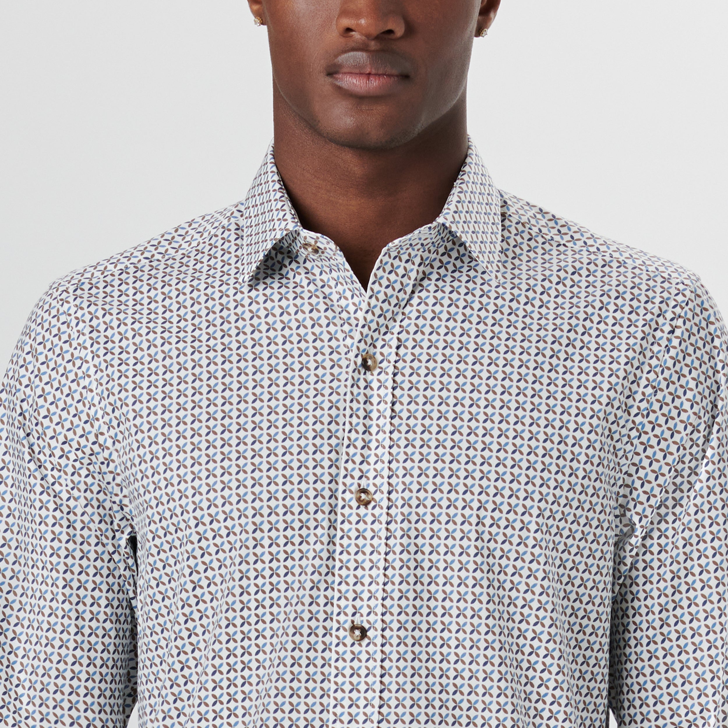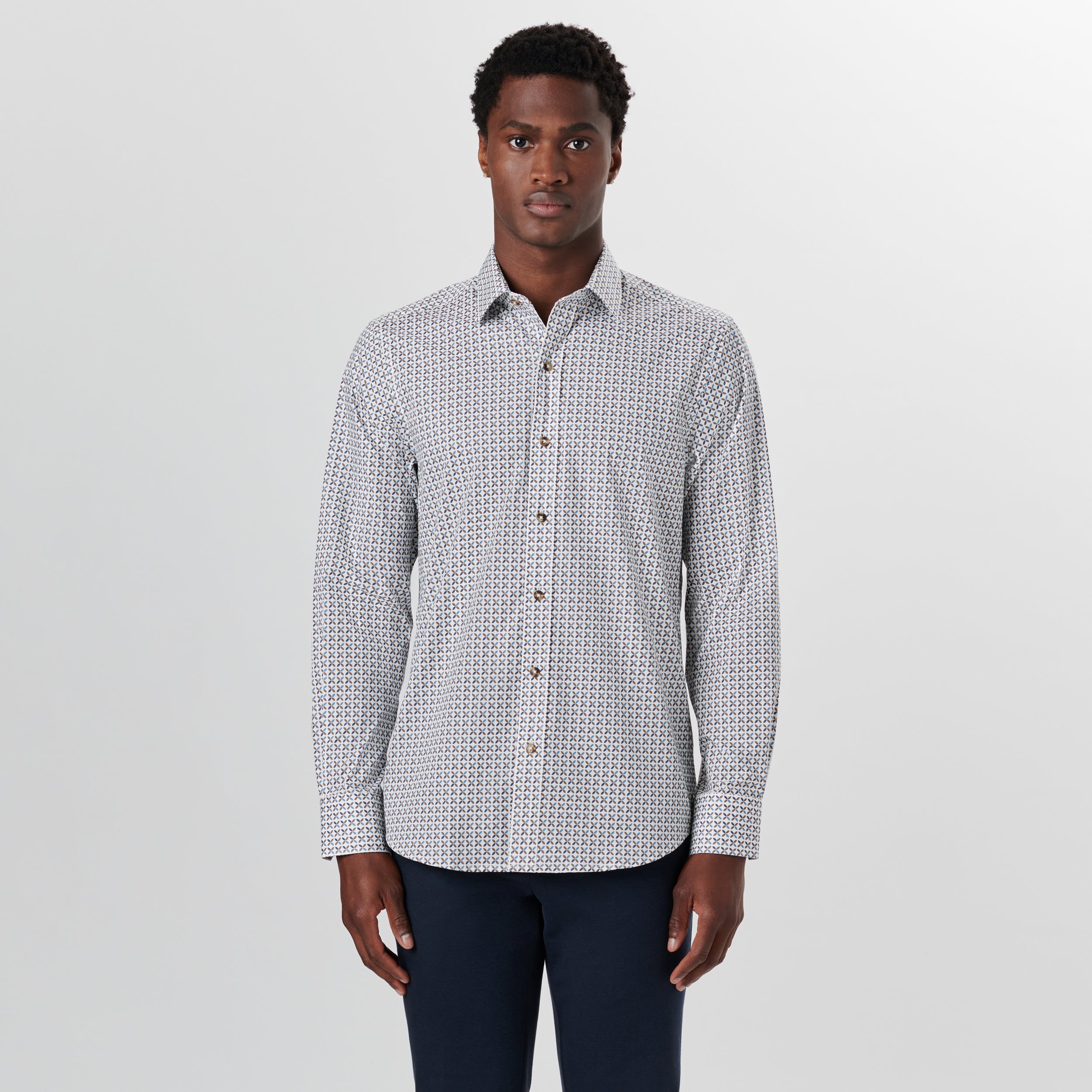 JULIAN long-sleeved shirt in geometric print COMFORT STRETCH cotton with point collar, adjustable notched cuffs and curved hem.