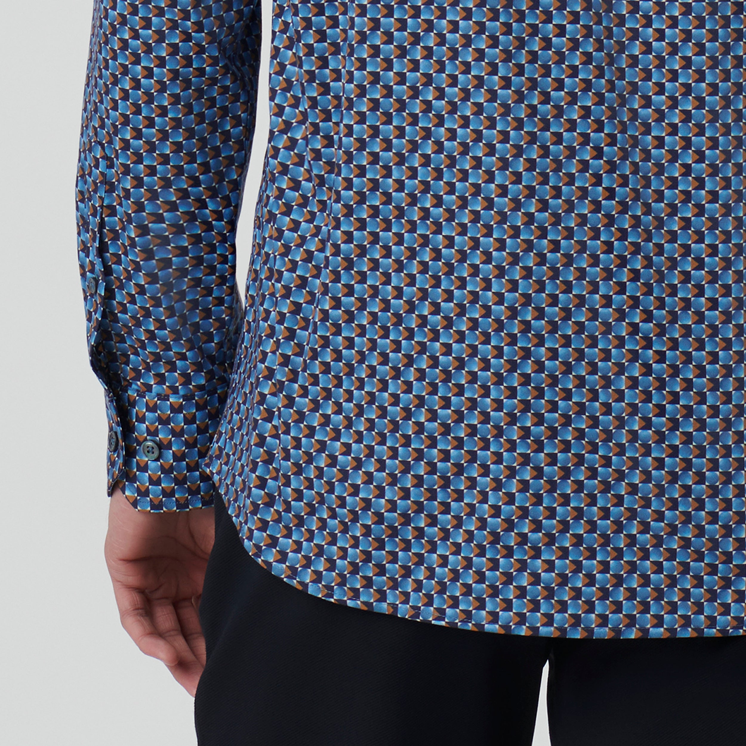 Julian long-sleeved shirt in geometric print COMFORT STRETCH cotton with point collar, adjustable notched cuffs and curved hem.