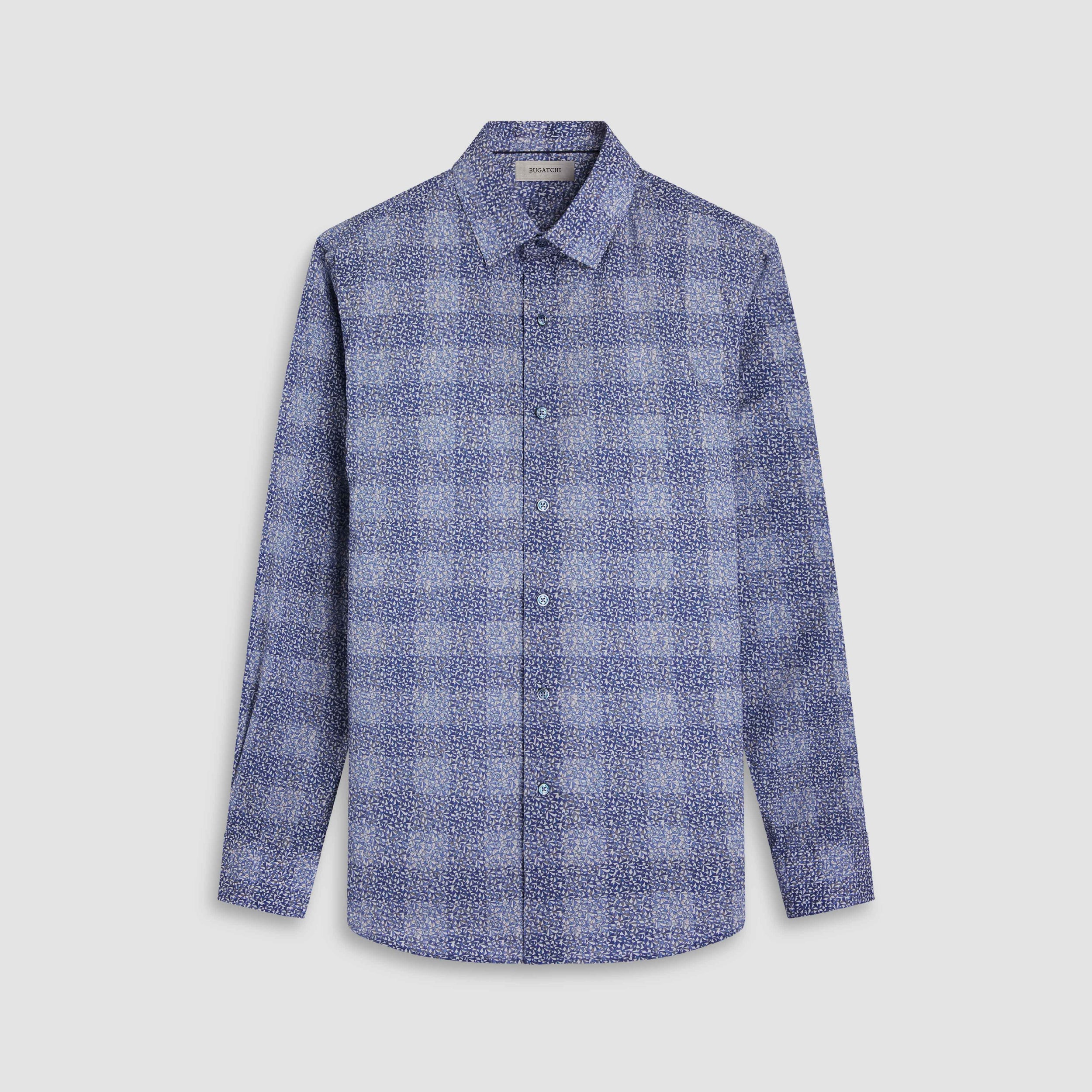 The Julian long-sleeve Comfort Stretch shirt in geometric print is crafted from premium Italian cotton with a hint of stretch for all-day comfort. It features a point collar, mother-of-pearl buttons, a curved hem that looks great tucked or untucked, and adjustable notched cuffs that also convert for cufflinks. A refined, all-occasion shirt.