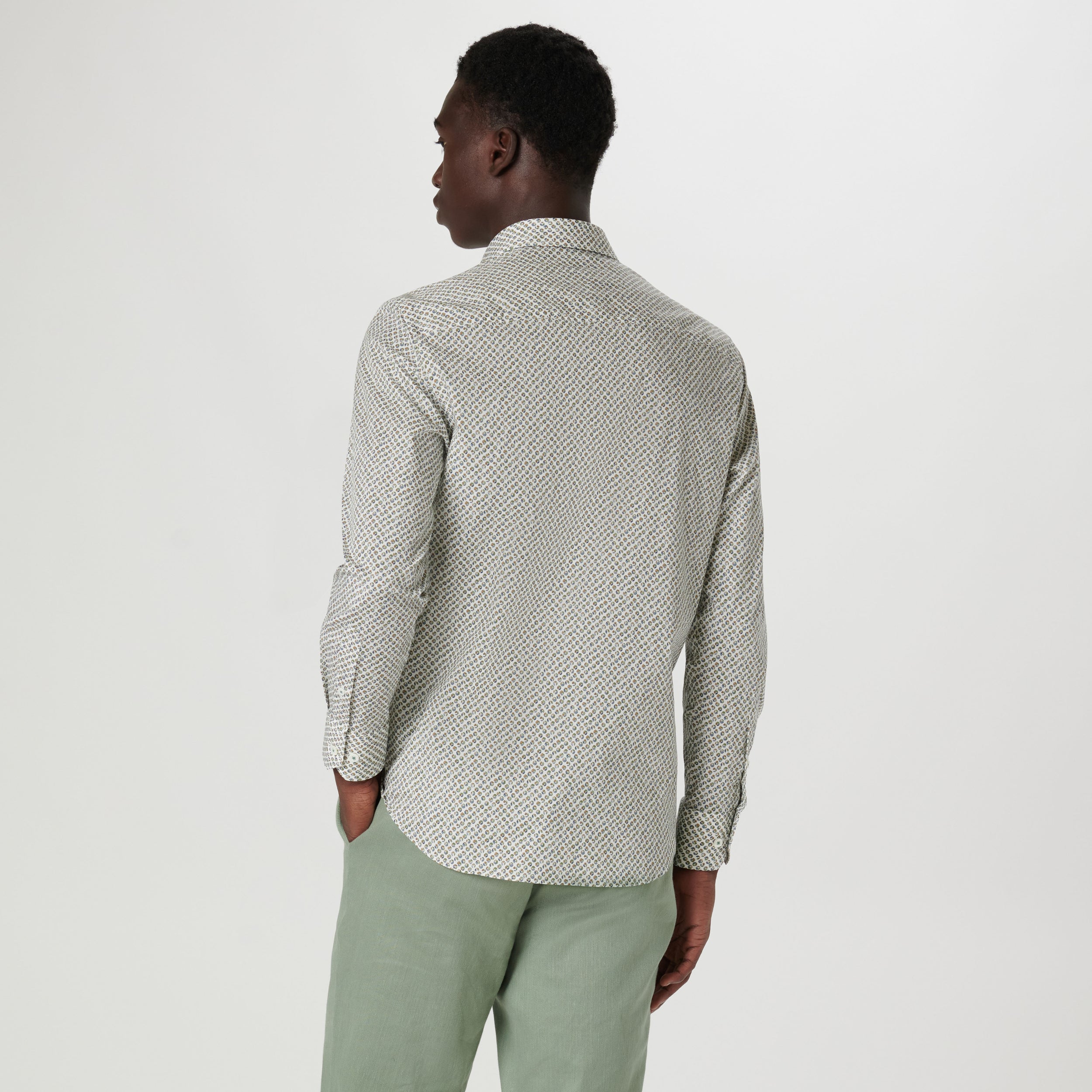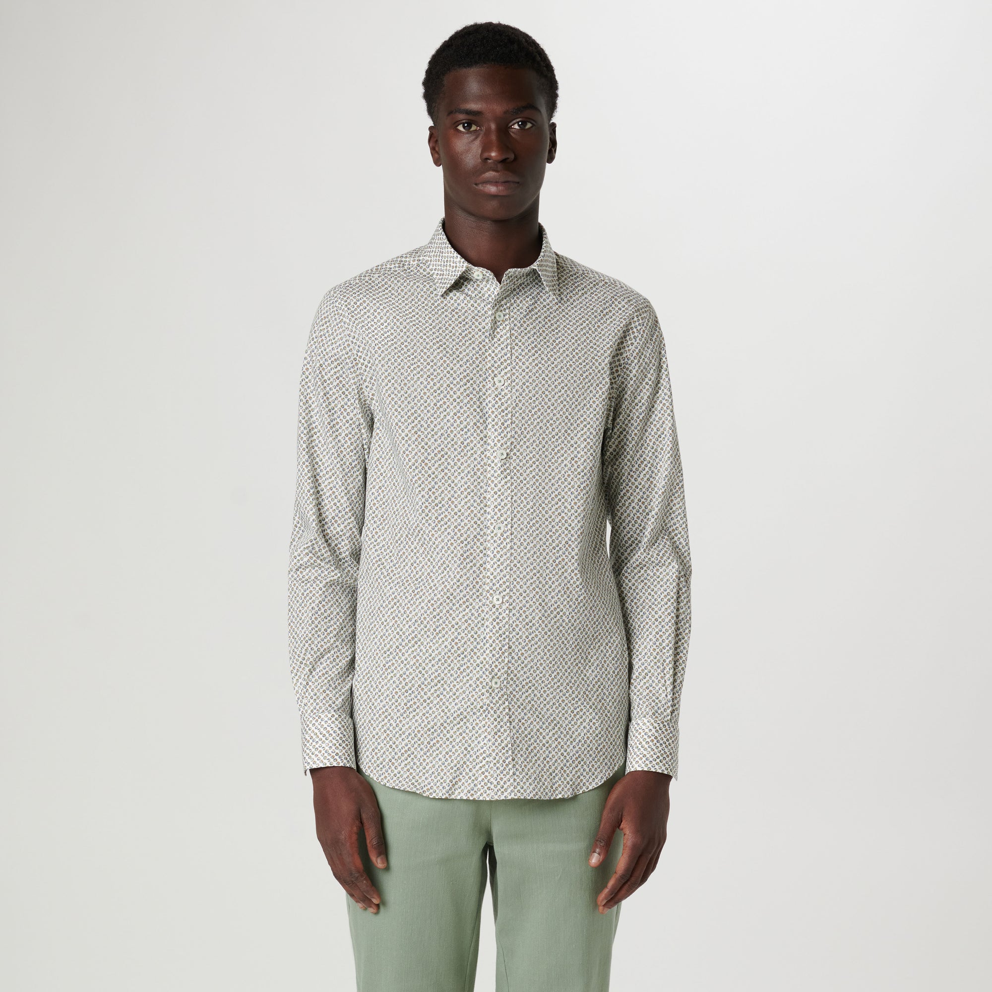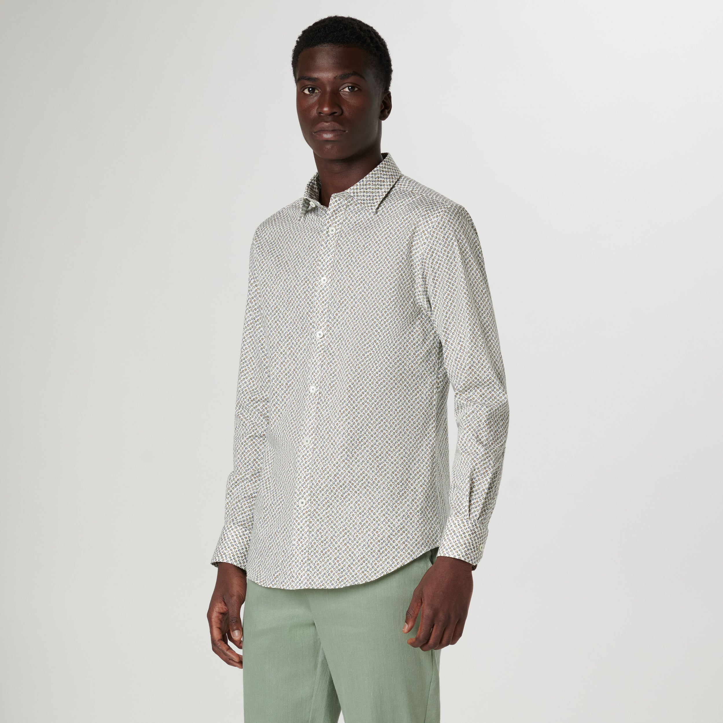 The Julian long-sleeved shirt is crafted from Comfort Stretch cotton and features a geometric print, a point collar, adjustable notched cuffs, and a curved hem.
