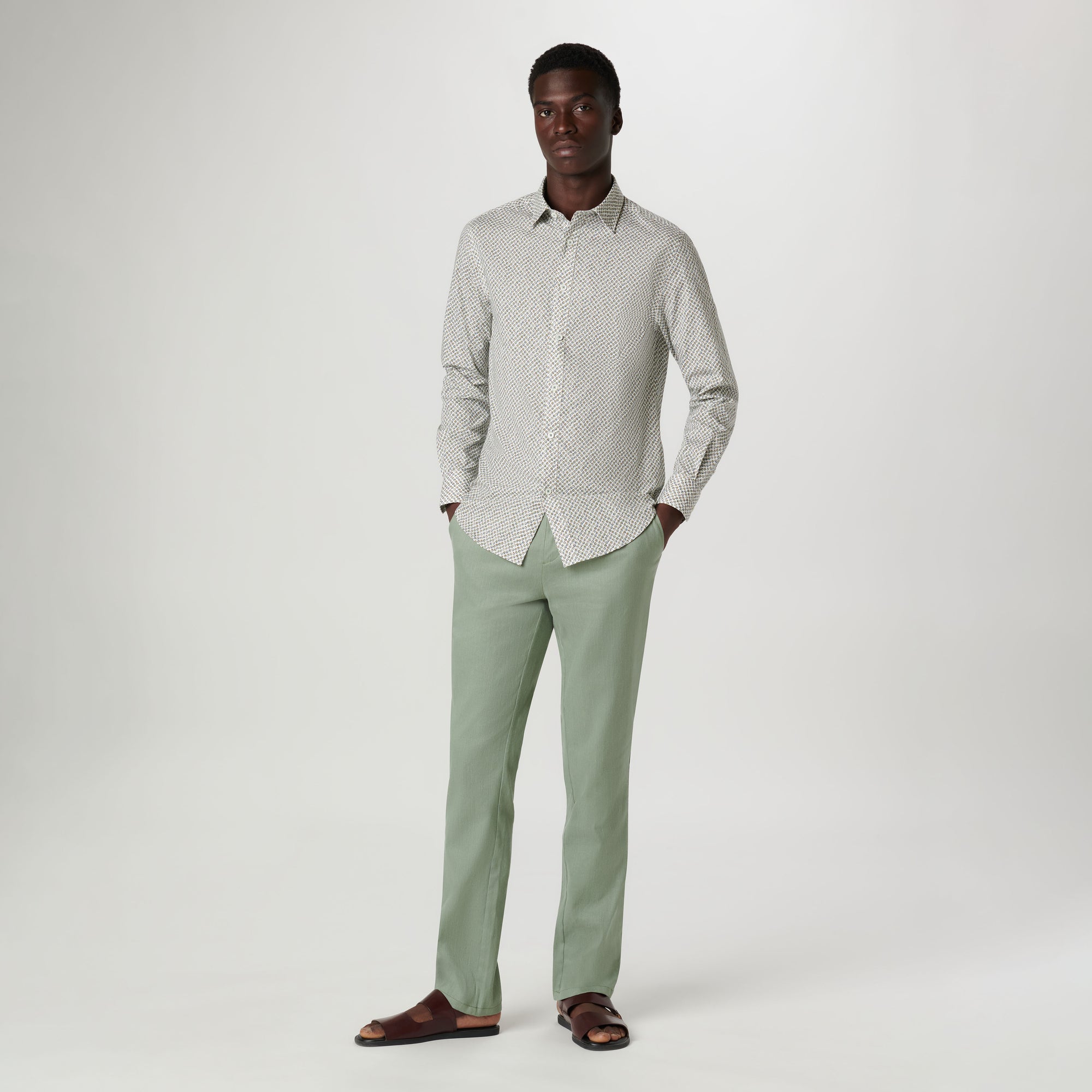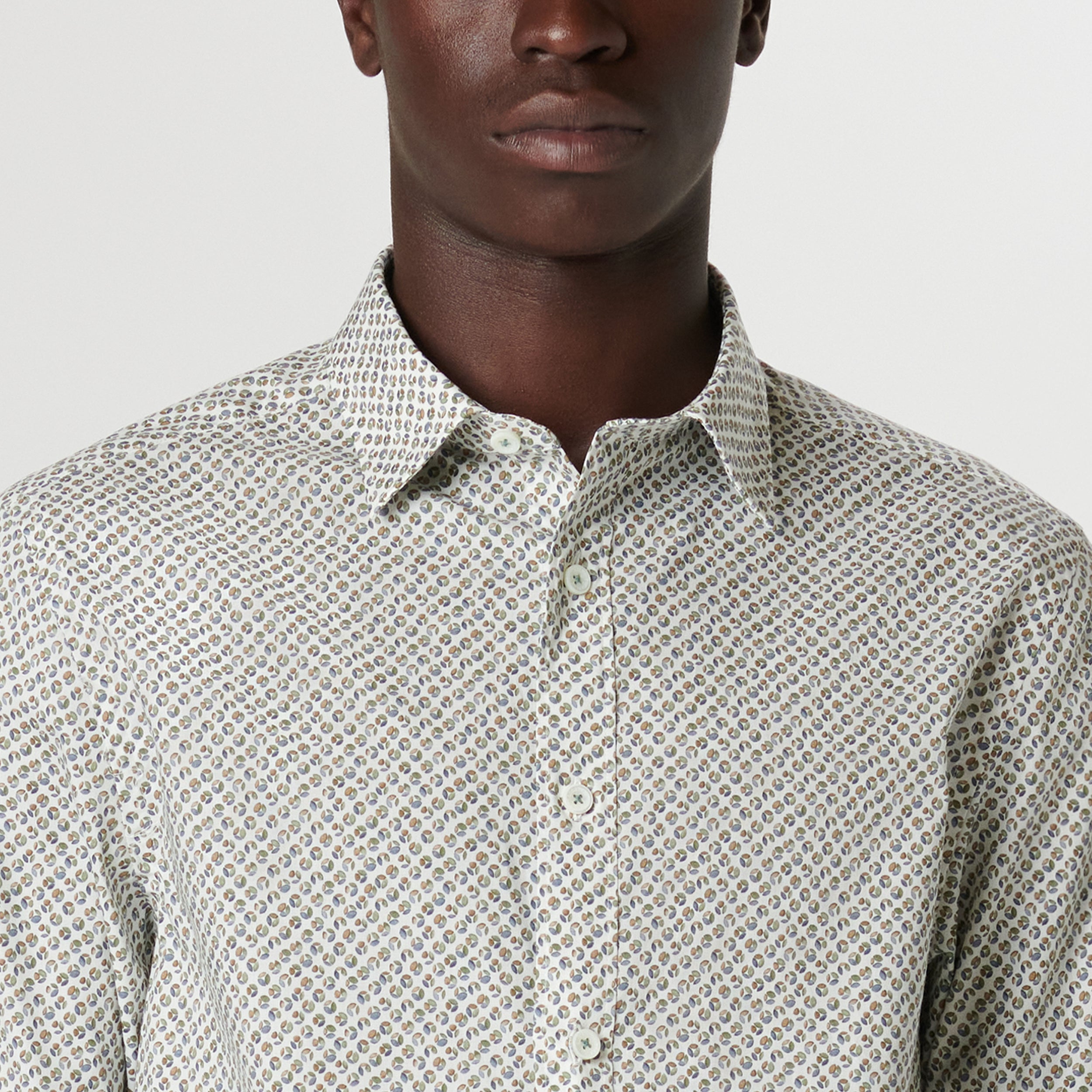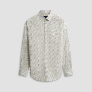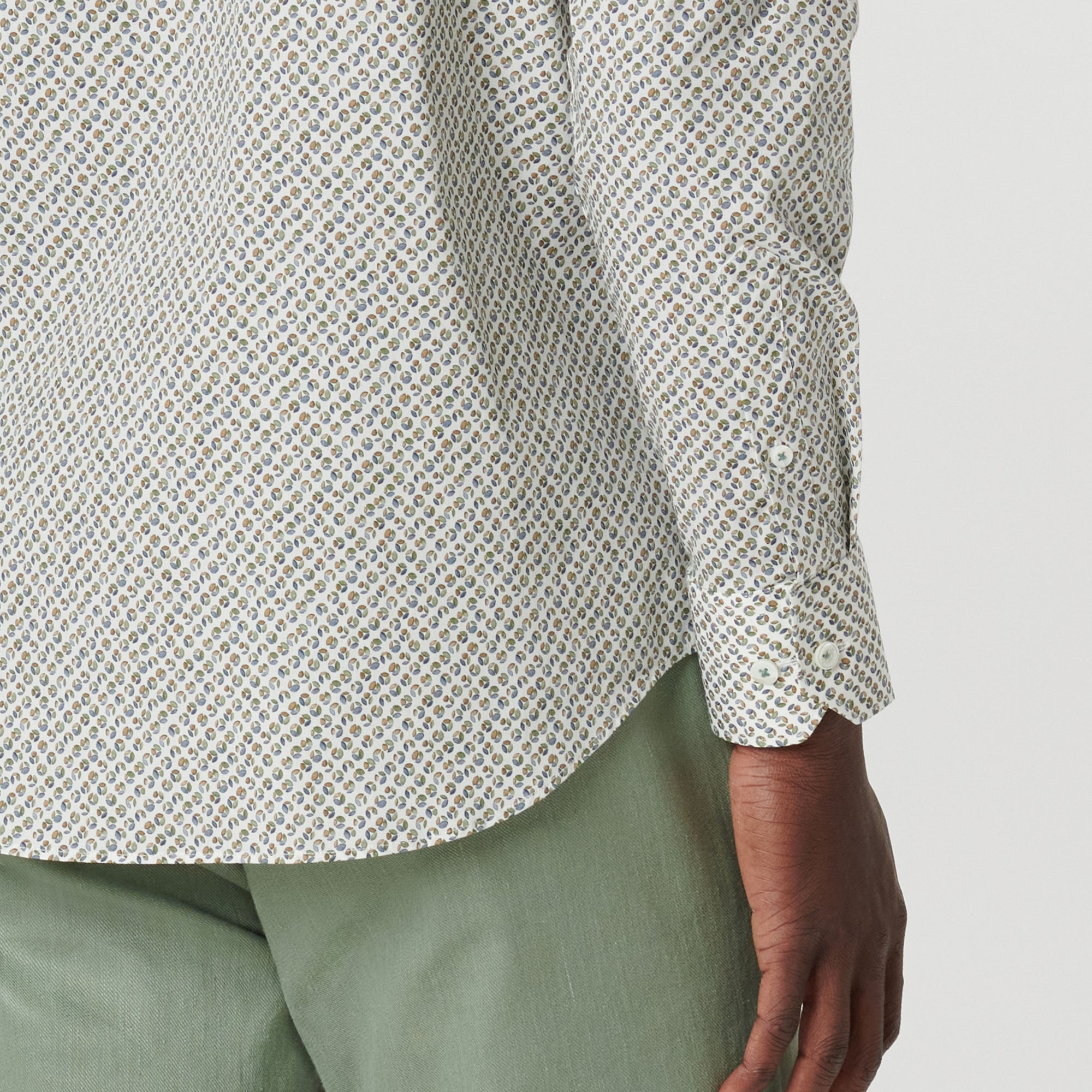 The Julian long-sleeved shirt is crafted from Comfort Stretch cotton and features a geometric print, a point collar, adjustable notched cuffs, and a curved hem.
