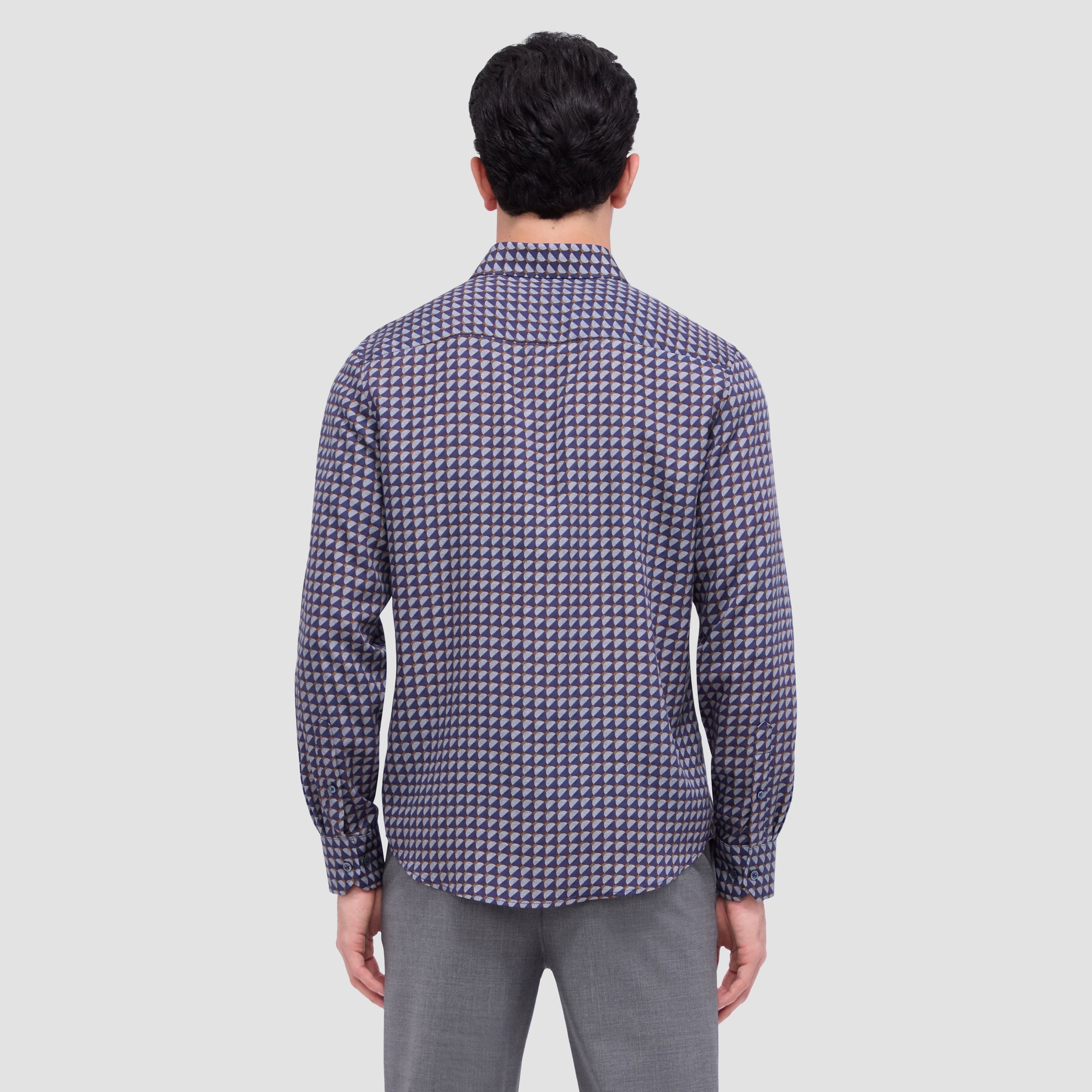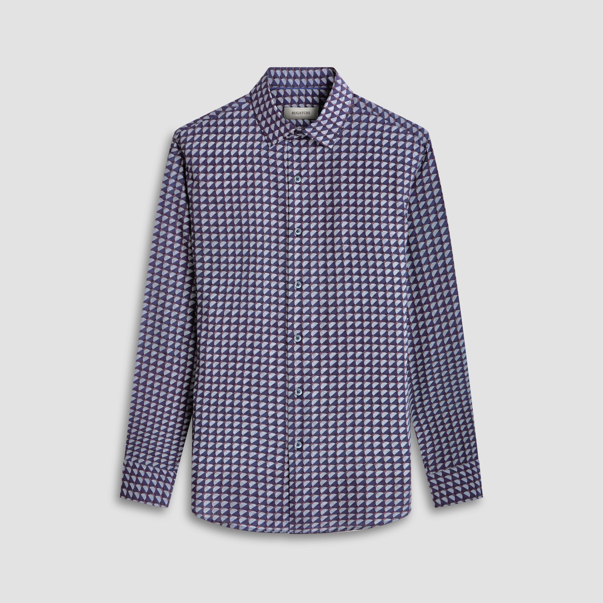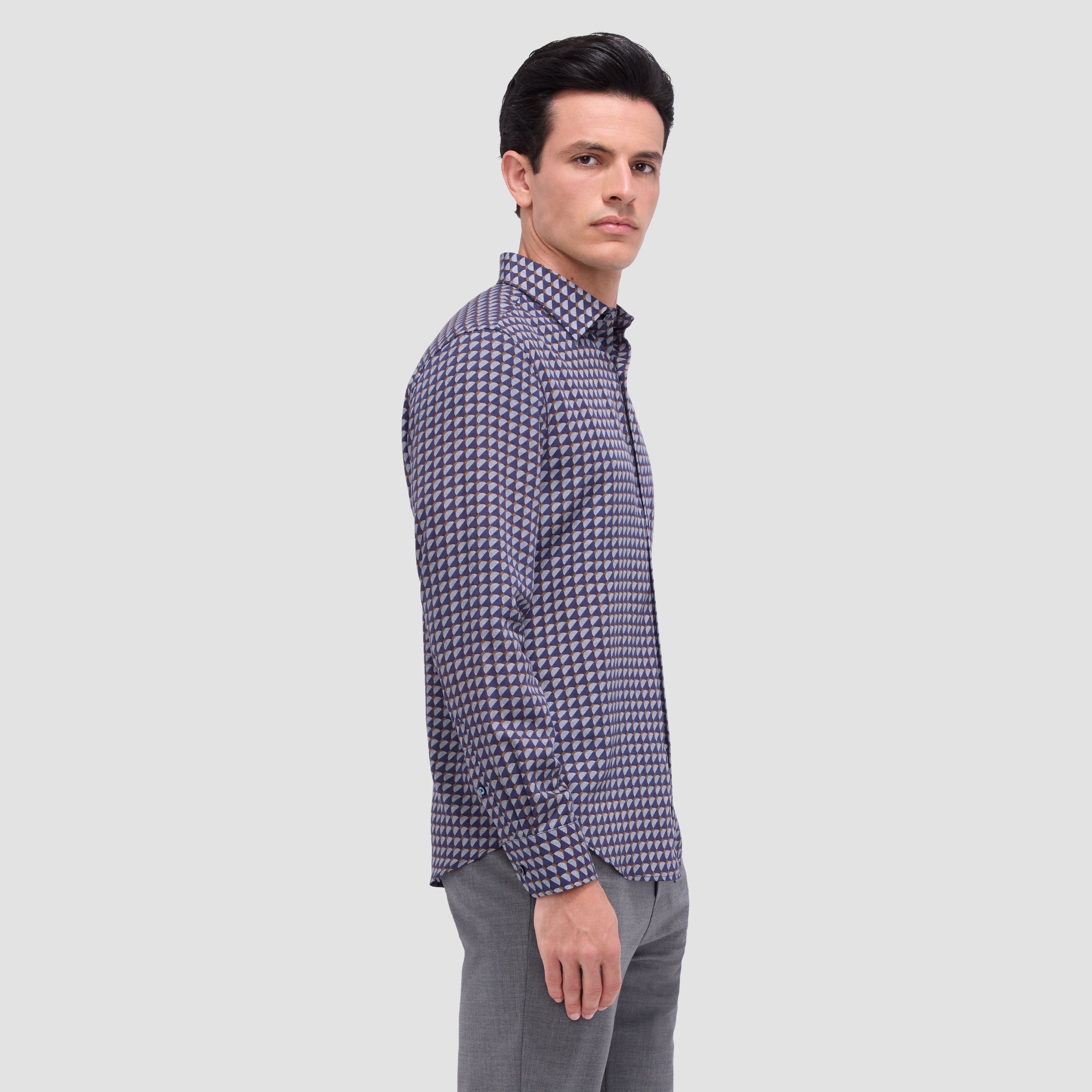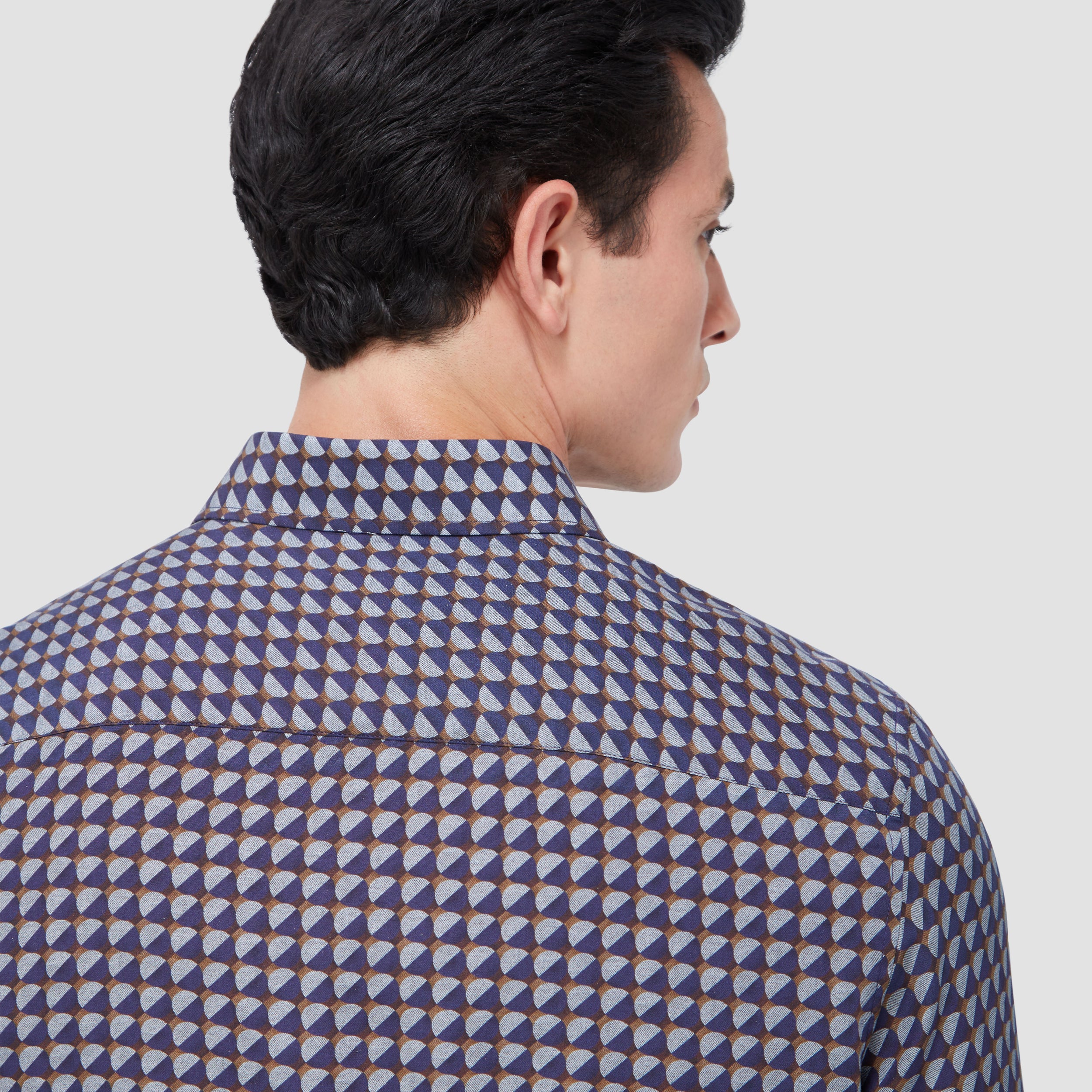 The Julian shirt in lyocell is a breathable, moisture-wicking, and wrinkle-resistant shirt with optimal comfort and freedom of movement properties. Its timeless and sleek silhouette features long sleeves, a classic point collar, adjustable notched cuffs, a curved hem, and an eye-catching geometric print. Wear it tucked or untucked with chinos or trousers for a smart-casual vibe, or with jeans for a relaxed look.