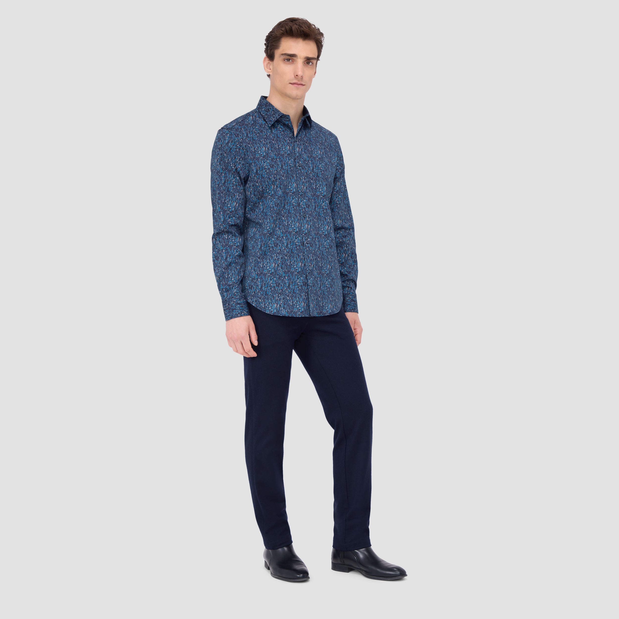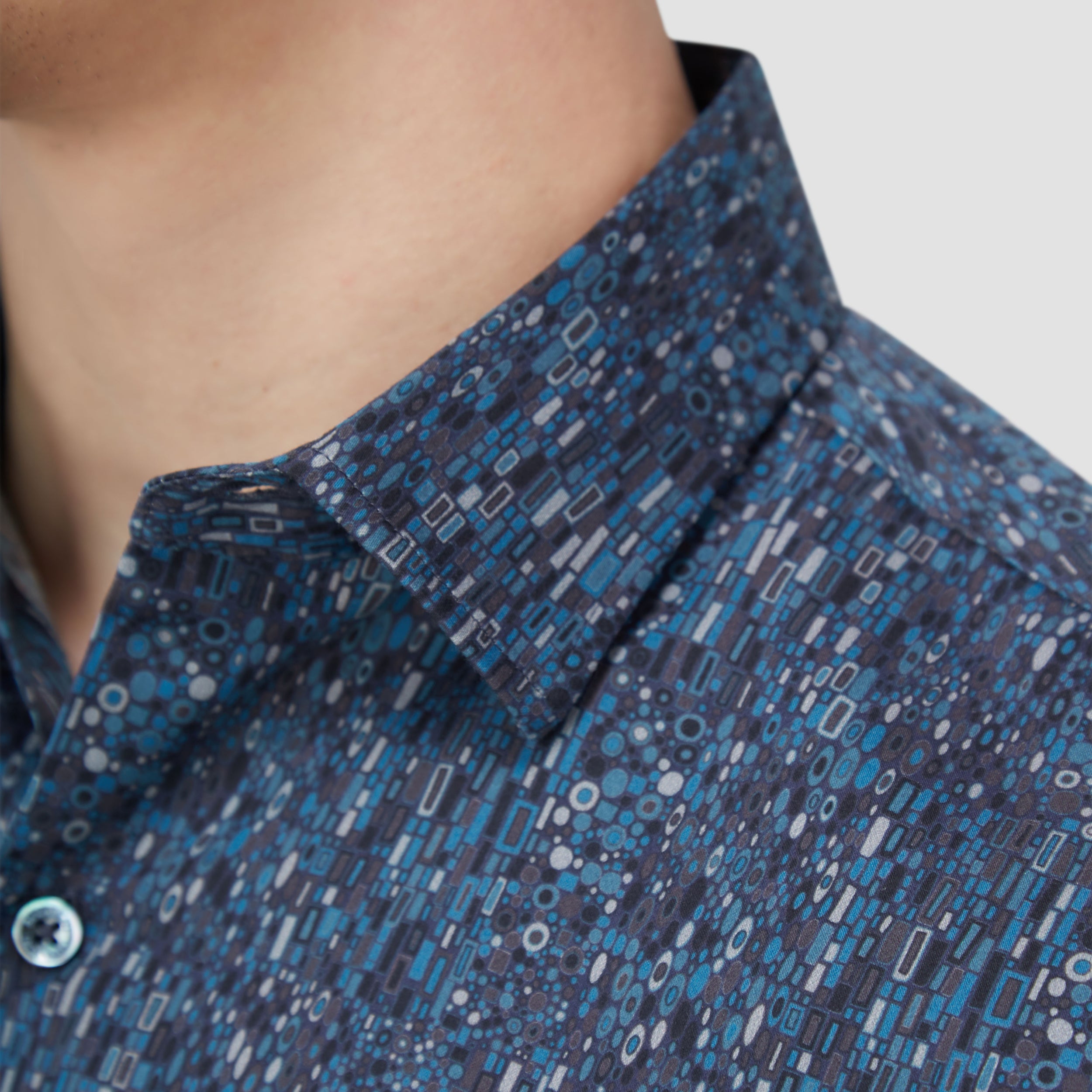 The Julian shirt in COMFORT STRETCH cotton is a contemporary and versatile shirt with optimal comfort and freedom of movement properties. Its timeless and sleek silhouette features long sleeves, a classic point collar, adjustable notched cuffs, a curved hem, and an eye-catching geometric print. Wear it tucked or untucked with chinos or trousers for a smart-casual vibe, or with jeans for a relaxed look.