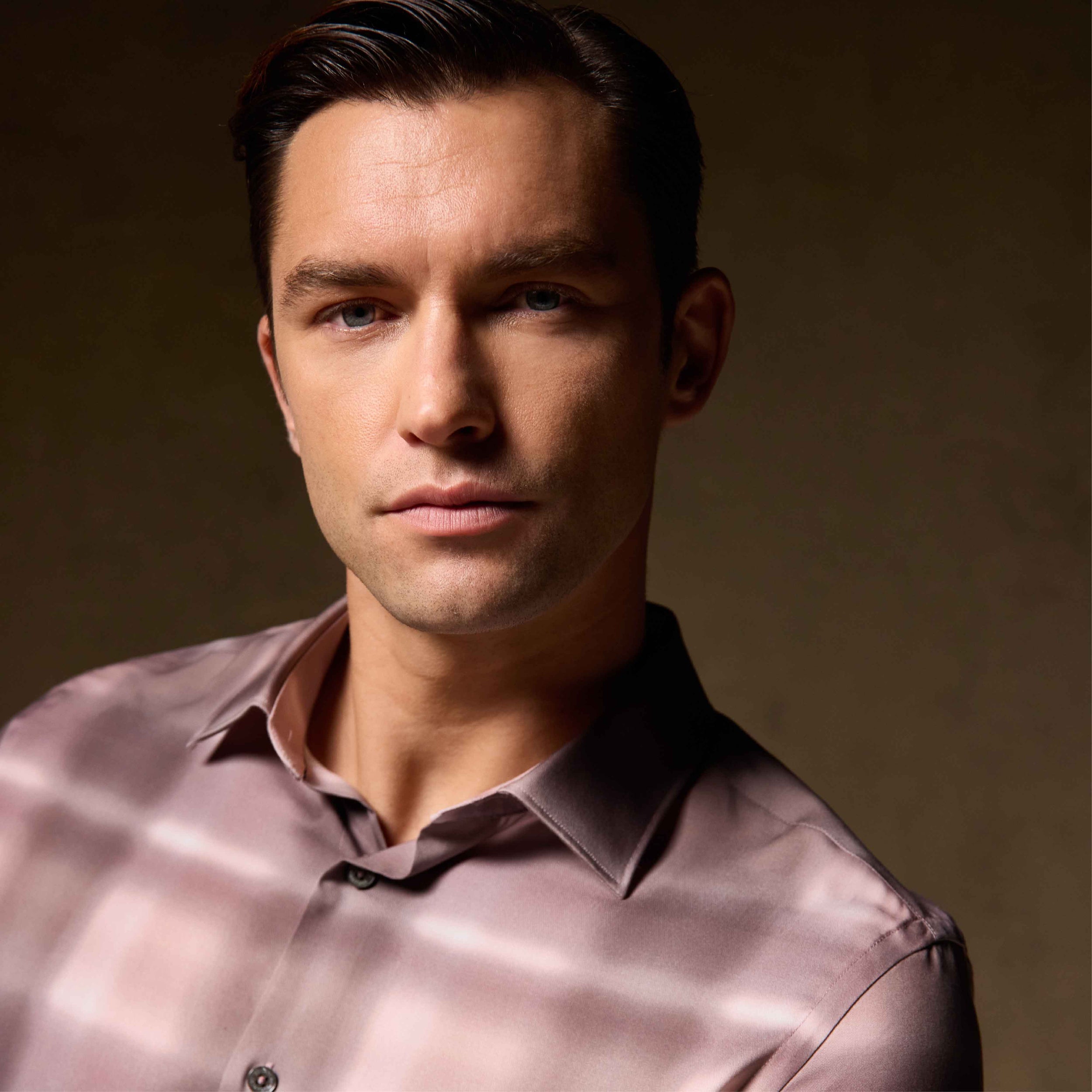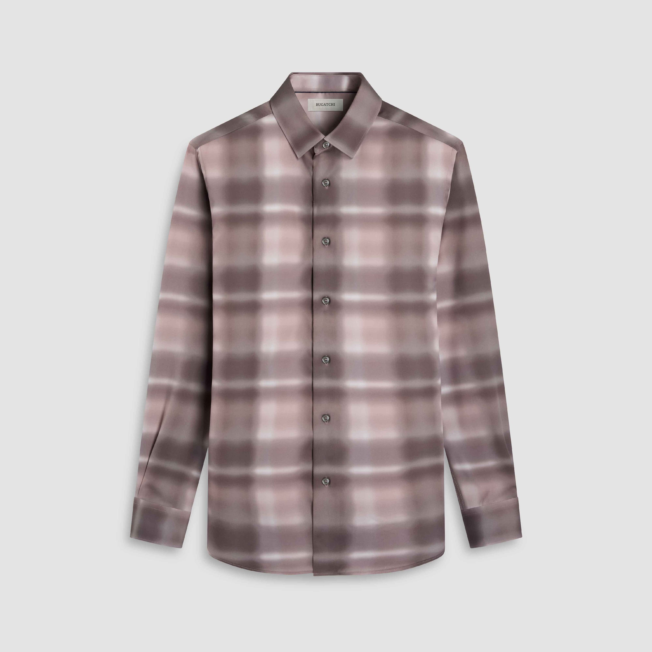 The Julian long-sleeve shirt in gradient abstract print is crafted from 100% lyocell, a premium eco-friendly fabric with soft drape and natural breathability. It features a point collar, mother-of-pearl buttons, a curved hem that looks great tucked or untucked, and adjustable notched cuffs that also convert for cufflinks. A refined, all-occasion shirt.