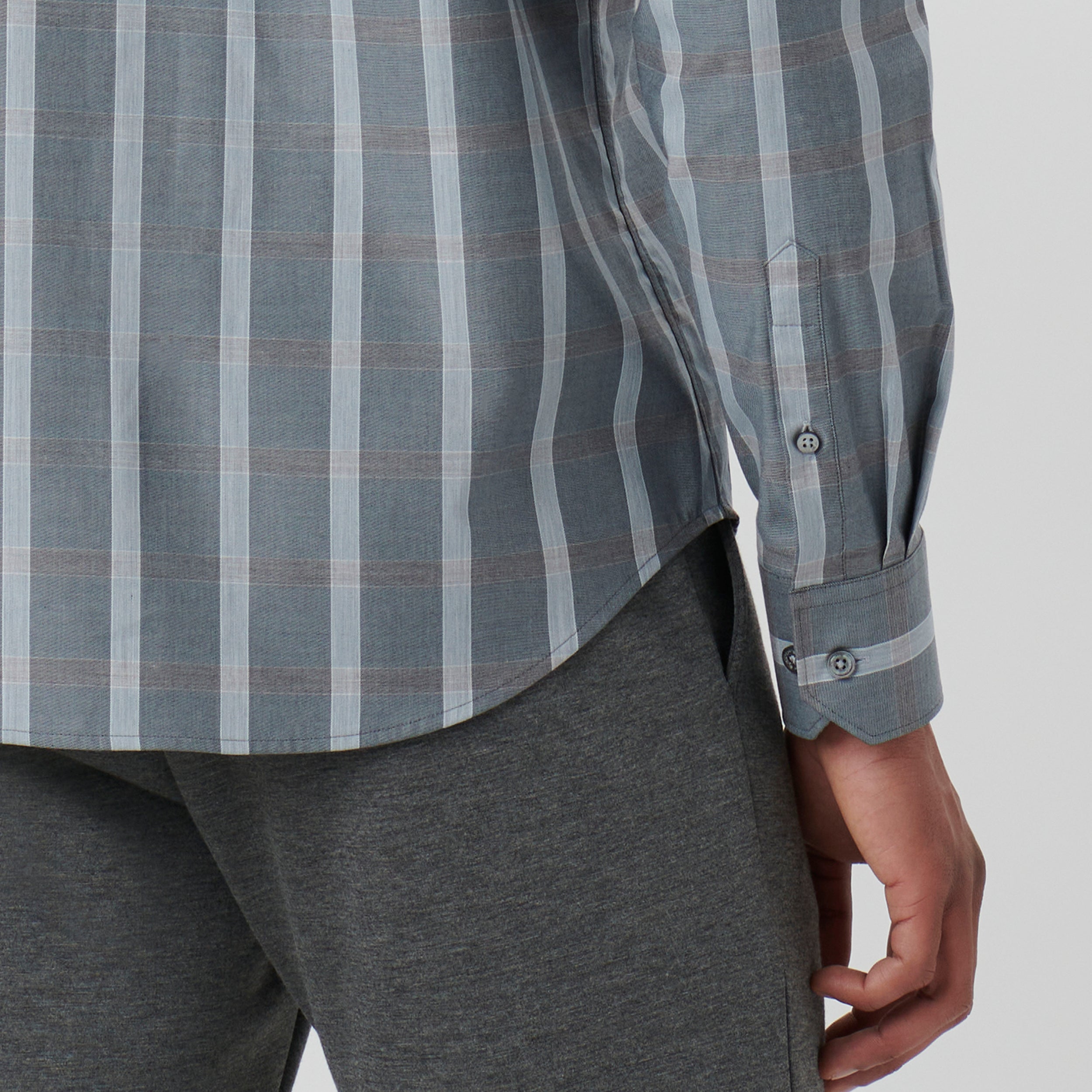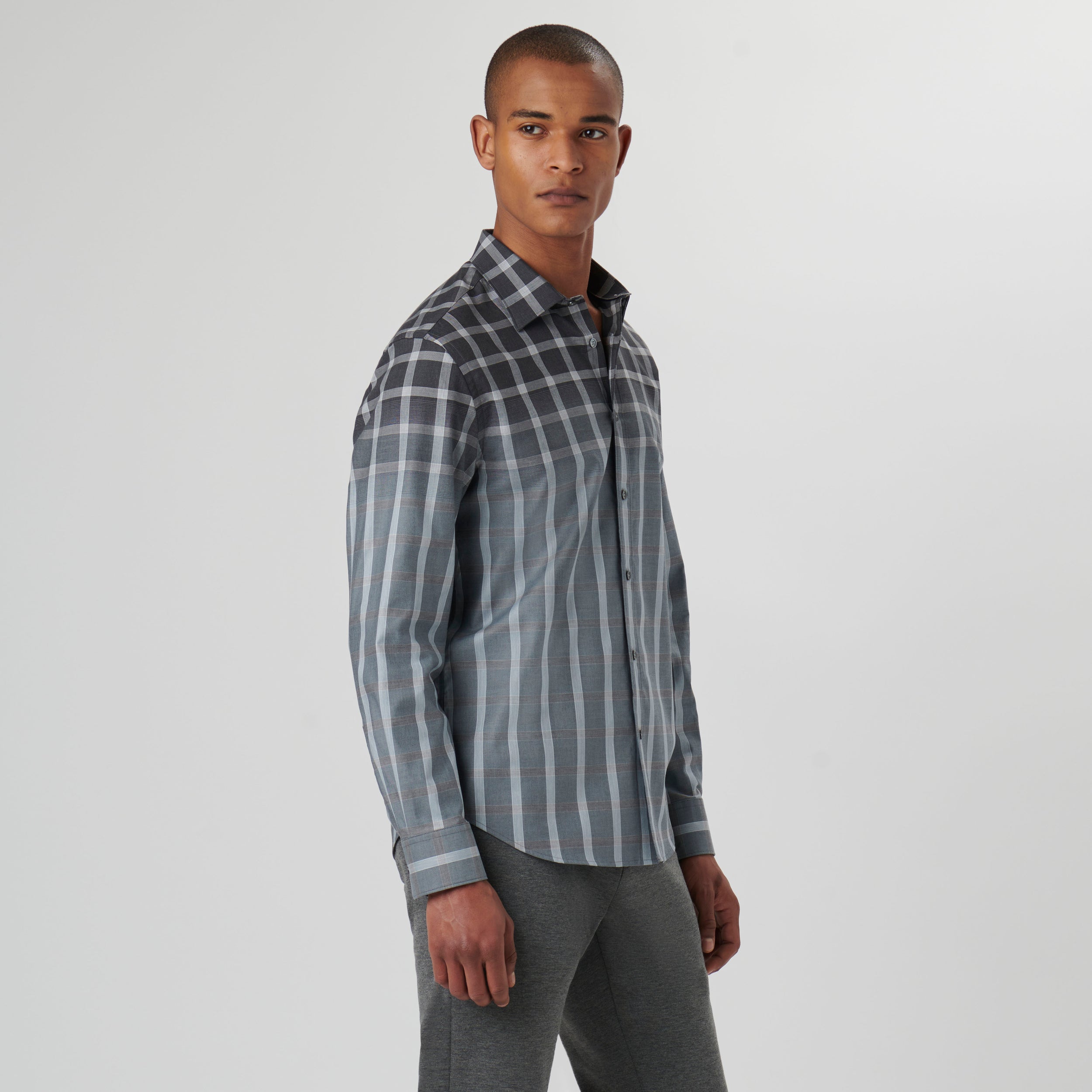 Julian long-sleeved shirt in gradient windowpane check COMFORT STRETCH cotton with point collar, adjustable notched cuffs and curved hem.