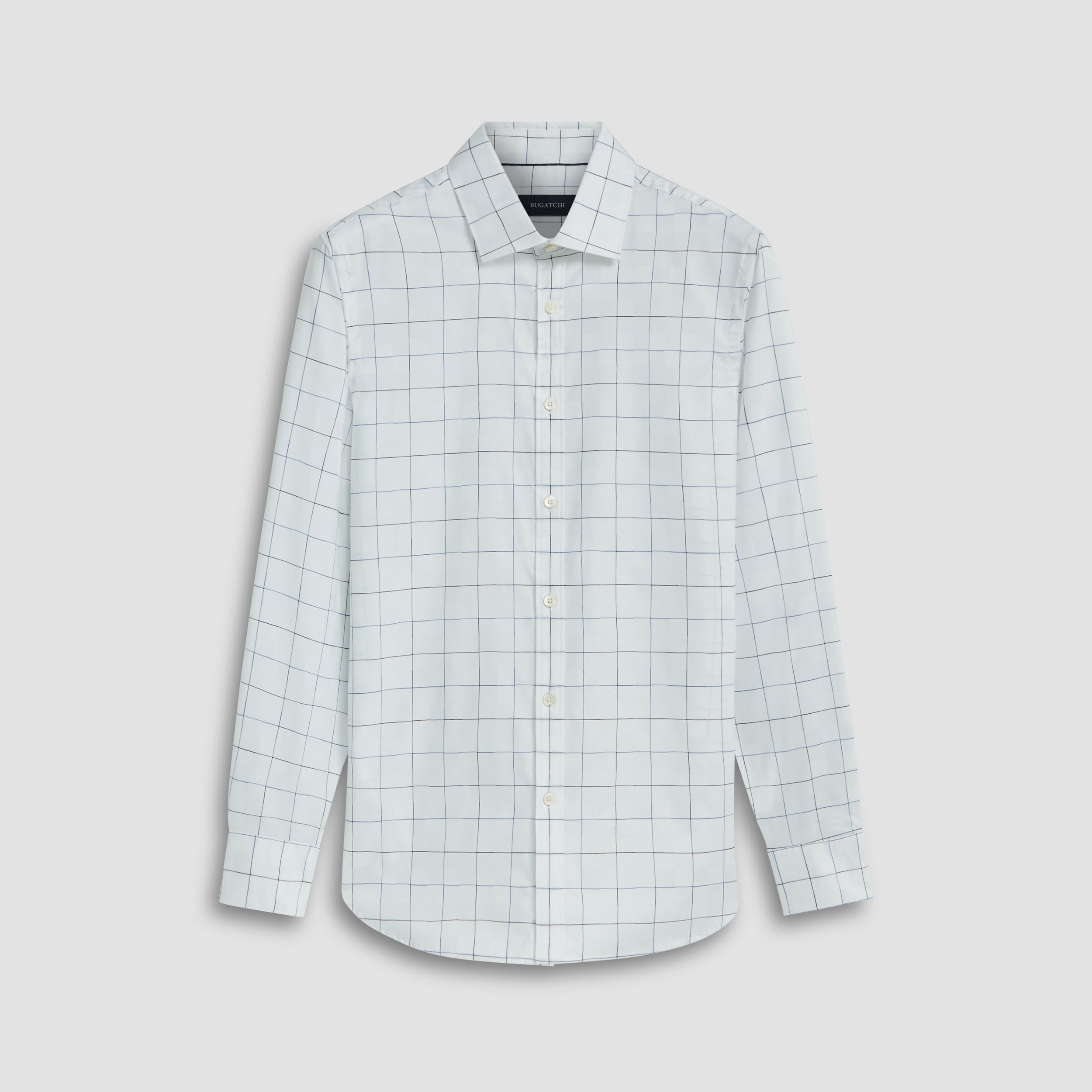 Julian long-sleeved shirt in graph check COMFORT STRETCH cotton with point collar, adjustable notched cuffs and curved hem.