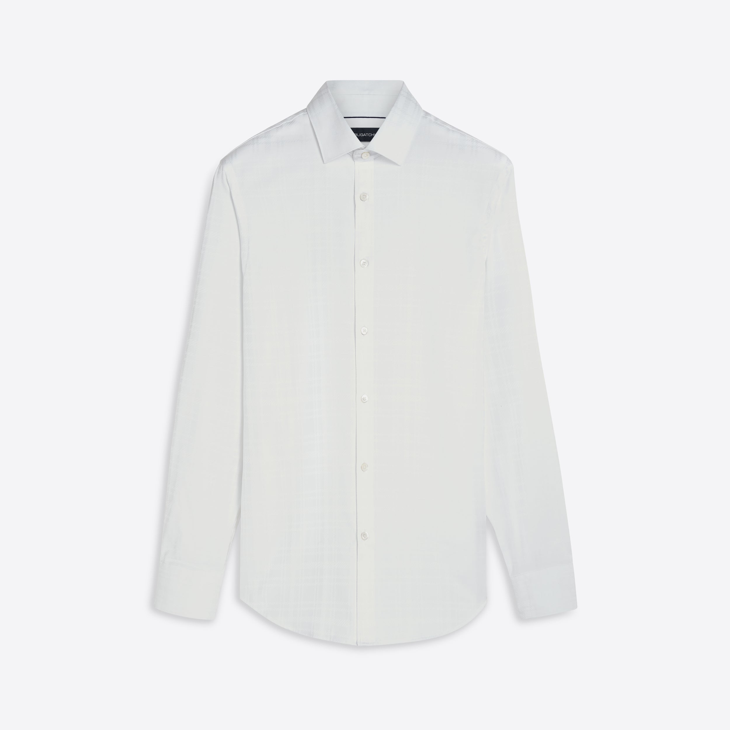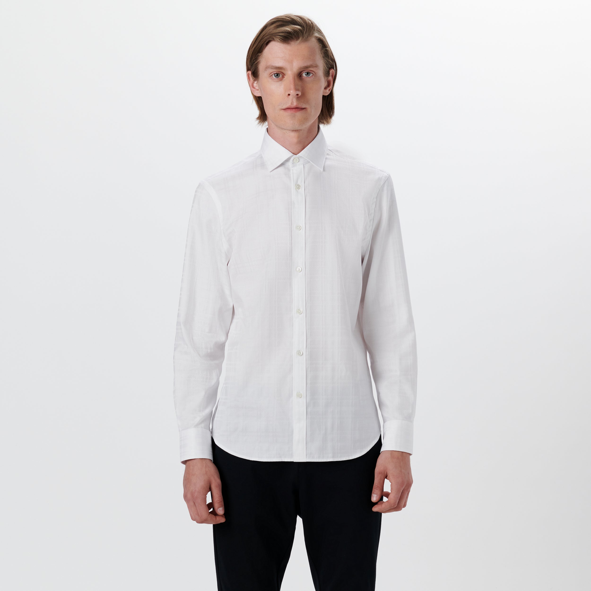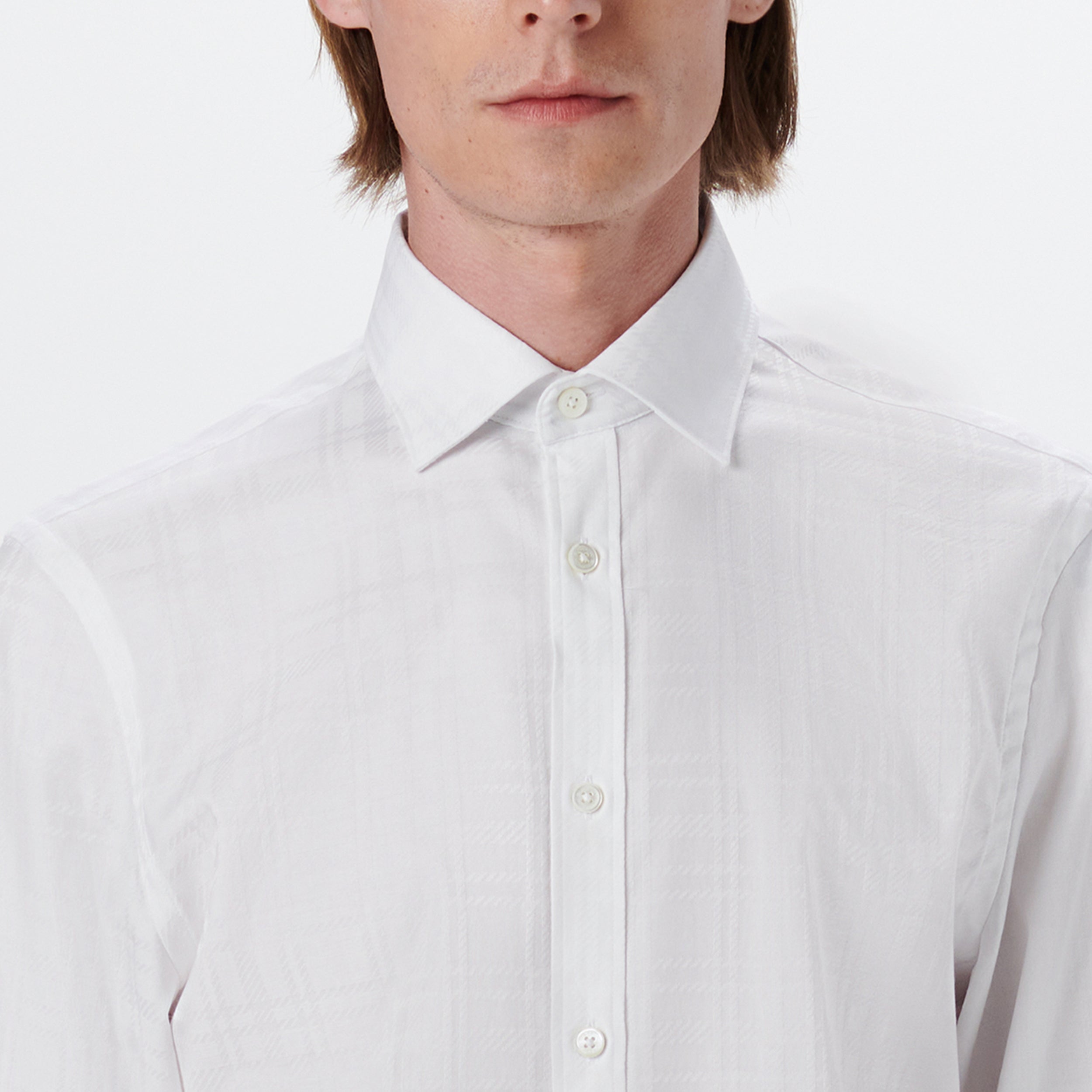 JULIAN long-sleeved shirt in jacquard check COMFORT STRETCH cotton with point collar, adjustable notched cuffs and curved hem.