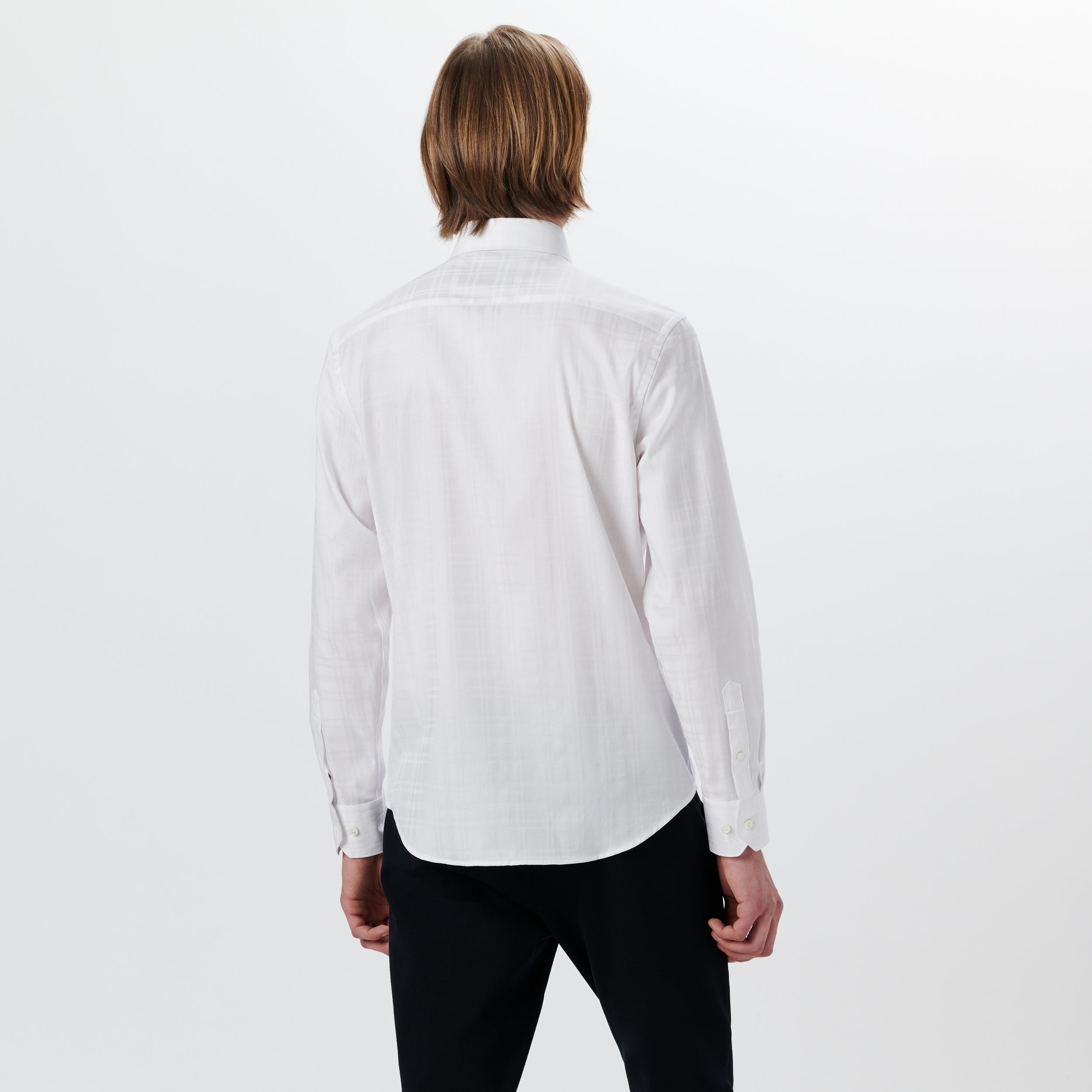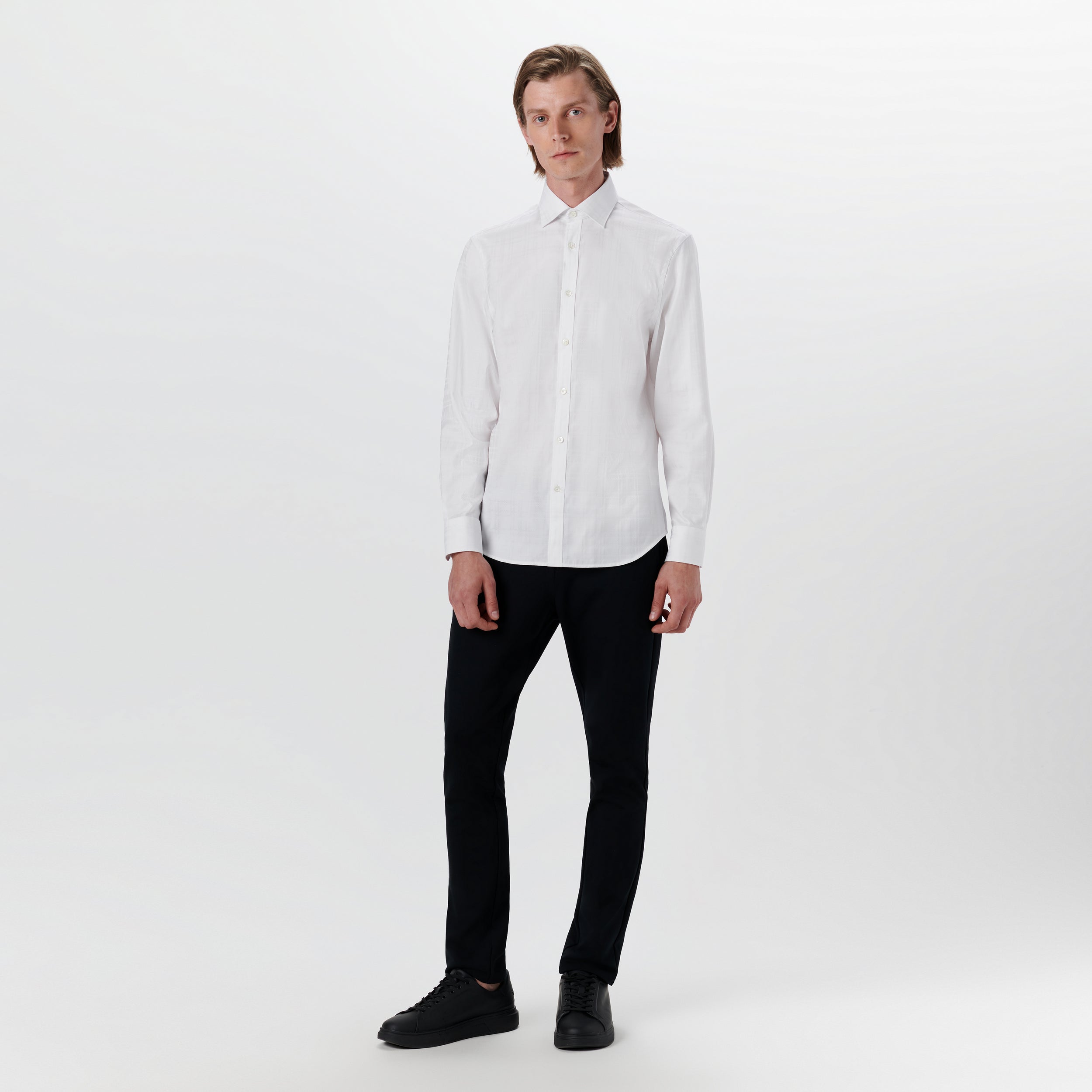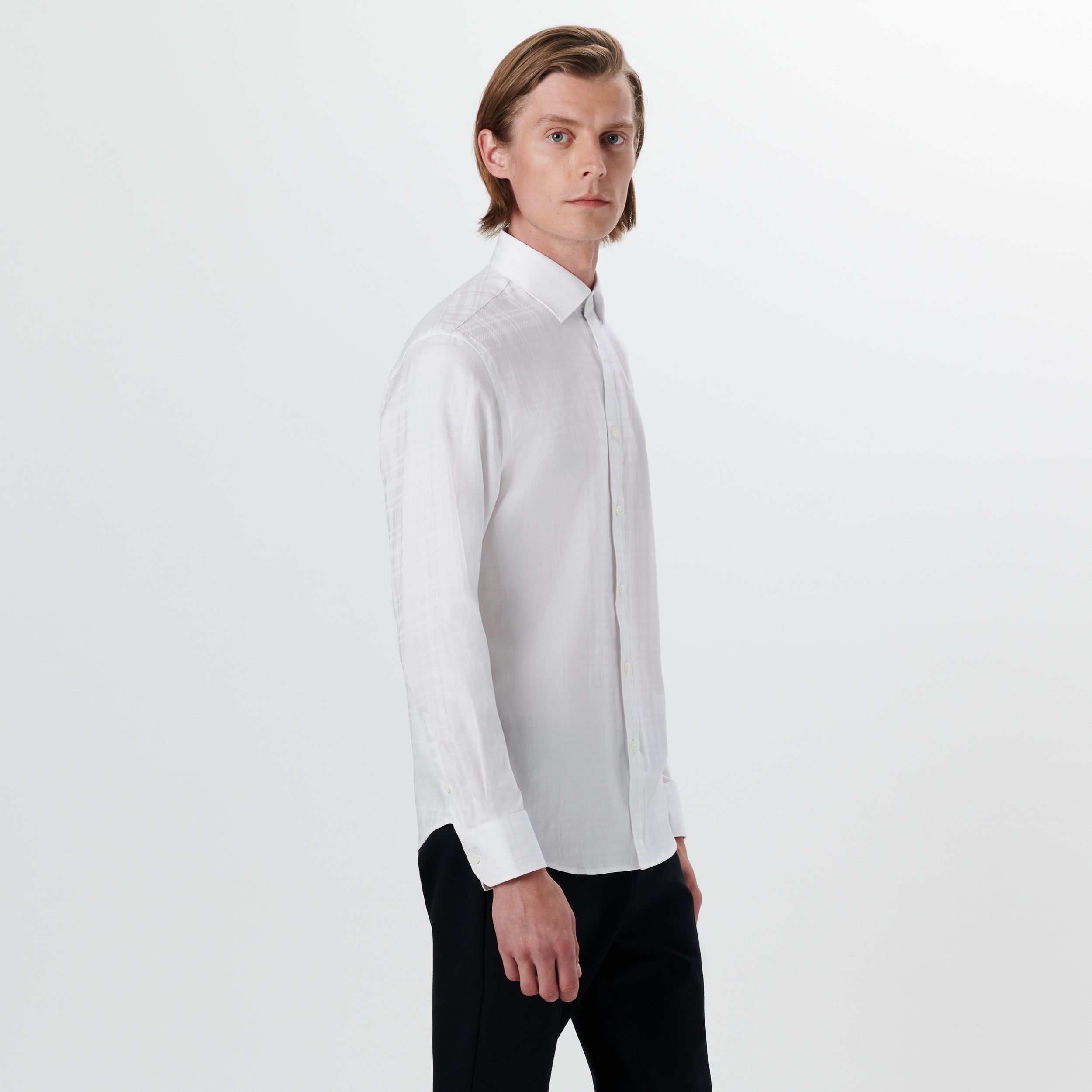 JULIAN long-sleeved shirt in jacquard check COMFORT STRETCH cotton with point collar, adjustable notched cuffs and curved hem.