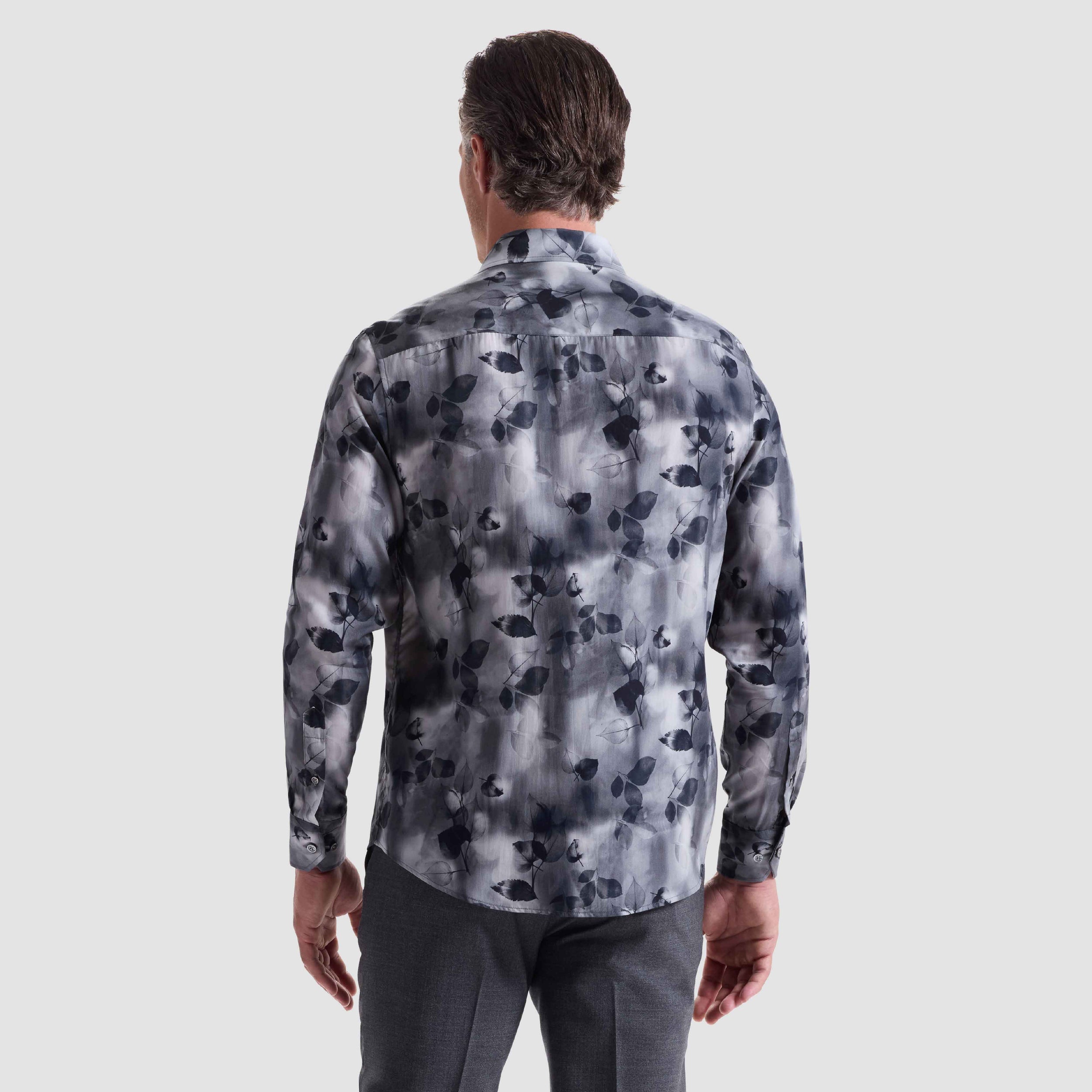 The Julian long-sleeve shirt in leaf print is crafted from 100% Italian lyocell, a premium eco-friendly fabric with soft drape and natural breathability. It features a point collar, mother-of-pearl buttons, a curved hem that looks great tucked or untucked, and adjustable notched cuffs that also convert for cufflinks. A refined, all-occasion shirt.