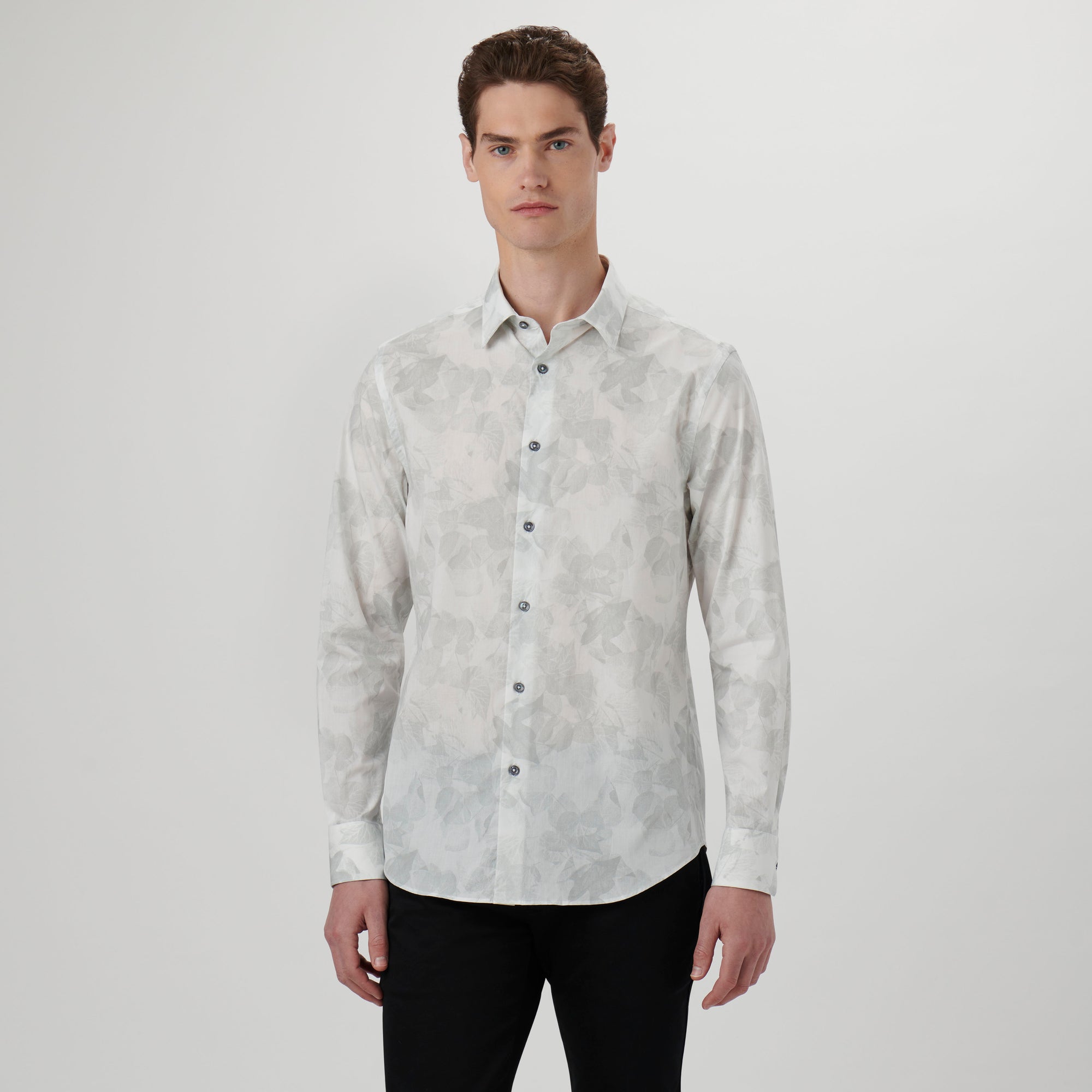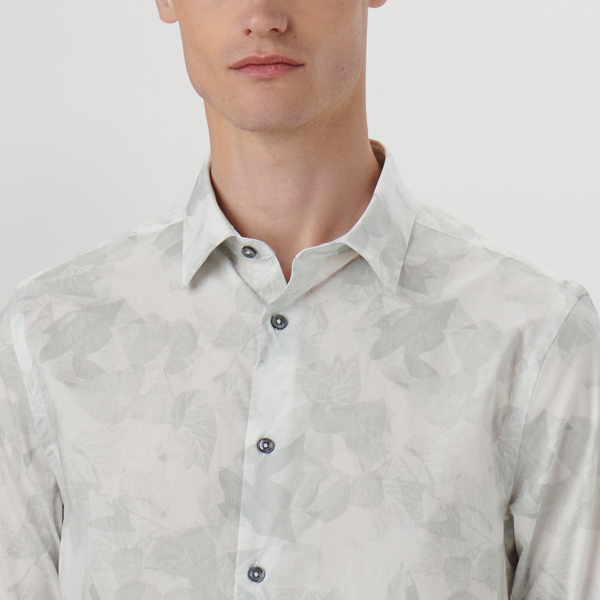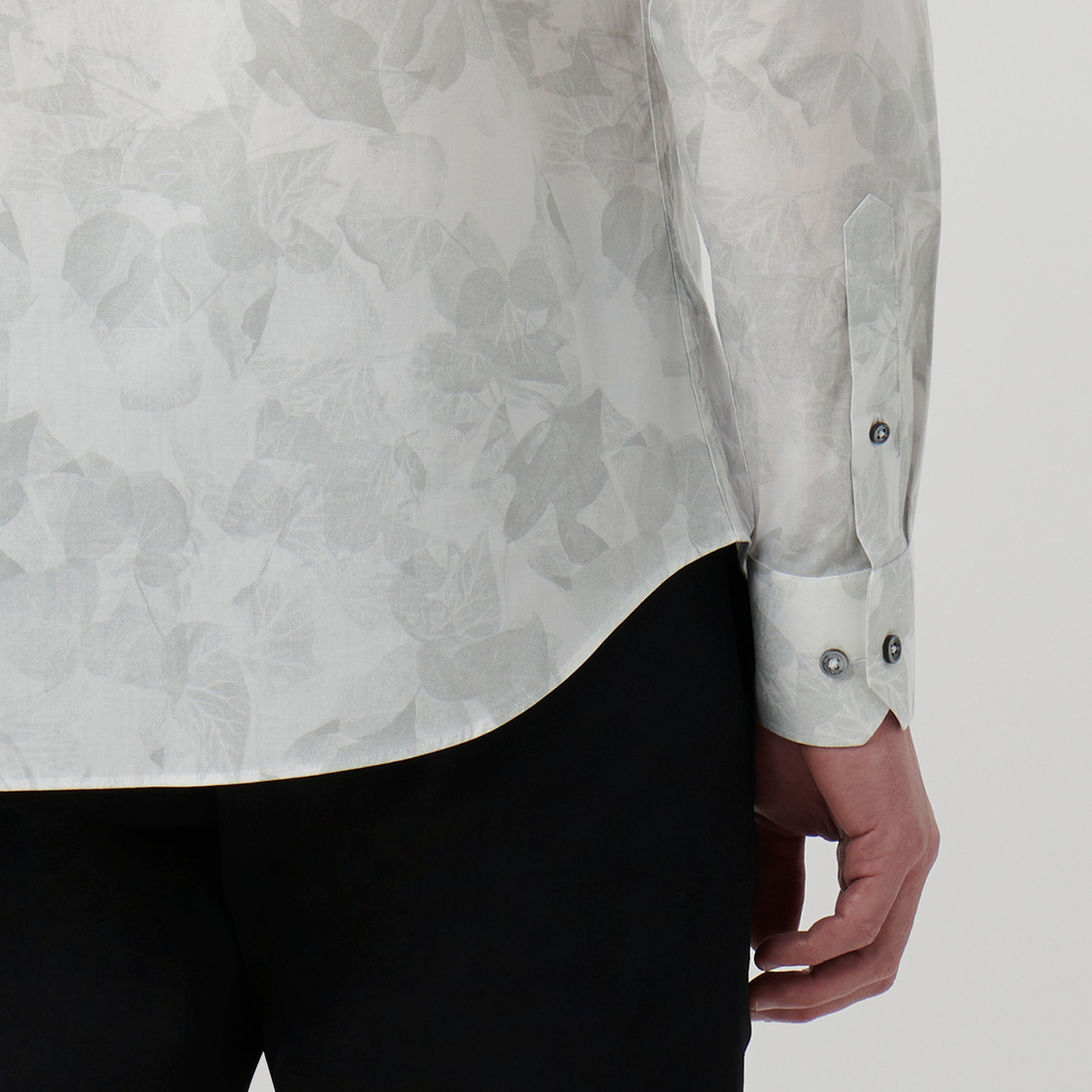 Julian long-sleeved shirt in leaf print COMFORT STRETCH cotton with point collar, adjustable notched cuffs and curved hem.