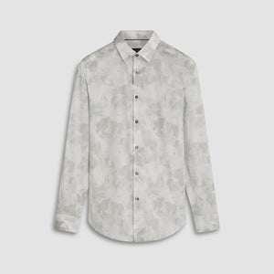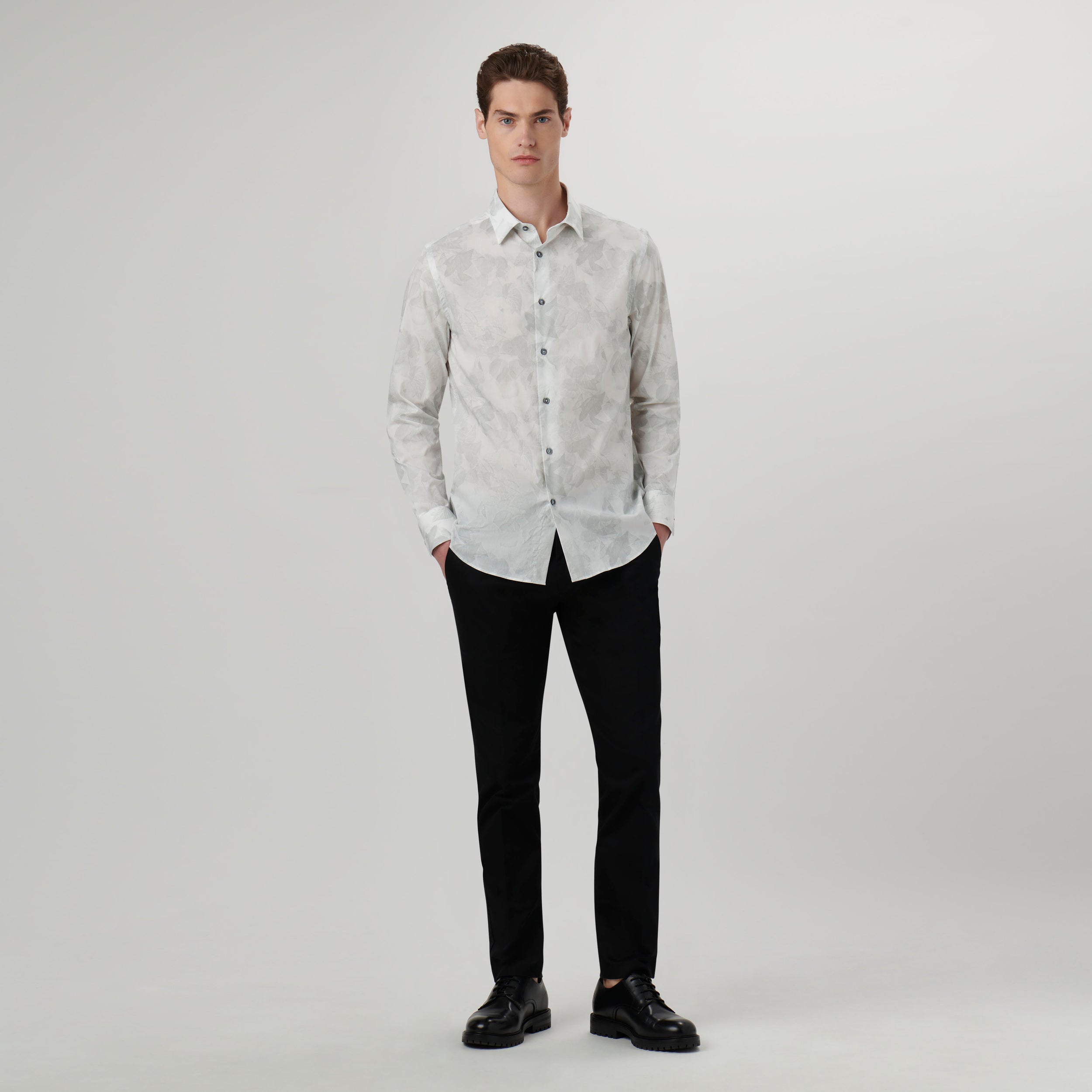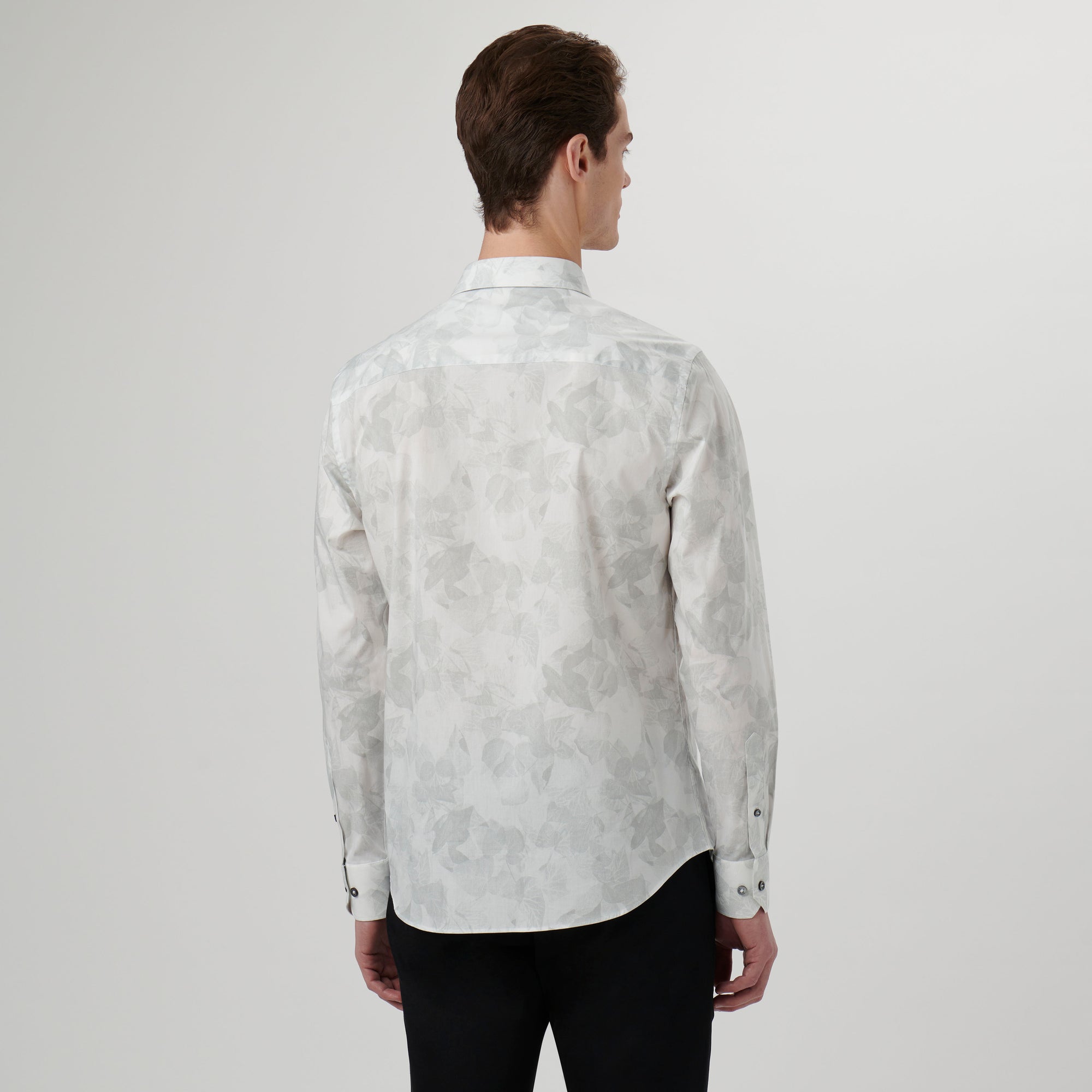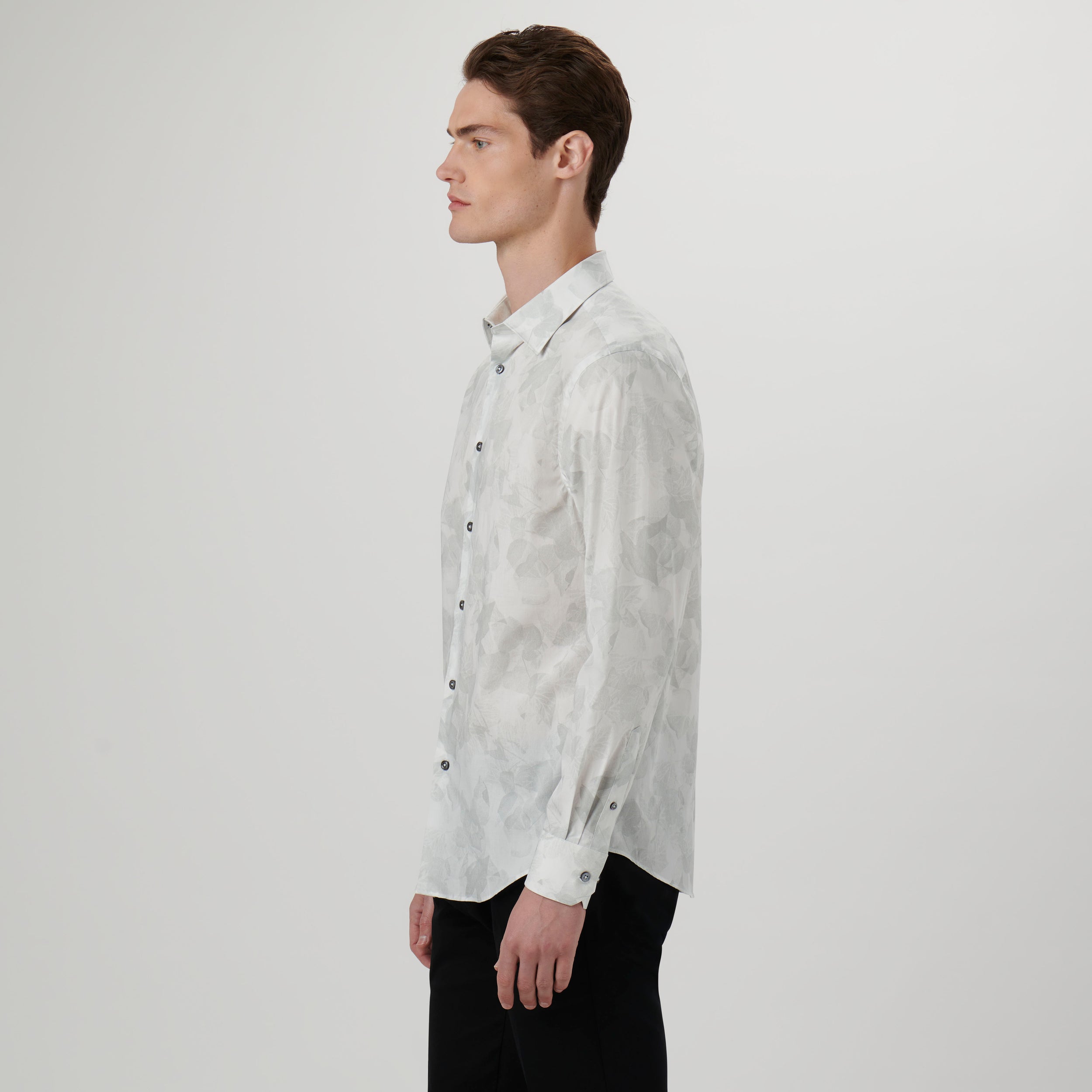 Julian long-sleeved shirt in leaf print COMFORT STRETCH cotton with point collar, adjustable notched cuffs and curved hem.