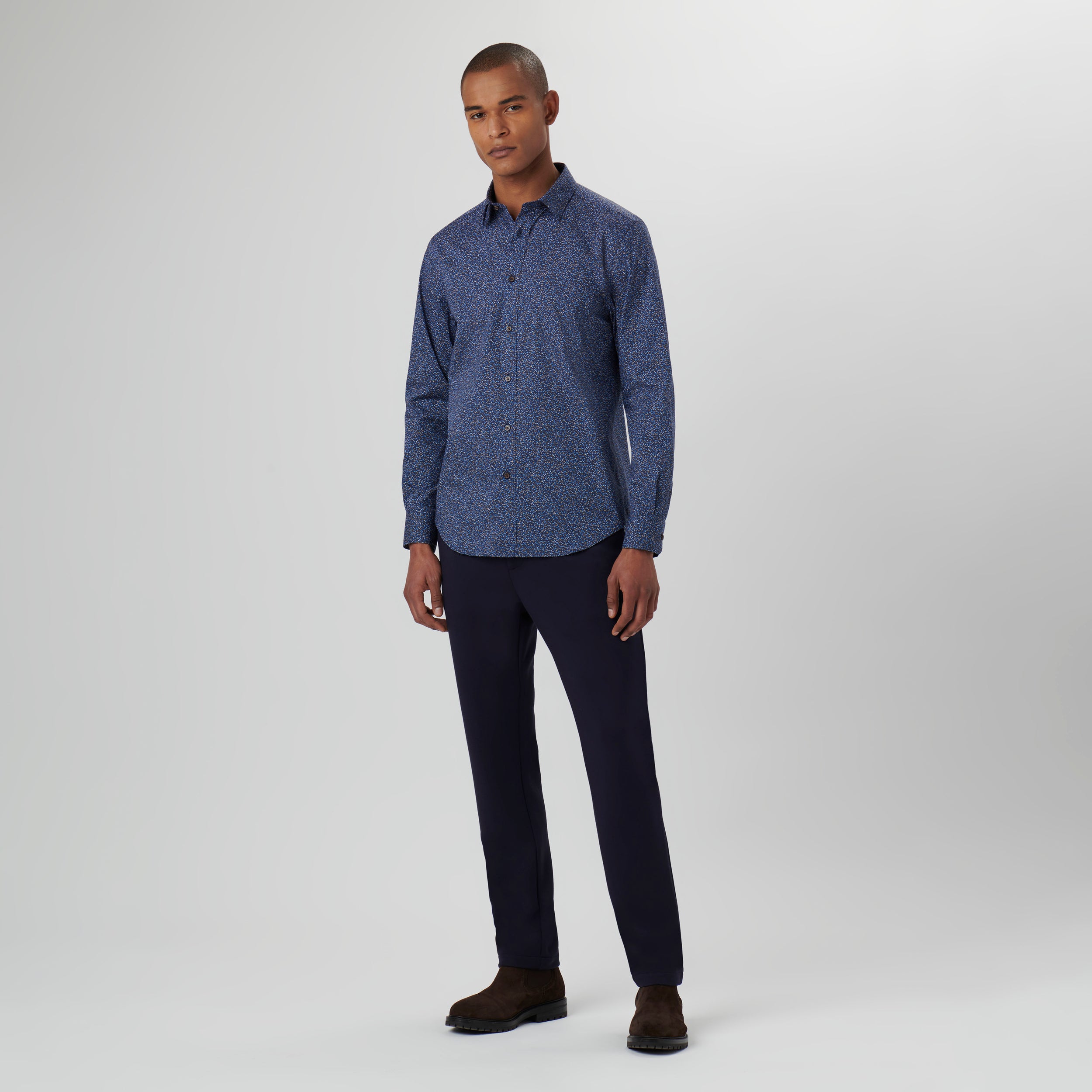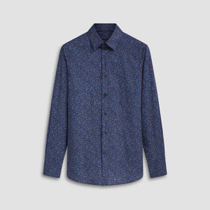 Julian long-sleeved shirt in leaf print COMFORT STRETCH cotton with point collar, adjustable notched cuffs and curved hem.