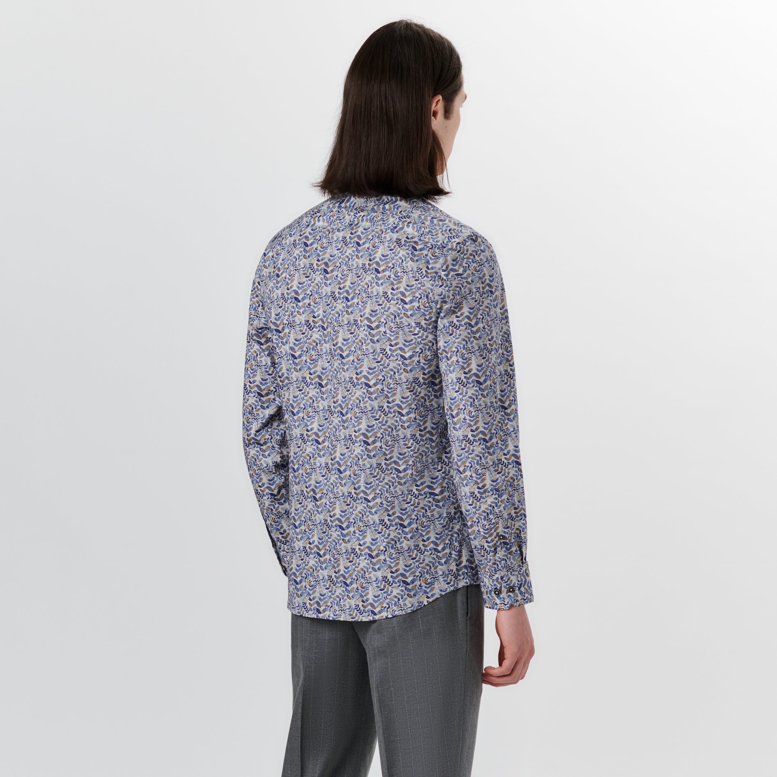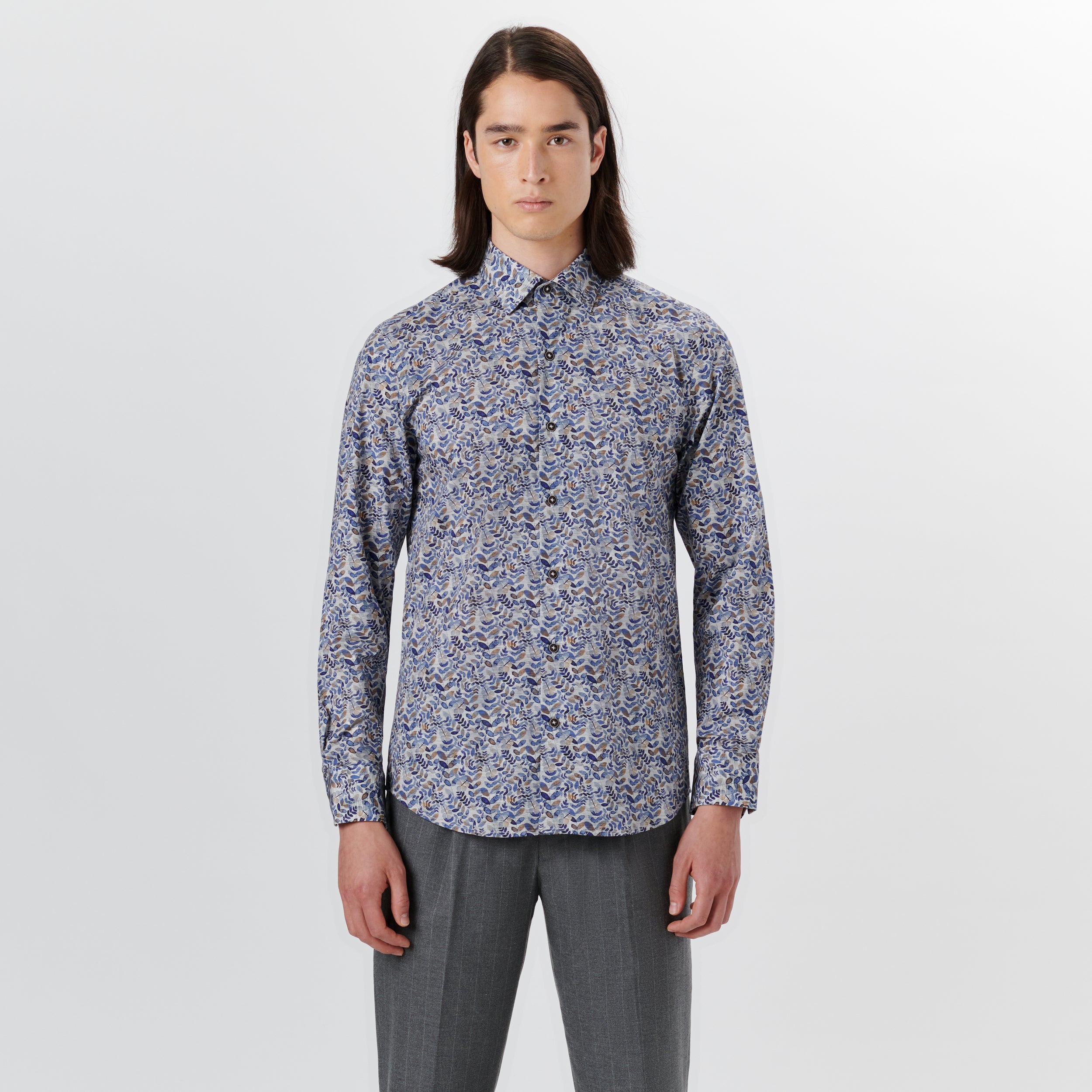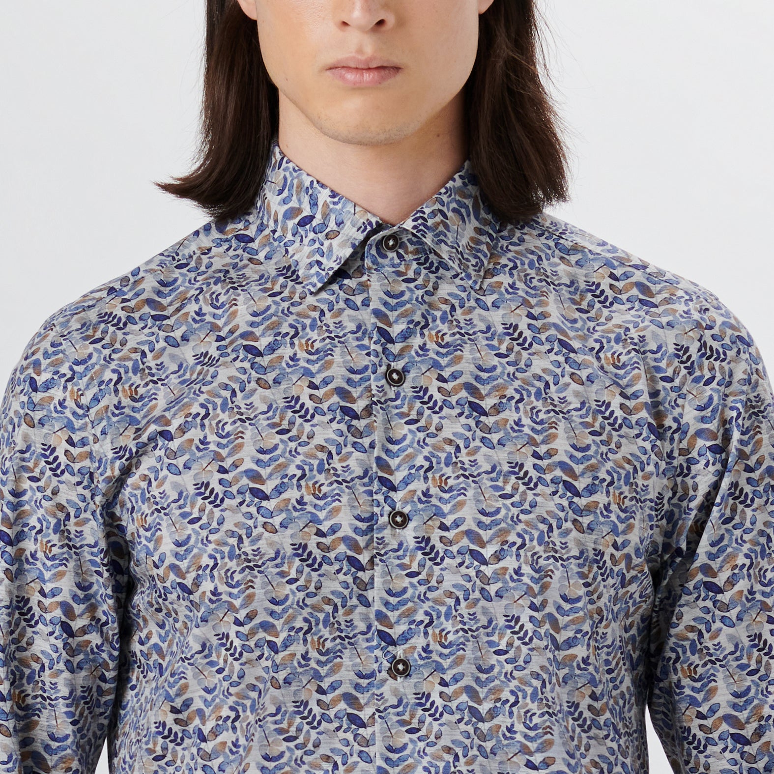 JULIAN long-sleeved shirt in leaf print COMFORT STRETCH cotton with point collar, adjustable notched cuffs and curved hem.