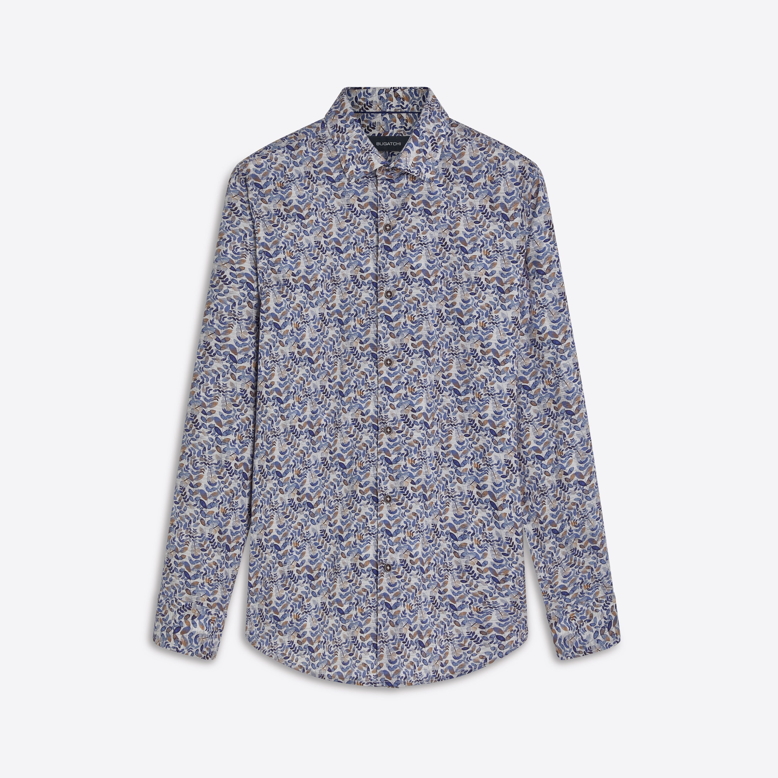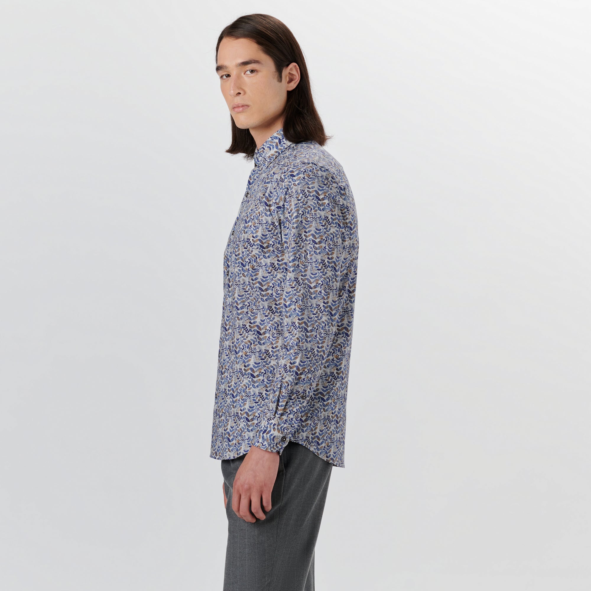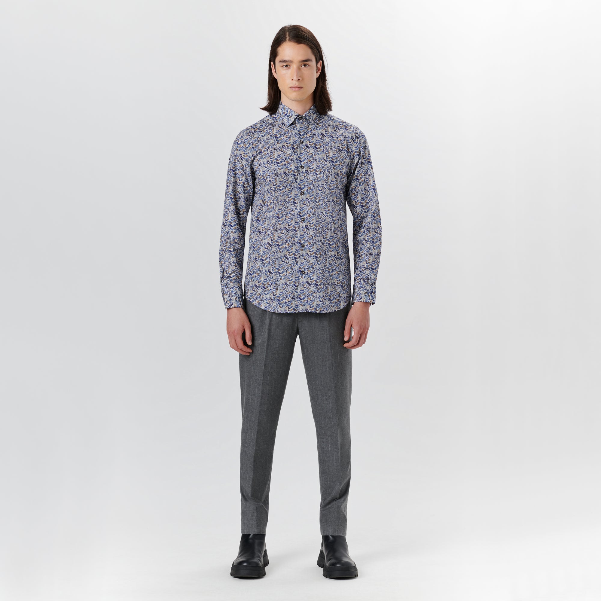 JULIAN long-sleeved shirt in leaf print COMFORT STRETCH cotton with point collar, adjustable notched cuffs and curved hem.
