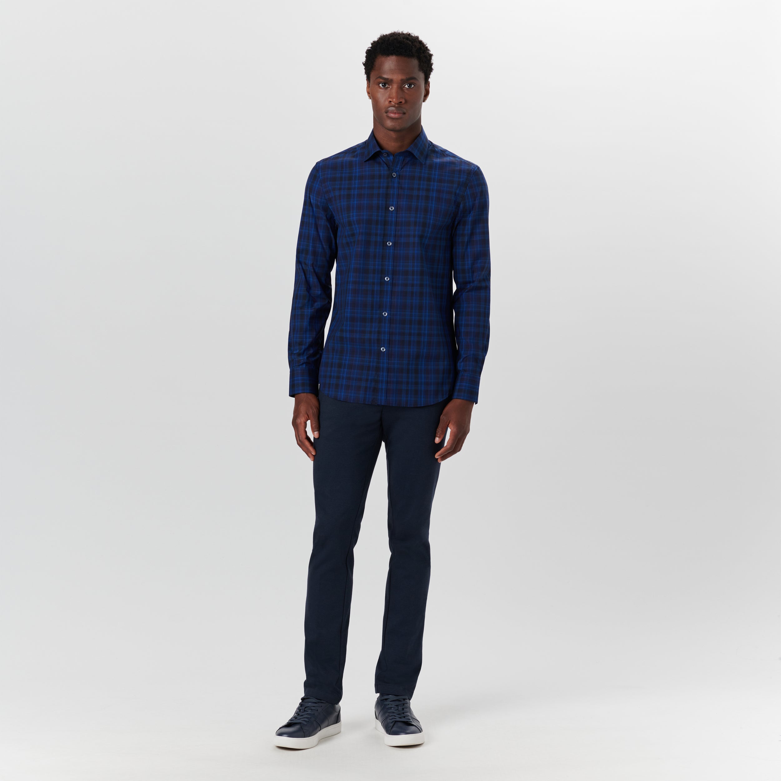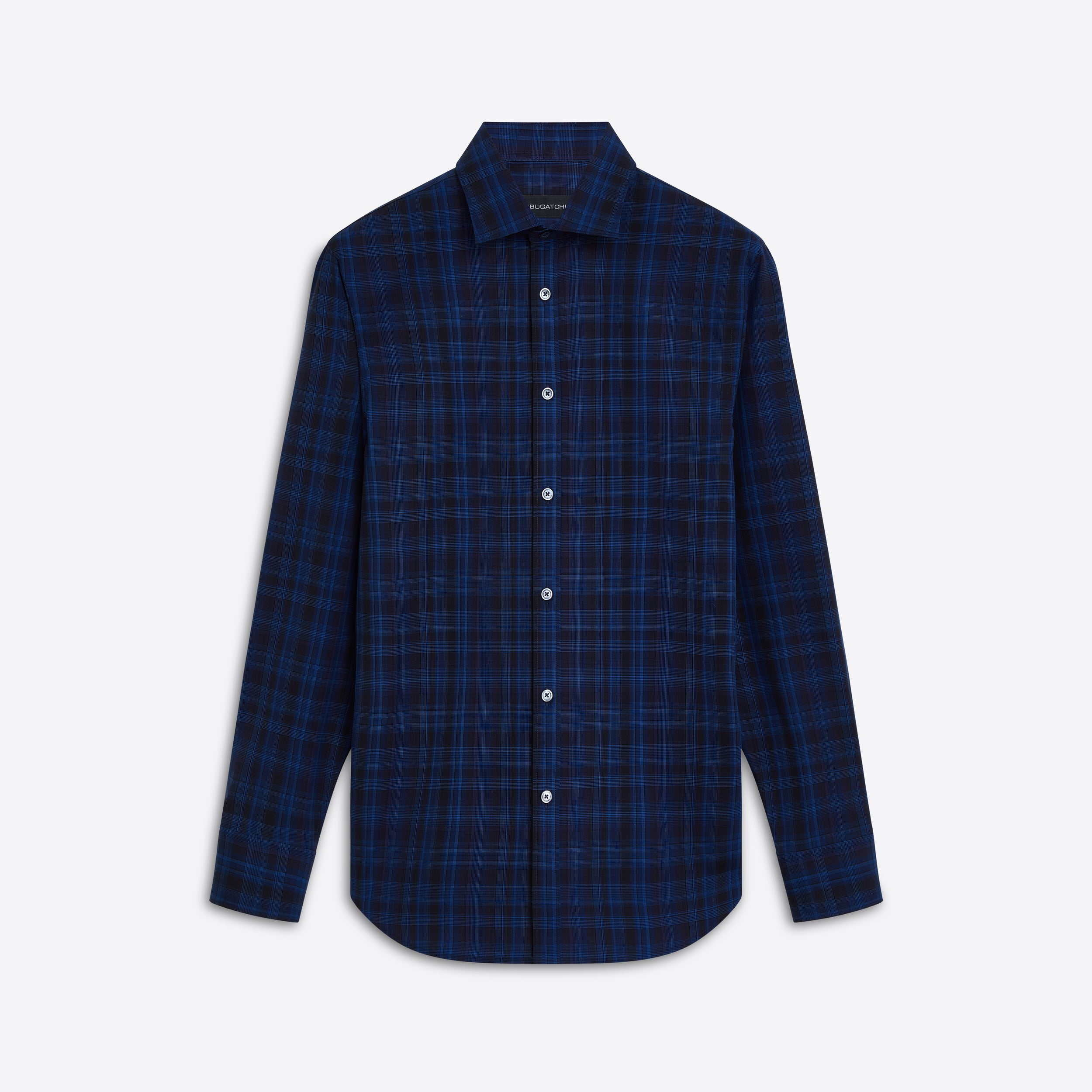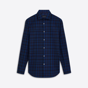 JULIAN long-sleeved shirt in madras check COMFORT STRETCH cotton with point collar, adjustable notched cuffs and curved hem.