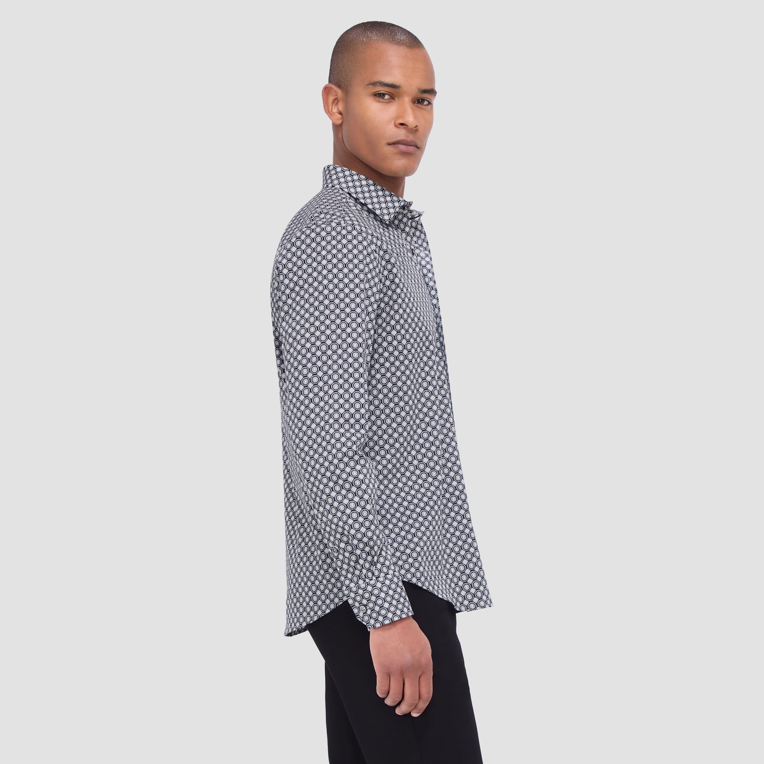 The Julian shirt in COMFORT STRETCH cotton is a contemporary and versatile shirt with optimal comfort and freedom of movement properties. Its timeless and sleek silhouette features long sleeves, a classic point collar, adjustable notched cuffs, a curved hem, and an eye-catching mandala print. Wear it tucked or untucked with chinos or trousers for a smart-casual vibe, or with jeans for a relaxed look.