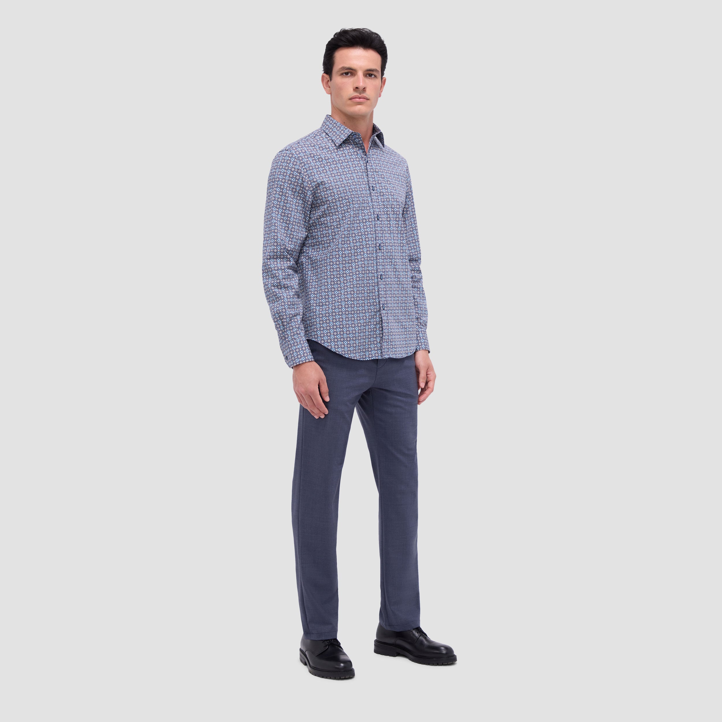 The Julian shirt in COMFORT STRETCH cotton is a contemporary and versatile shirt with optimal comfort and freedom of movement properties. Its timeless and sleek silhouette features long sleeves, a classic point collar, adjustable notched cuffs, a curved hem, and an eye-catching mosaic print. Wear it tucked or untucked with chinos or trousers for a smart-casual vibe, or with jeans for a relaxed look.