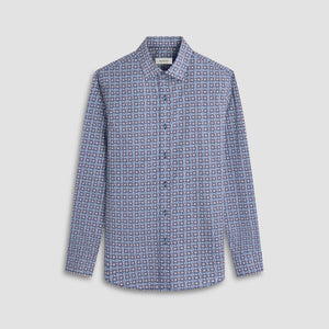 The Julian shirt in COMFORT STRETCH cotton is a contemporary and versatile shirt with optimal comfort and freedom of movement properties. Its timeless and sleek silhouette features long sleeves, a classic point collar, adjustable notched cuffs, a curved hem, and an eye-catching mosaic print. Wear it tucked or untucked with chinos or trousers for a smart-casual vibe, or with jeans for a relaxed look.