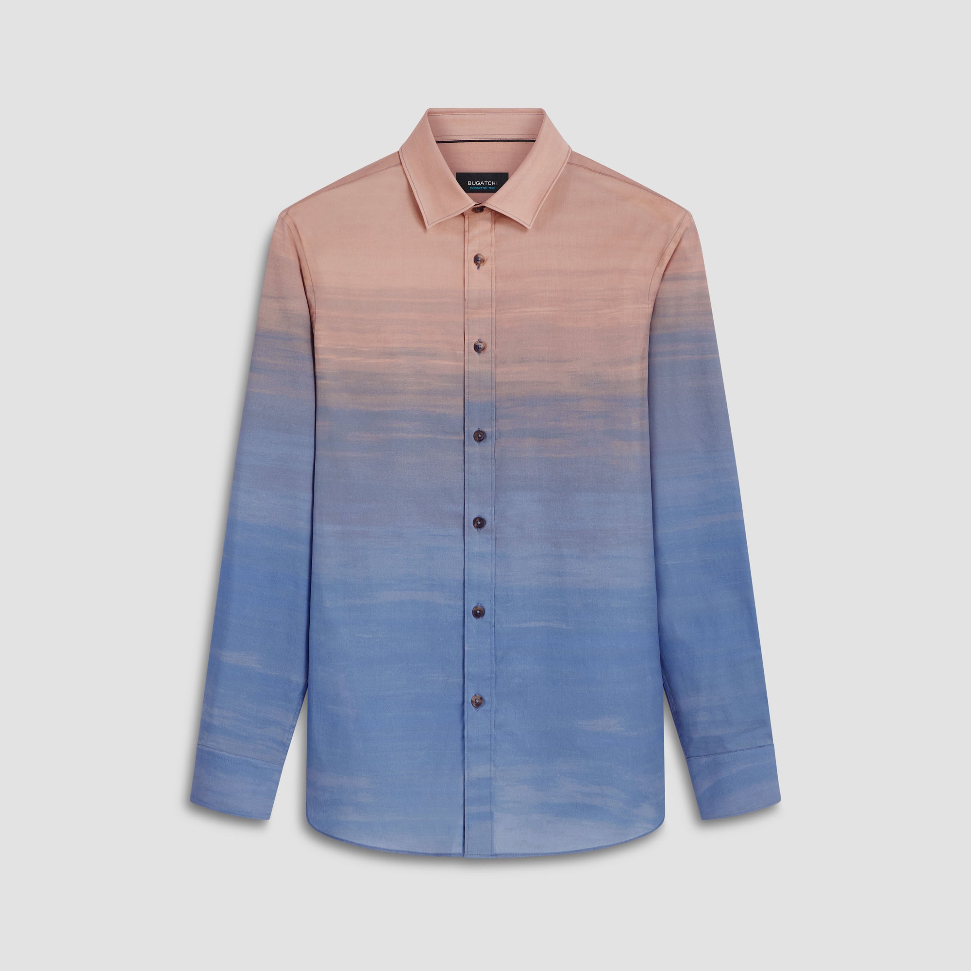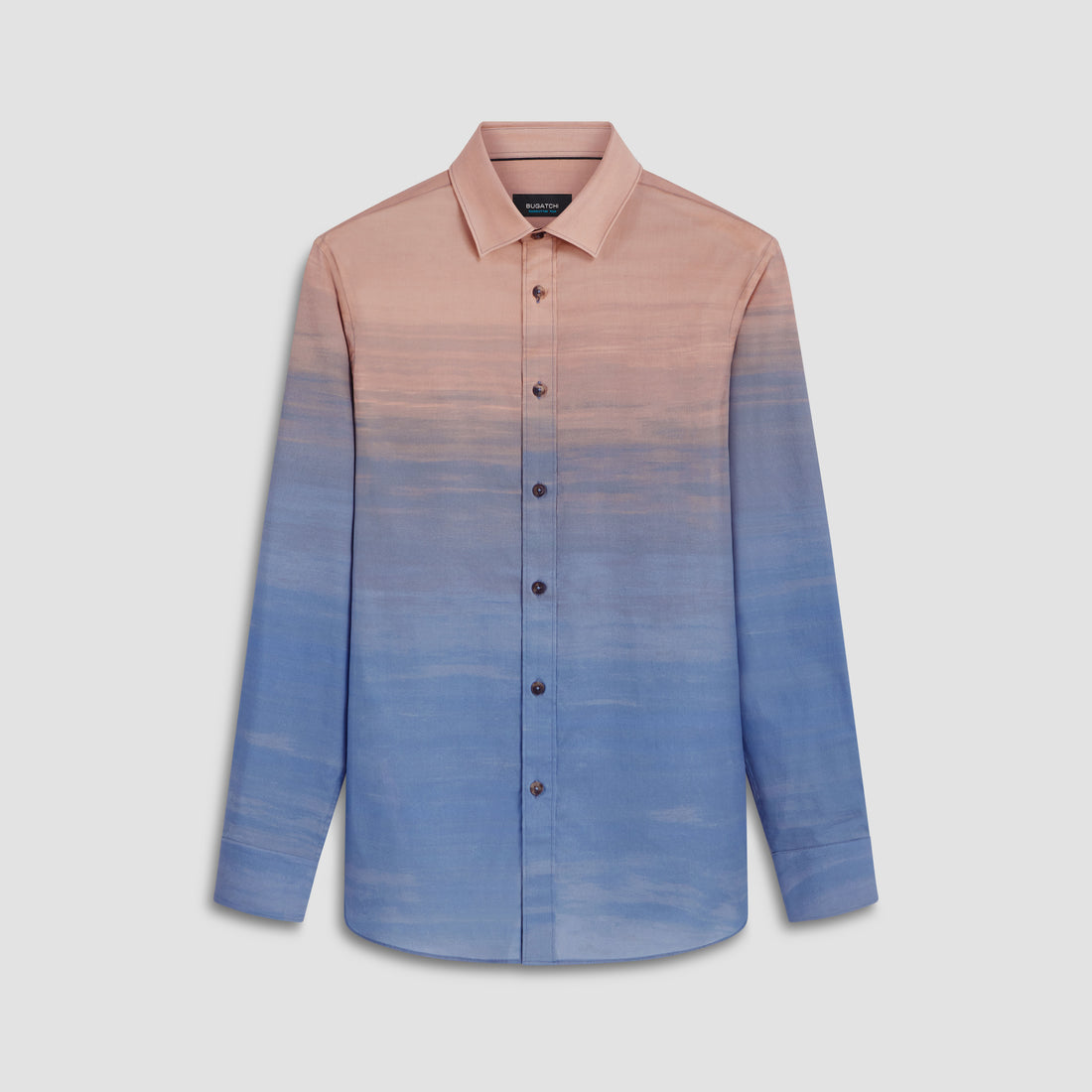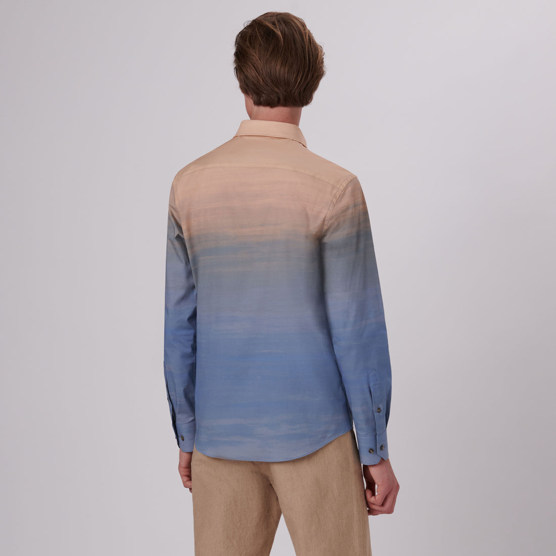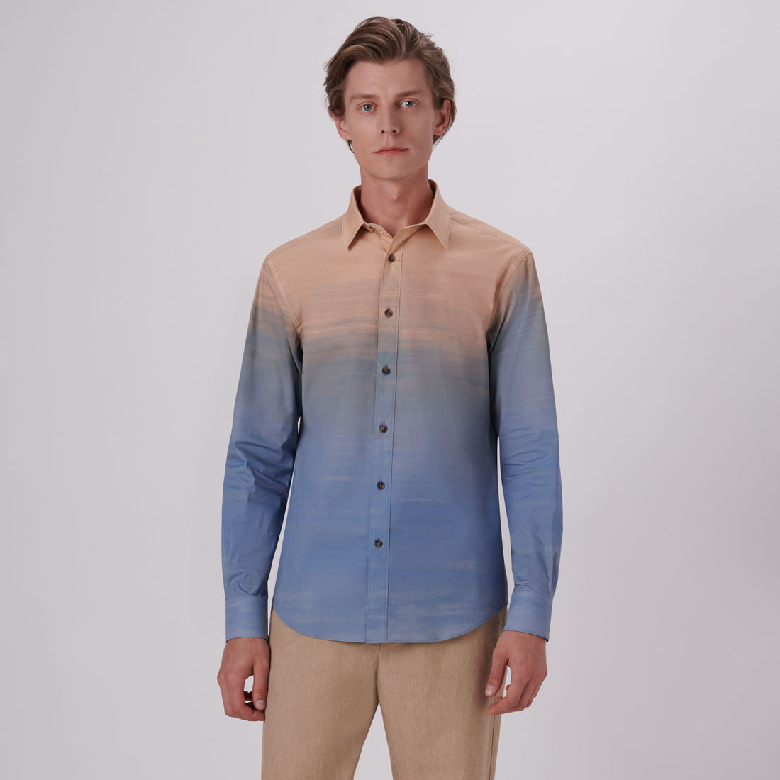 Julian ombre print long-sleeved shirt in comfort stretch cotton with point collar, adjustable notched cuffs, genuine shell buttons and a curved hemline.