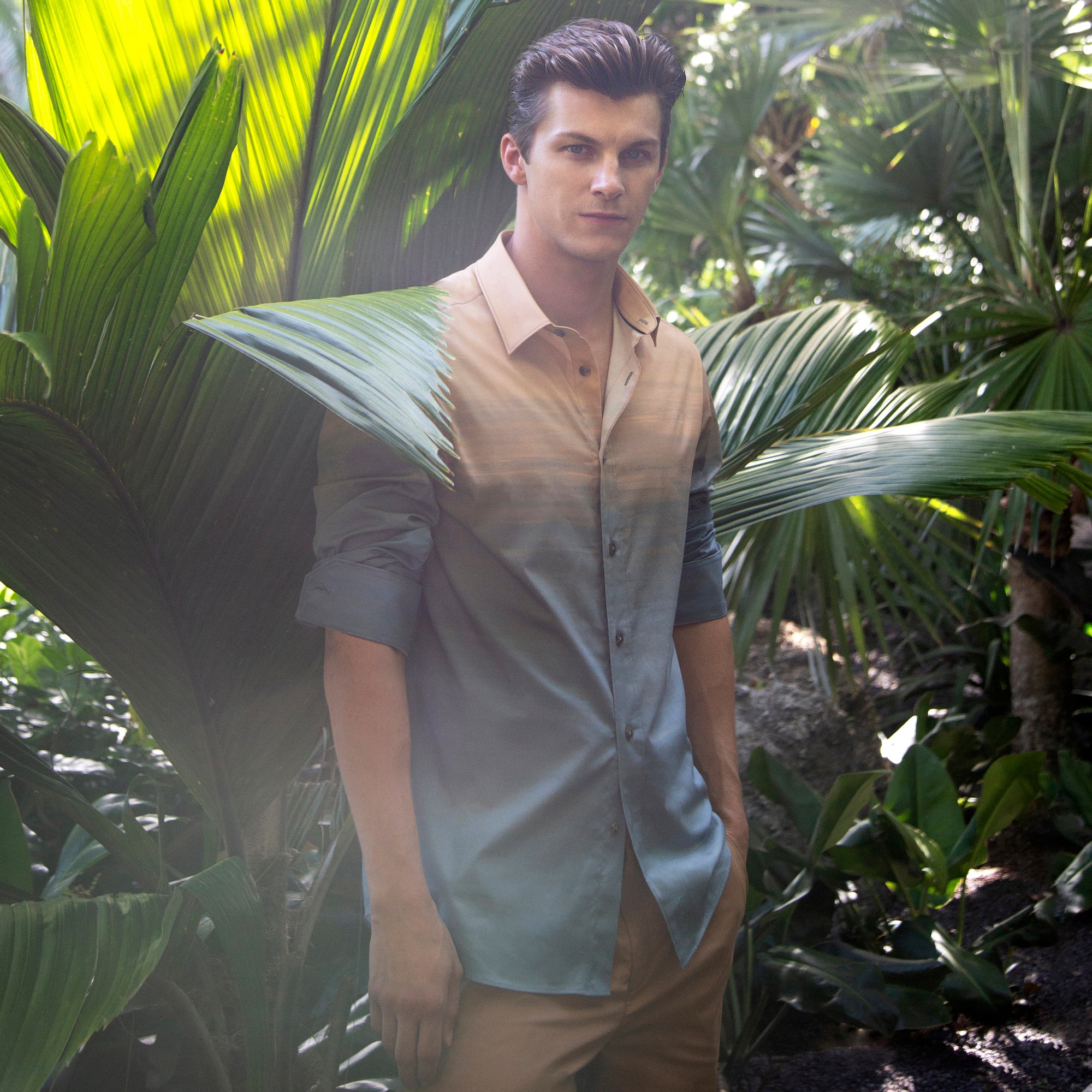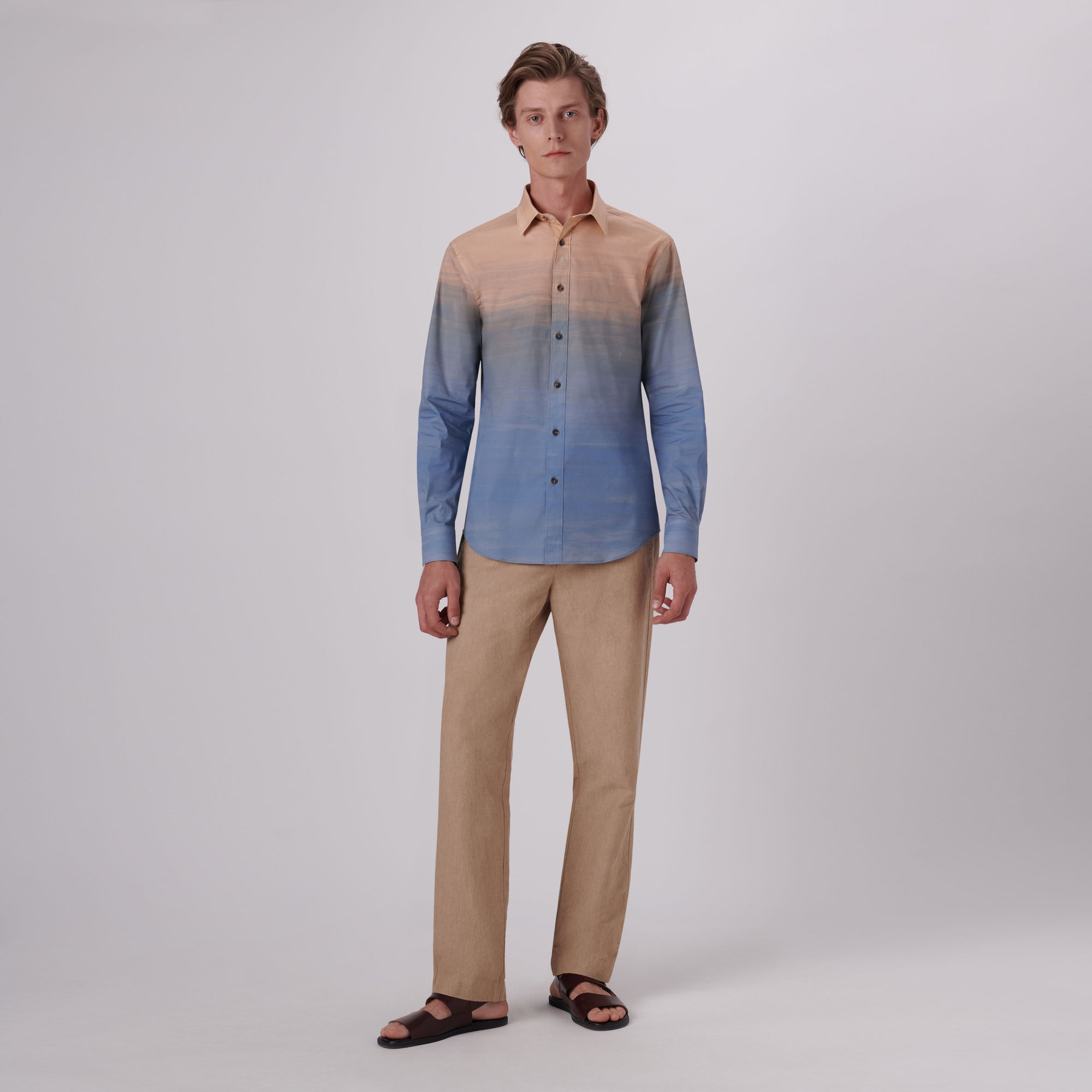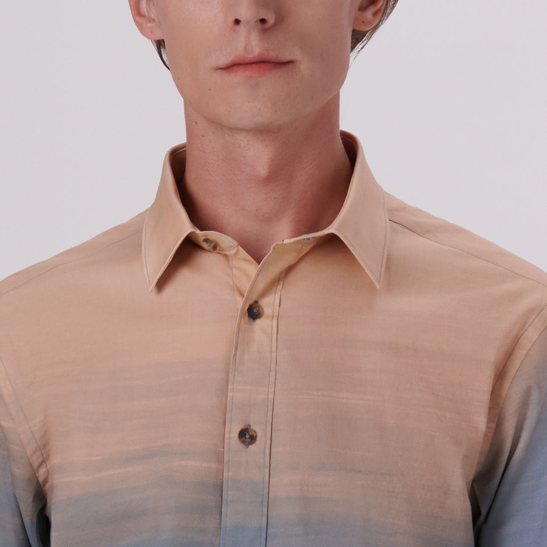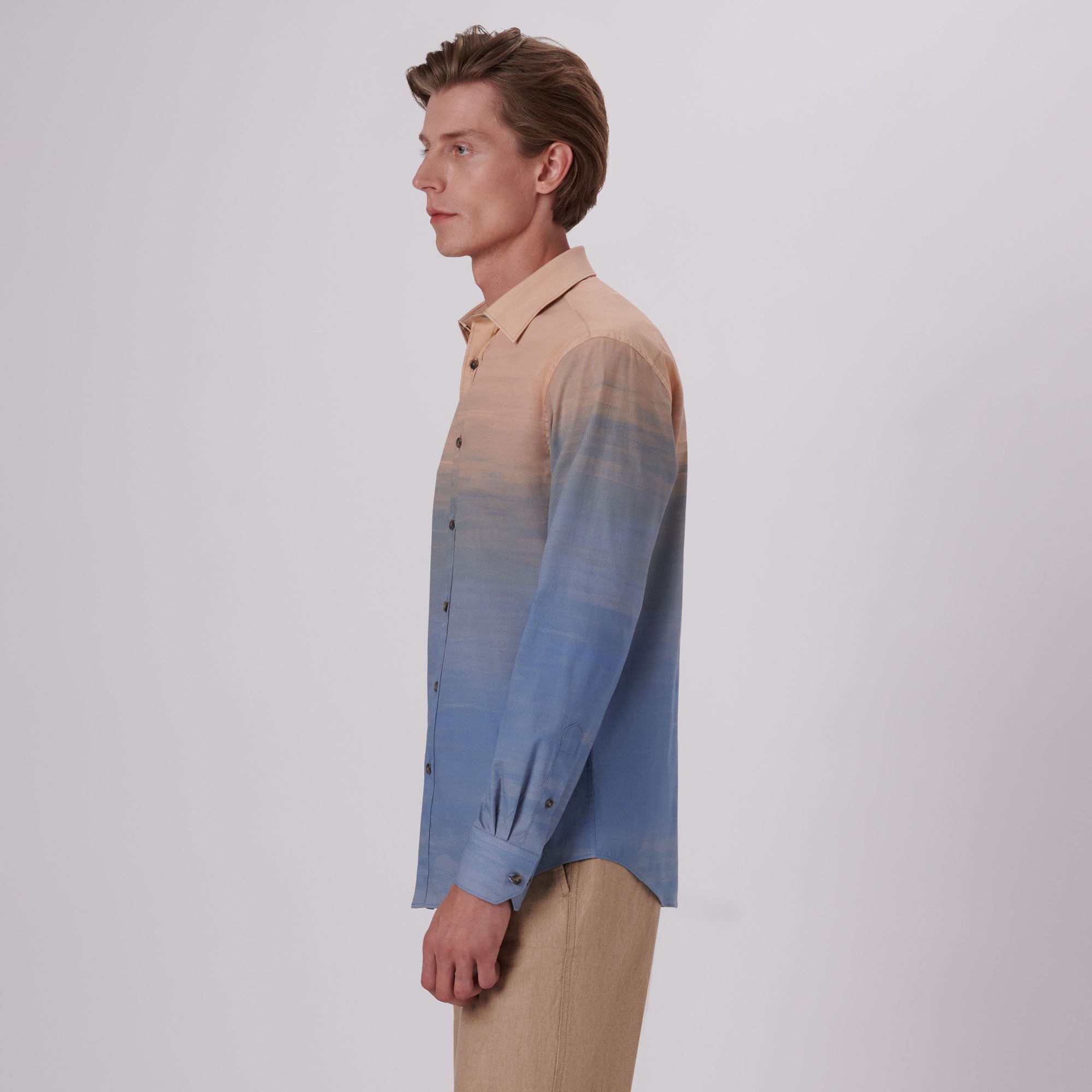 Julian ombre print long-sleeved shirt in comfort stretch cotton with point collar, adjustable notched cuffs, genuine shell buttons and a curved hemline.