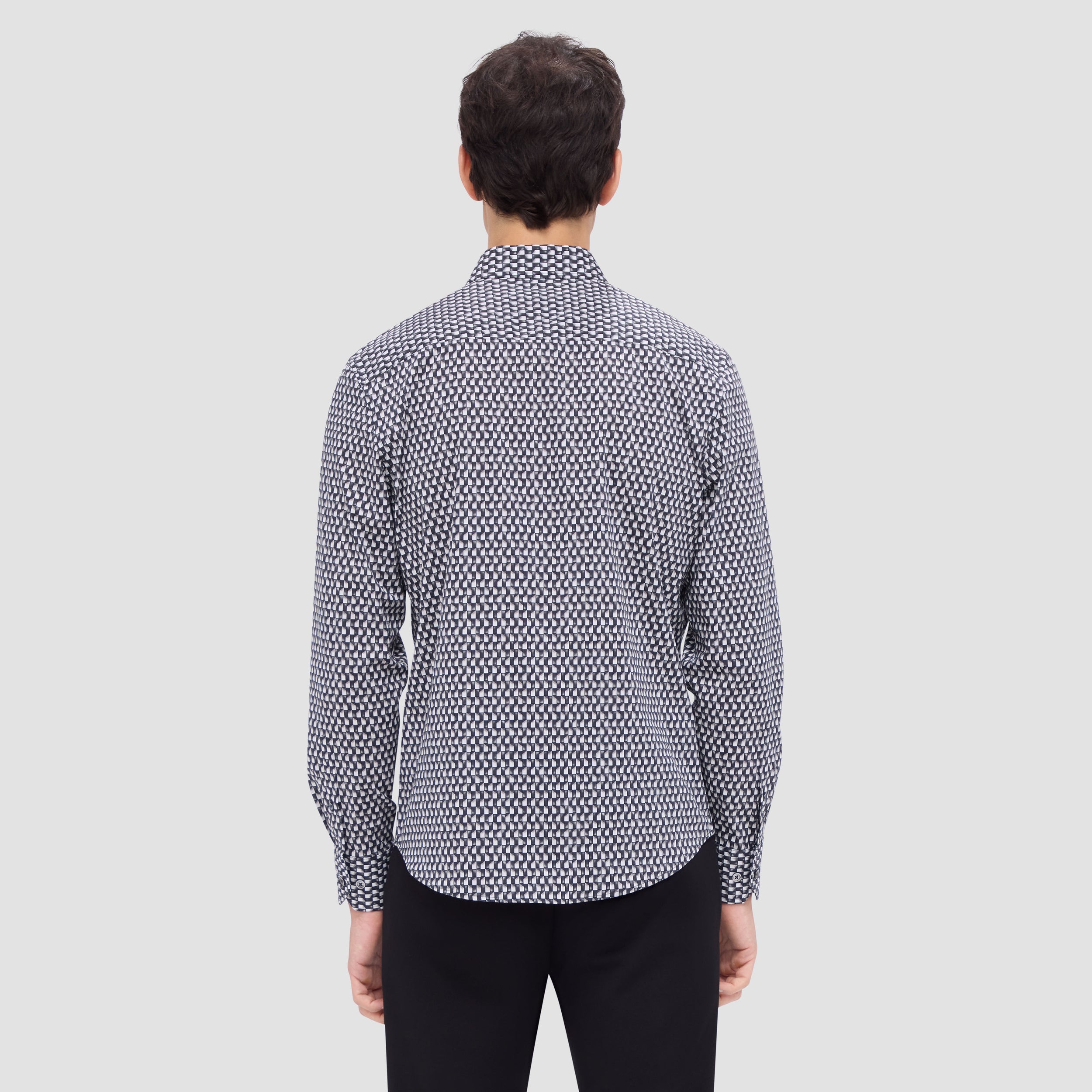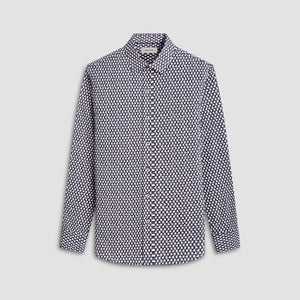 The Julian shirt in COMFORT STRETCH cotton is a contemporary and versatile shirt with optimal comfort and freedom of movement properties. Its timeless and sleek silhouette features long sleeves, a classic point collar, adjustable notched cuffs, a curved hem, and an eye-catching optical illusion print. Wear it tucked or untucked with chinos or trousers for a smart-casual vibe, or with jeans for a relaxed look.