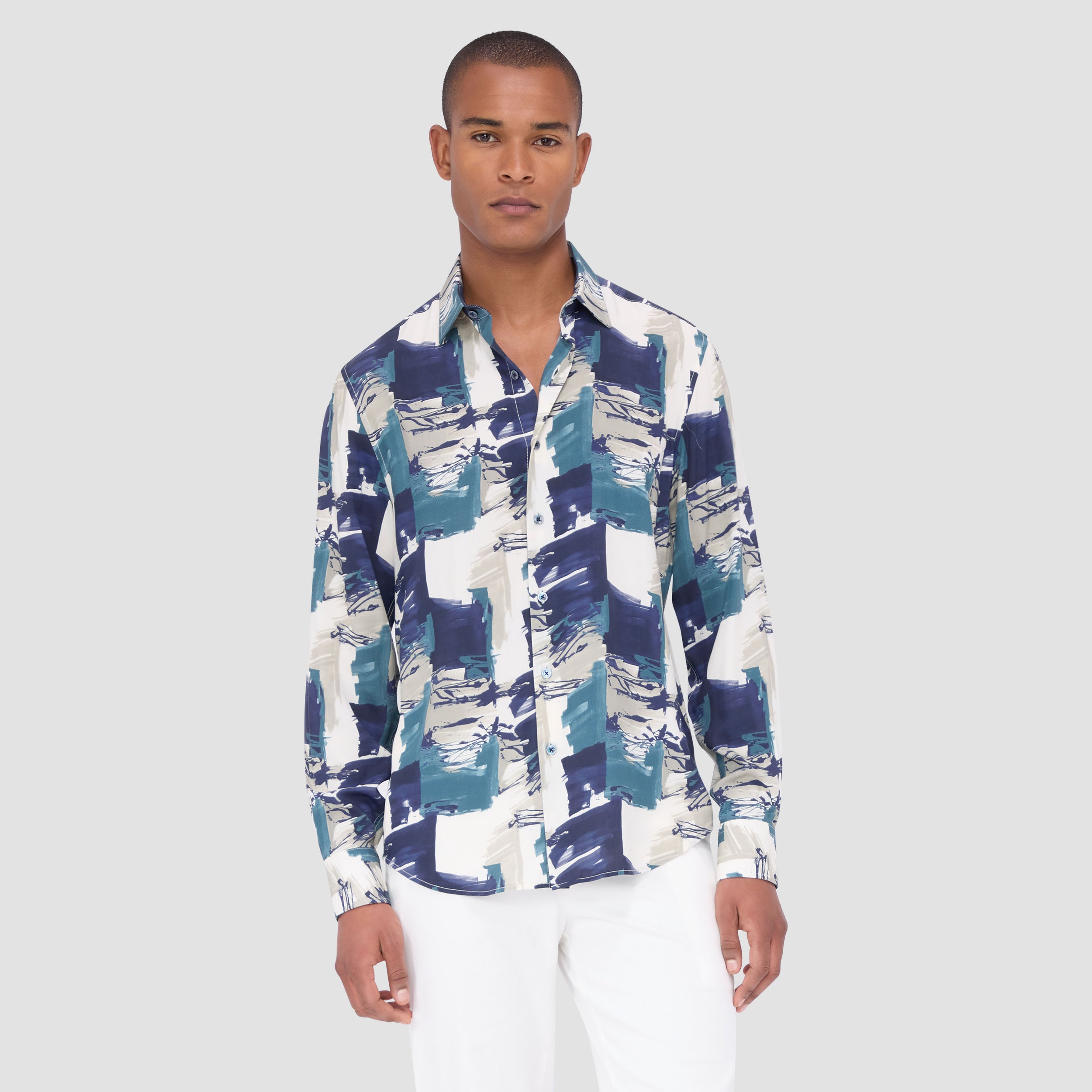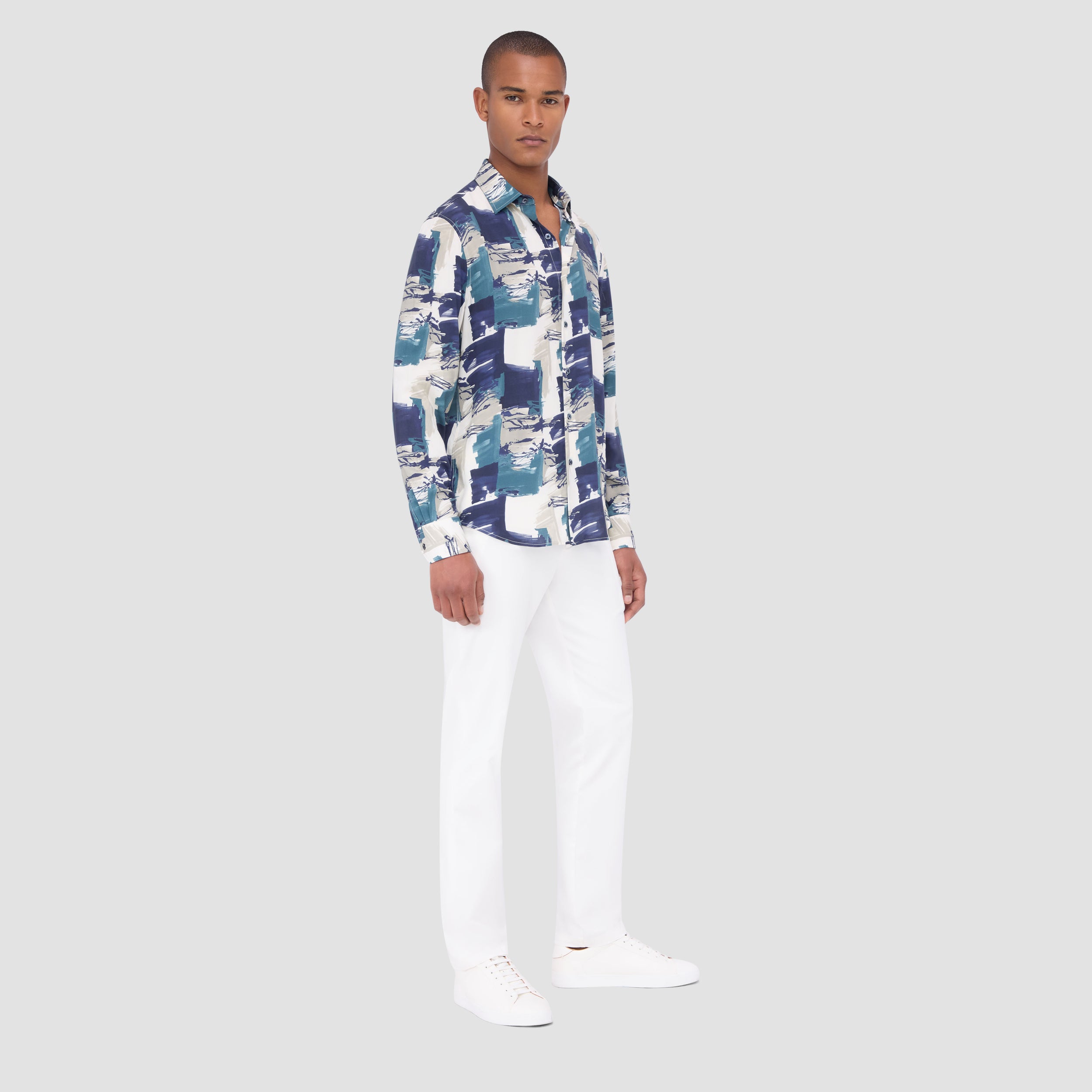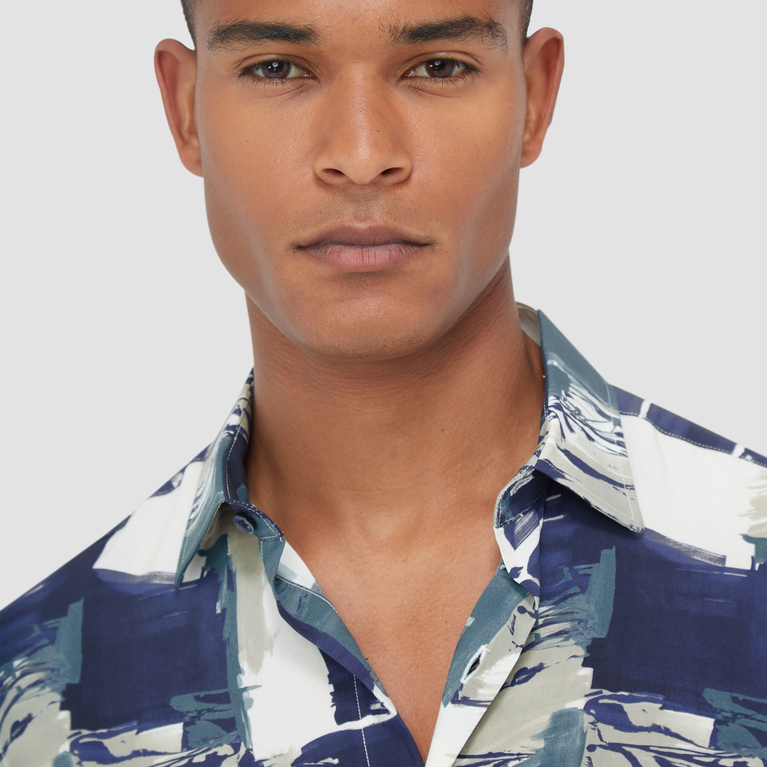 This Julian shirt in Ecovero viscose is soft, lightweight, breathable, responsibly sourced, sustainable and eco-friendly. It features long sleeves, a classic point collar, adjustable notched cuffs, a curved hem, and an eye-catching paint stroke print. Wear it tucked or untucked with chinos or trousers for a smart-casual vibe, or with jeans for a relaxed look. Ecovero viscose is certified EU Ecolabel, FSC and PEFC.