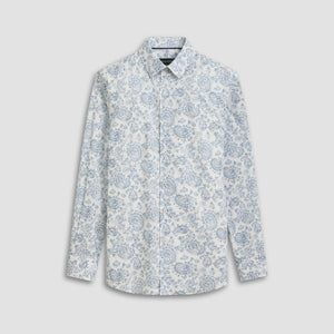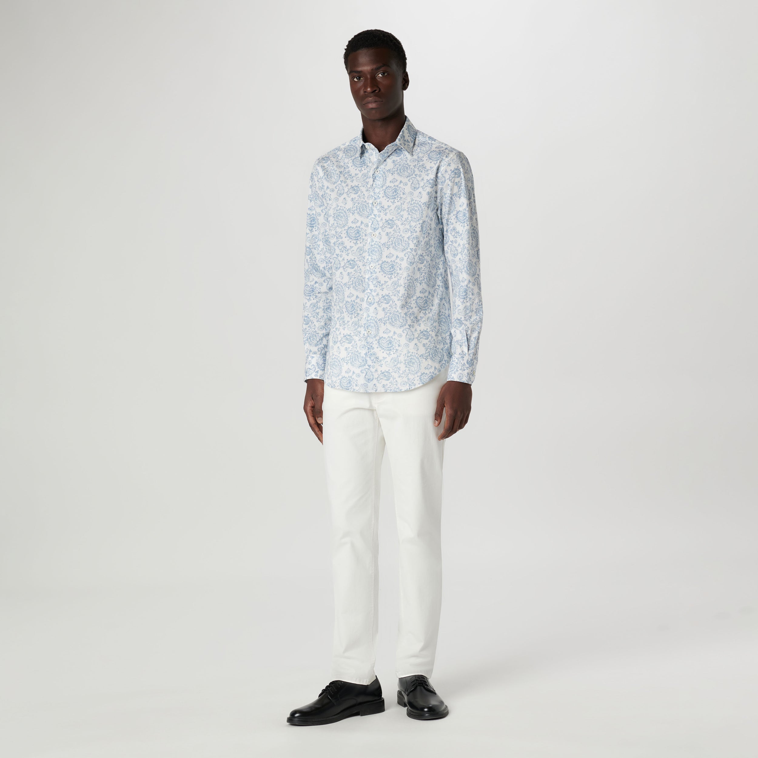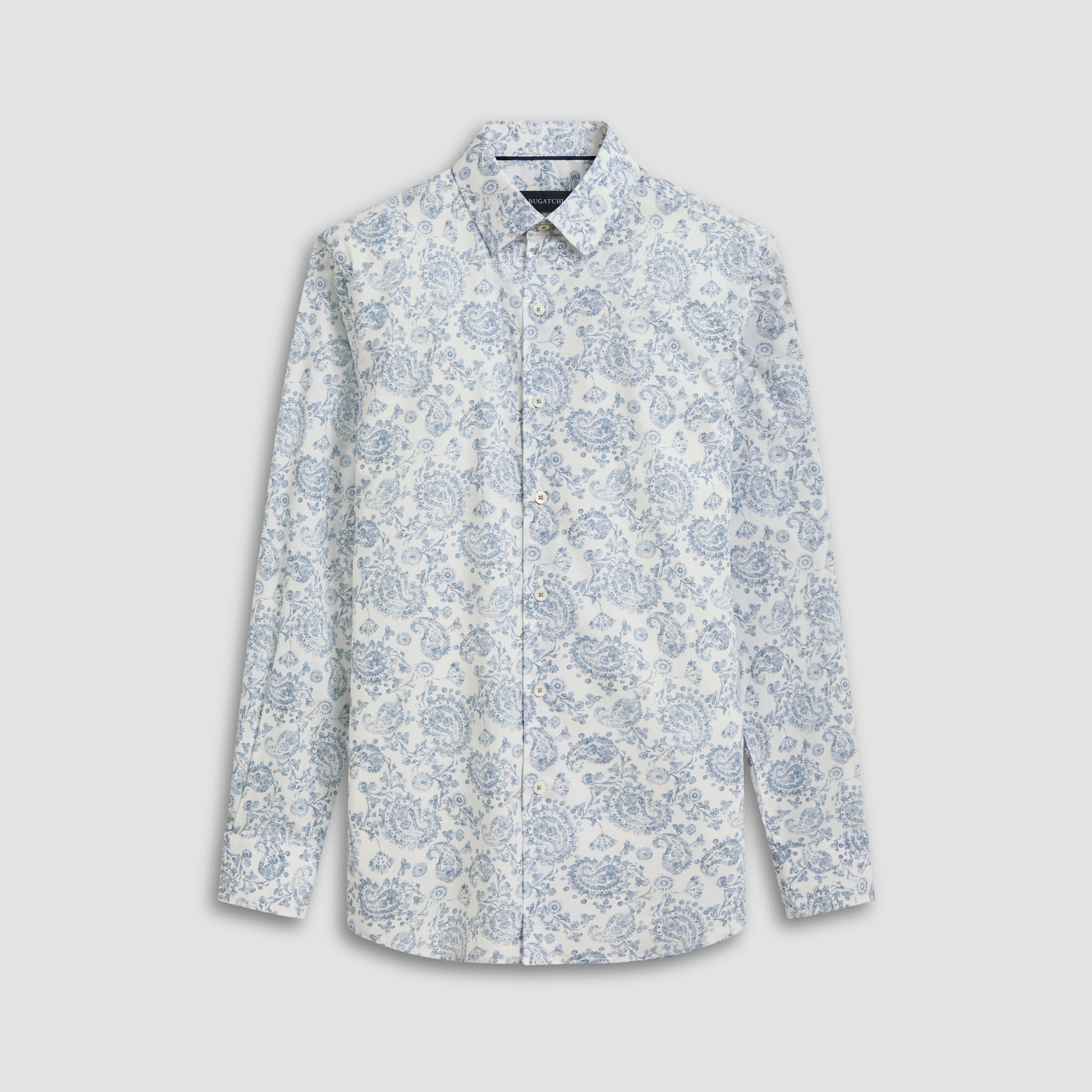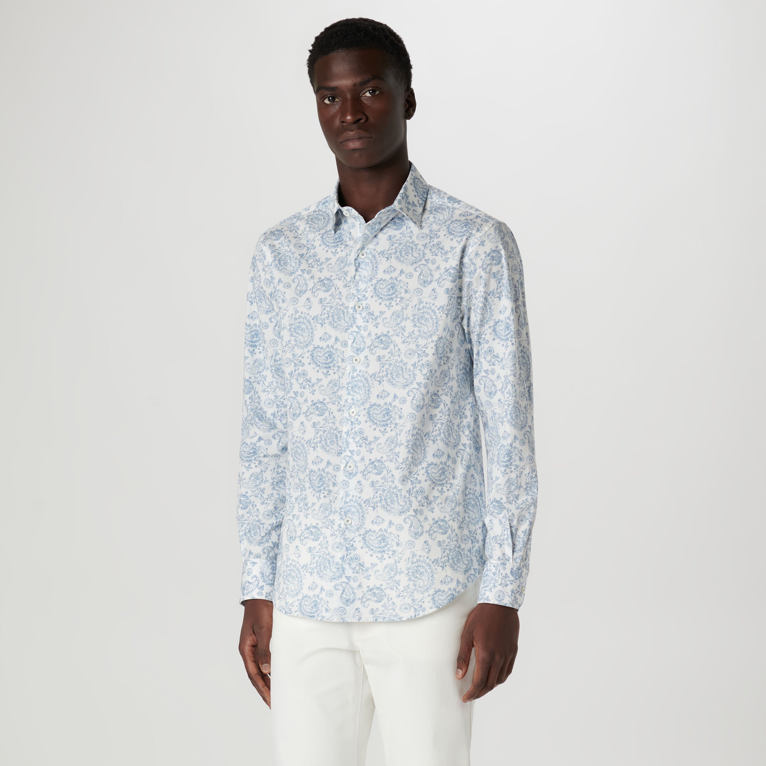 The Julian long-sleeved shirt is crafted from Comfort Stretch cotton and features a paisley print, a point collar, adjustable notched cuffs, and a curved hem.
