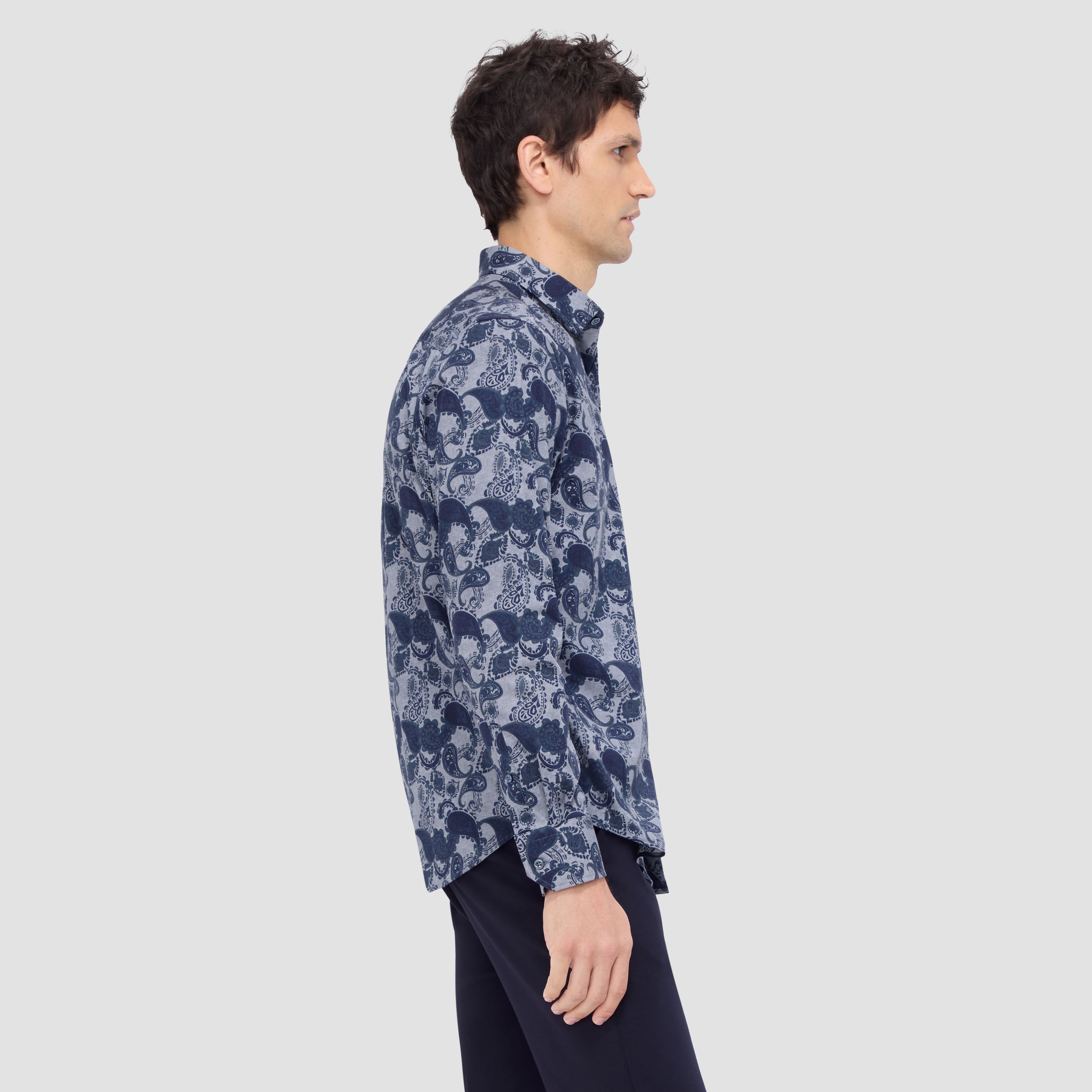 The Julian shirt in COMFORT STRETCH cotton is a contemporary and versatile shirt with optimal comfort and freedom of movement properties. Its timeless and sleek silhouette features long sleeves, a classic point collar, adjustable notched cuffs, a curved hem, and an intricate paisley print. Wear it tucked or untucked with chinos or trousers for a smart-casual vibe, or with jeans for a relaxed look.