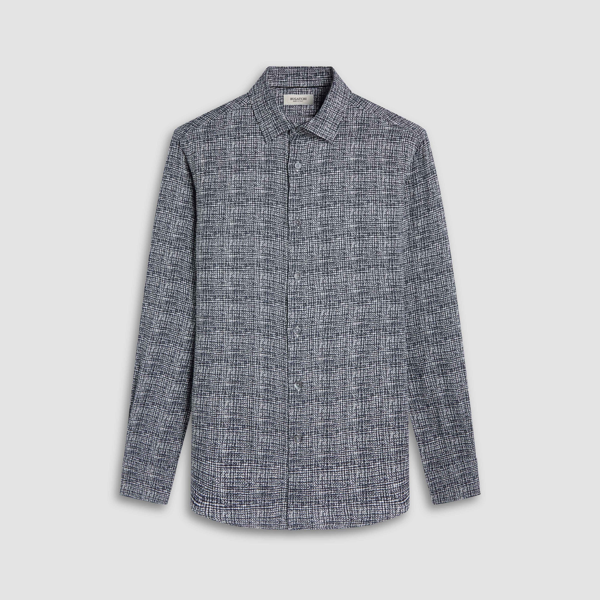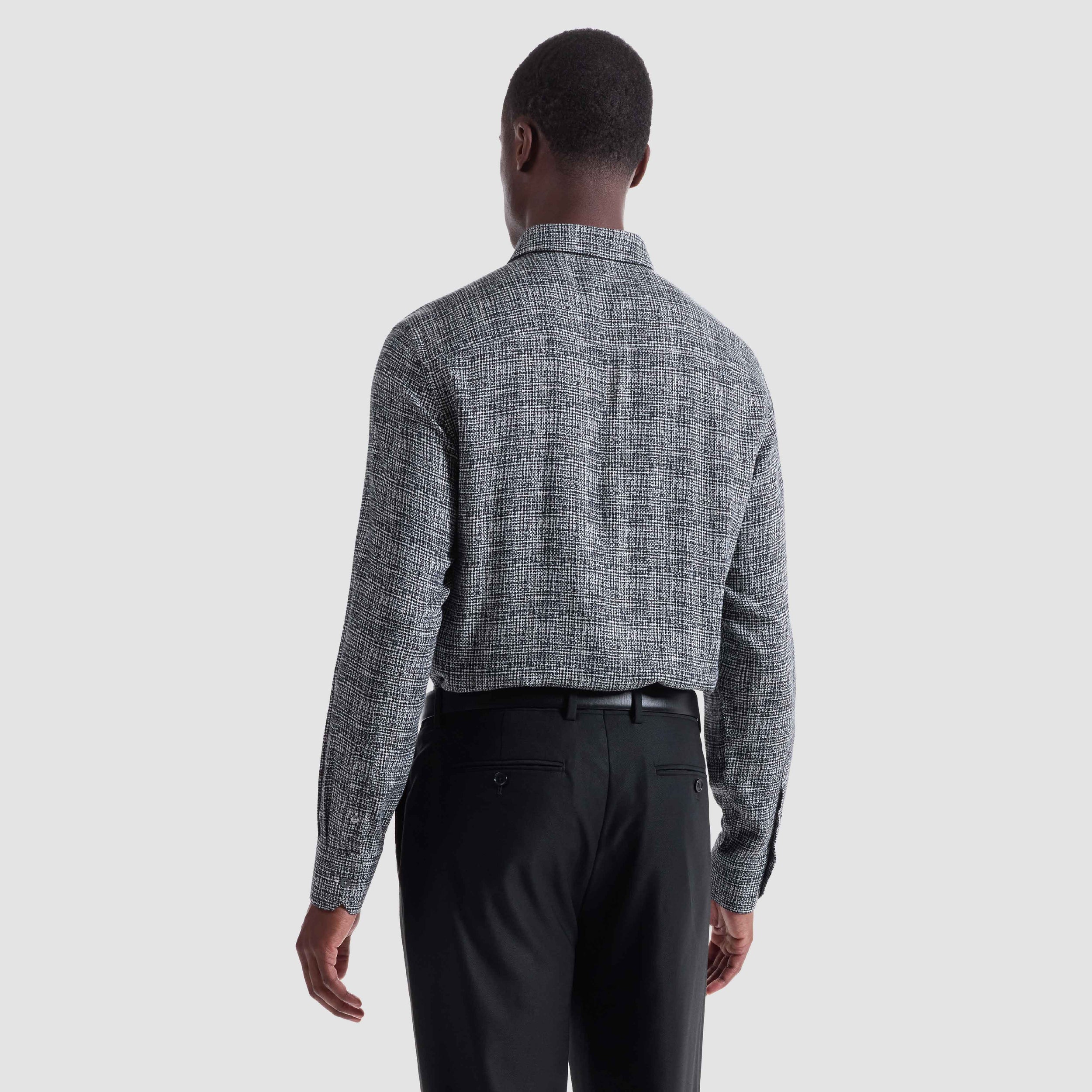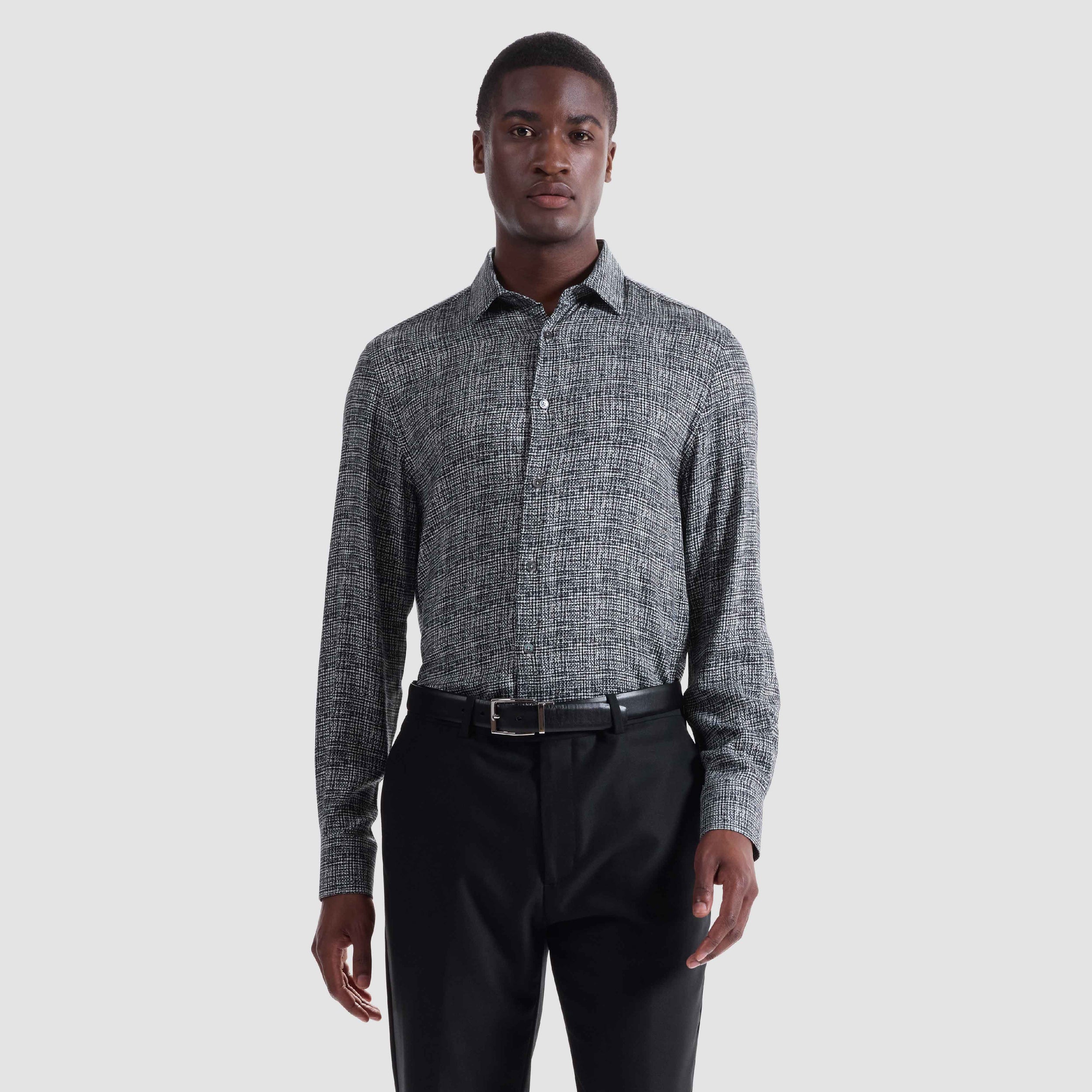 The Julian long-sleeve shirt in pebble print is crafted from 100% Italian viscose Ecovero and features a point collar, mother-of-pearl buttons, a curved hem that looks great tucked or untucked, and adjustable notched cuffs that also convert for cufflinks. Ecovero viscose is soft, lightweight, breathable, responsibly sourced, sustainable, eco-friendly and EU Ecolabel, FSC, PEFC Certified. A refined, all-occasion shirt.