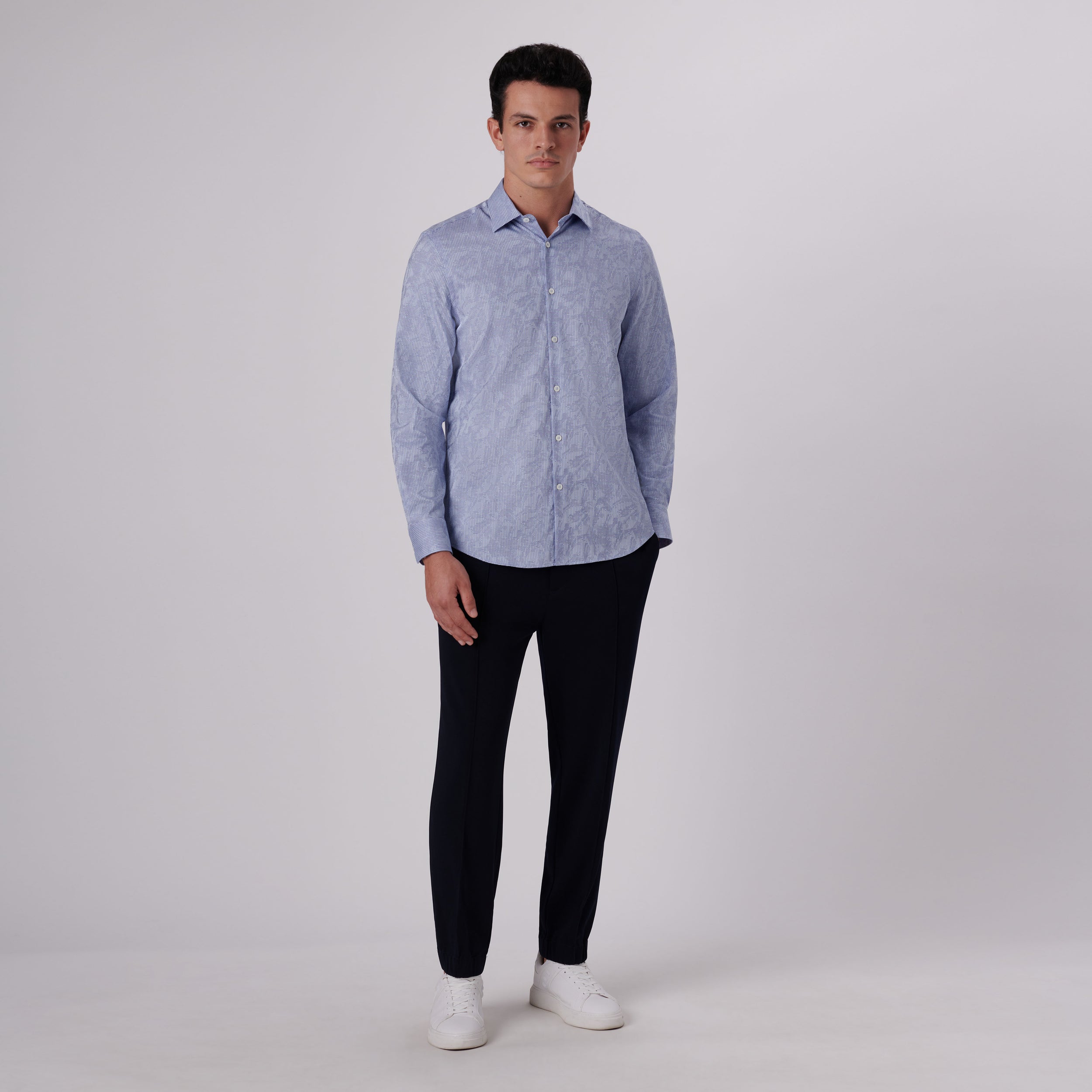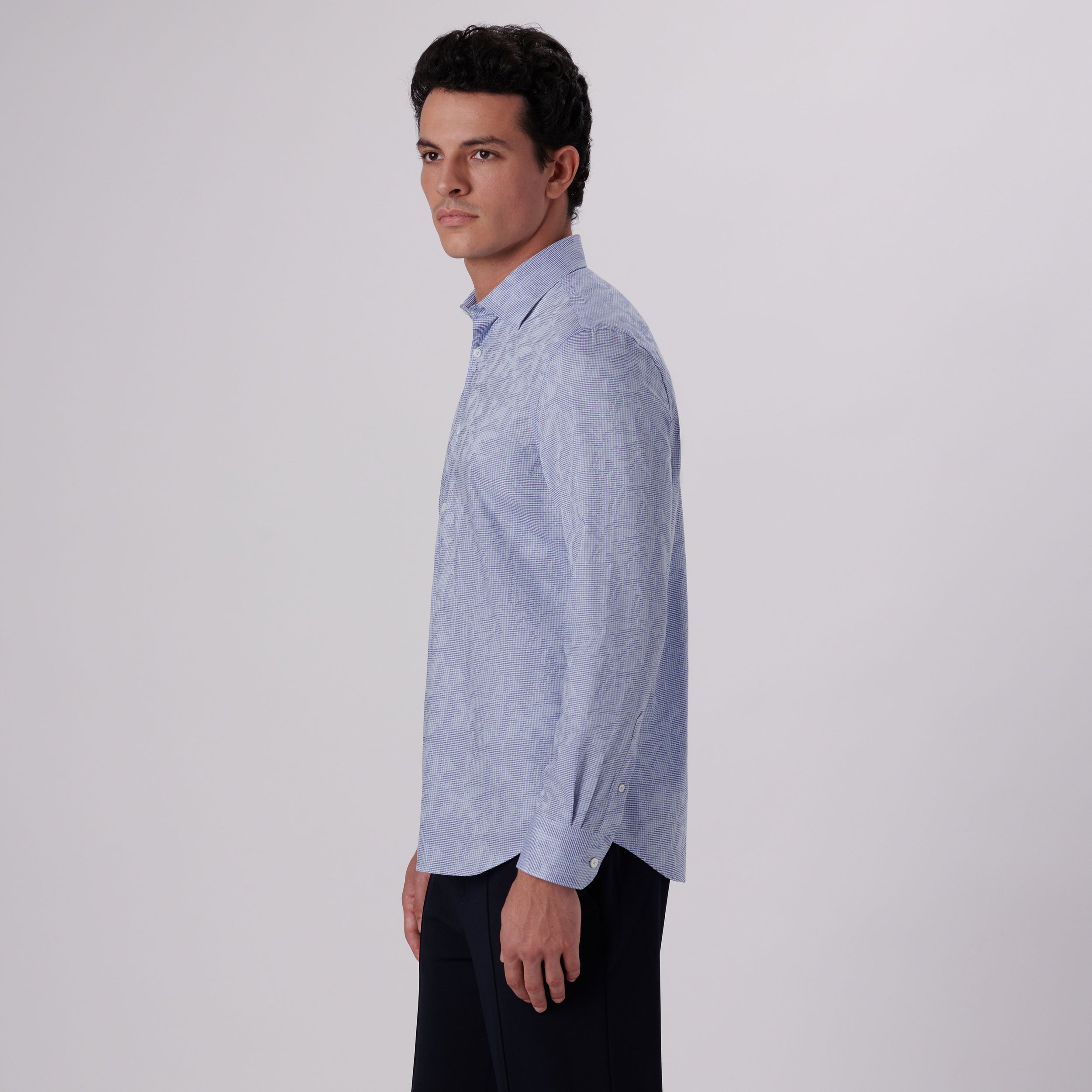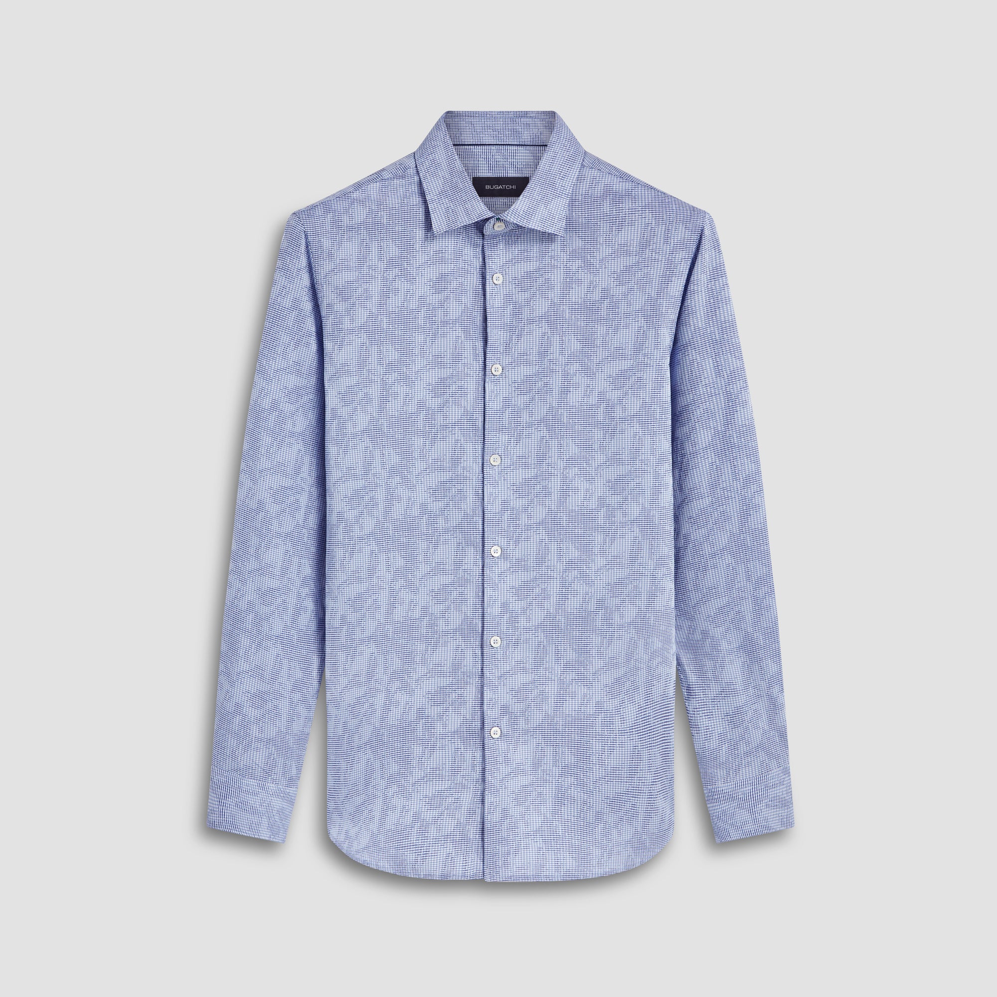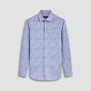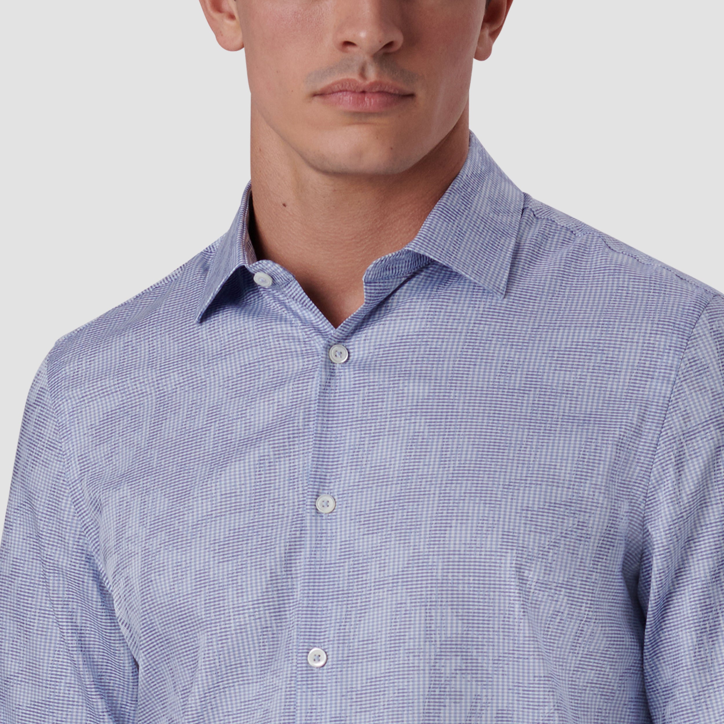 Julian pin check print long-sleeved shirt in comfort stretch cotton with point collar, French placket, adjustable notched cuffs, genuine shell buttons and a curved hemline.
