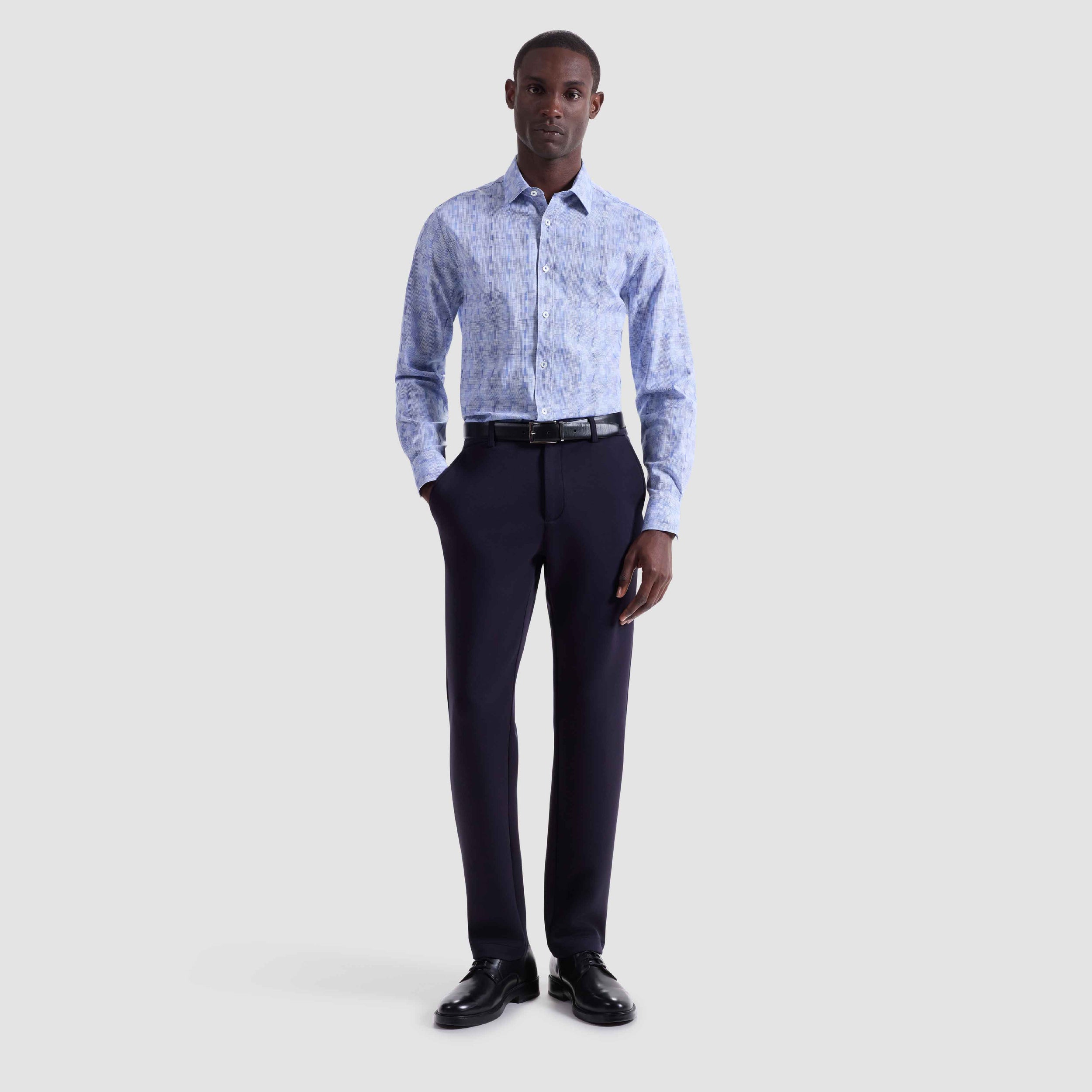 The Julian long-sleeve Comfort Stretch shirt in pin check print is crafted from premium cotton with a hint of stretch for all-day comfort. It features a point collar, mother-of-pearl buttons, a curved hem that looks great tucked or untucked, and adjustable notched cuffs that also convert for cufflinks. A refined, all-occasion shirt.