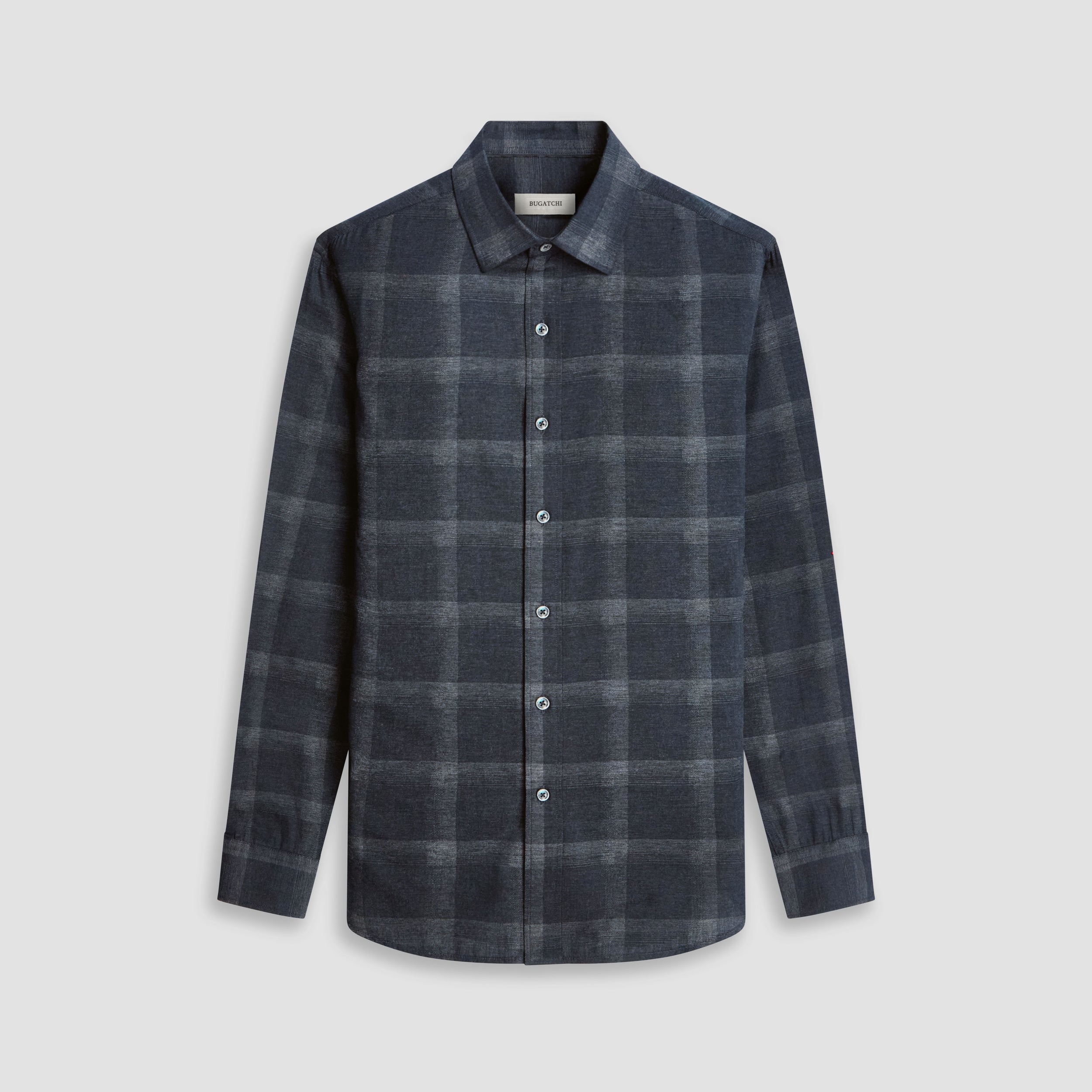 The Julian shirt in cotton-viscose blend offers a soft and breathable feel. Its timeless and sleek silhouette features long sleeves, a classic point collar, adjustable notched cuffs, a curved hem, and a timeless plaid pattern. Wear it tucked or untucked with chinos or trousers for a smart-casual vibe, or with jeans for a relaxed look.