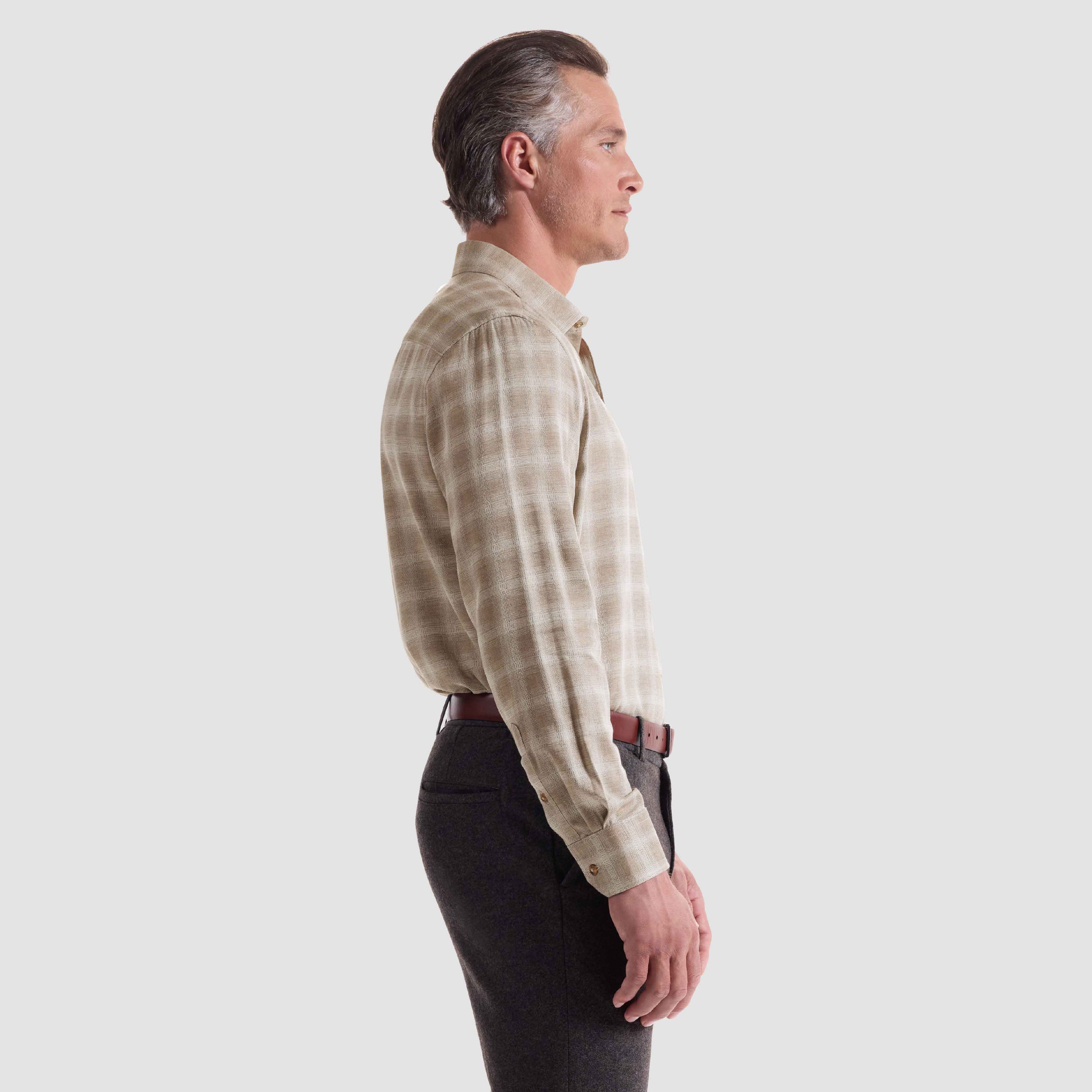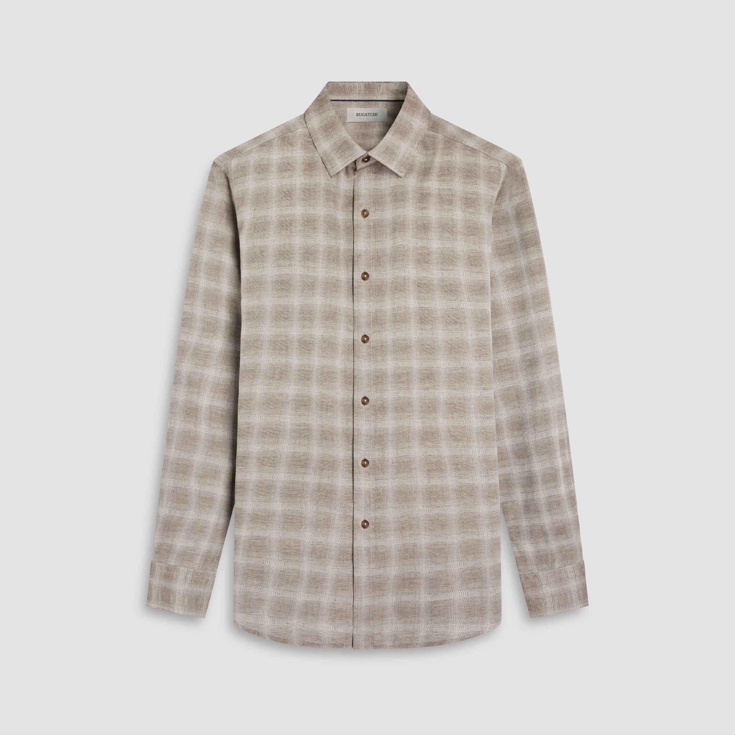 The Julian long-sleeve shirt in plaid is crafted from a premium Italian blend of cotton and viscose. It features a point collar, a curved hem that looks great tucked or untucked, and adjustable notched cuffs that also convert for cufflinks. A refined, all-occasion shirt.