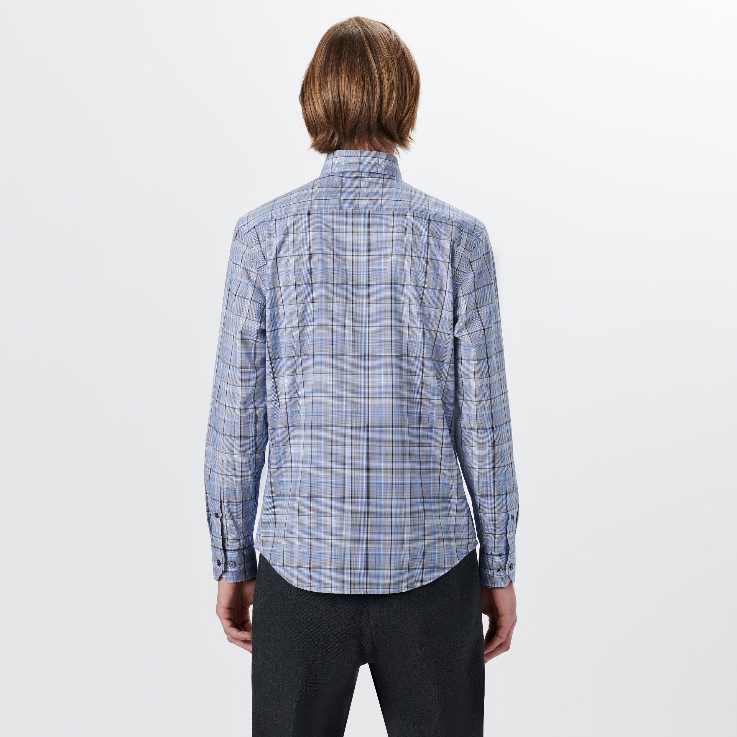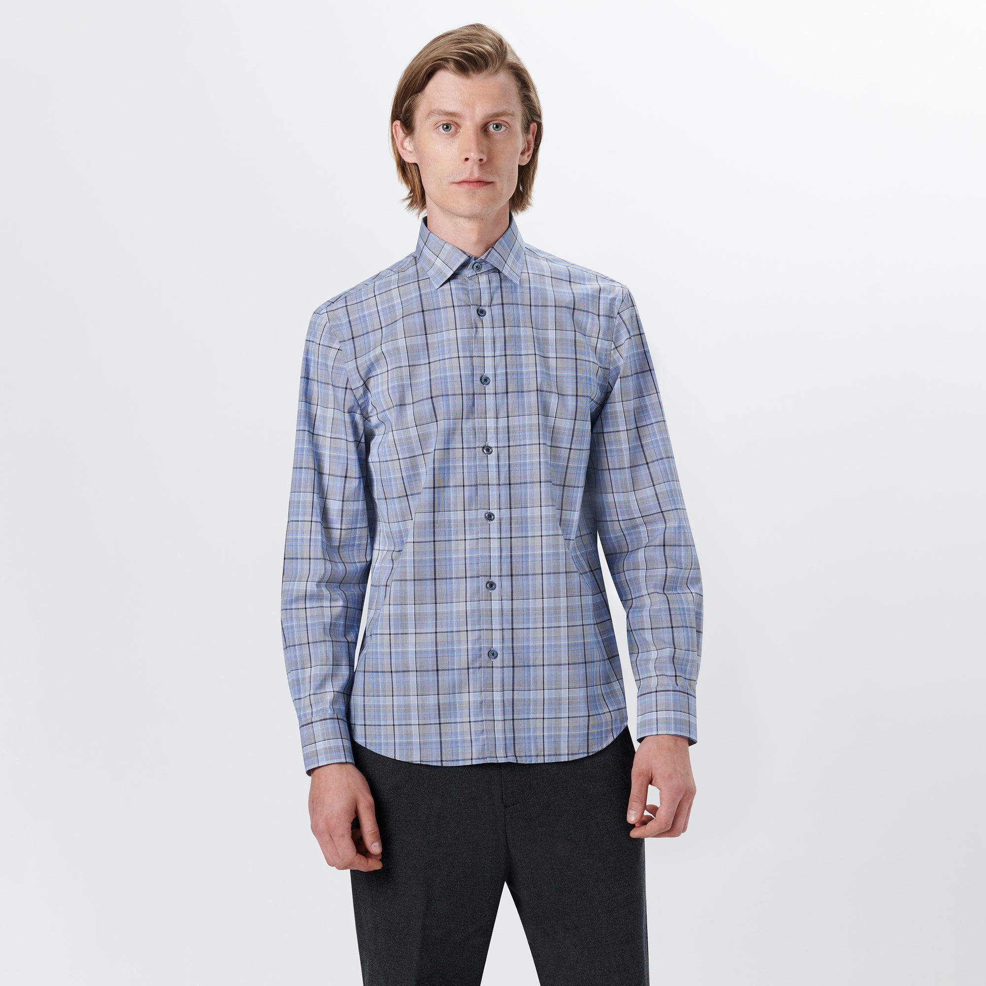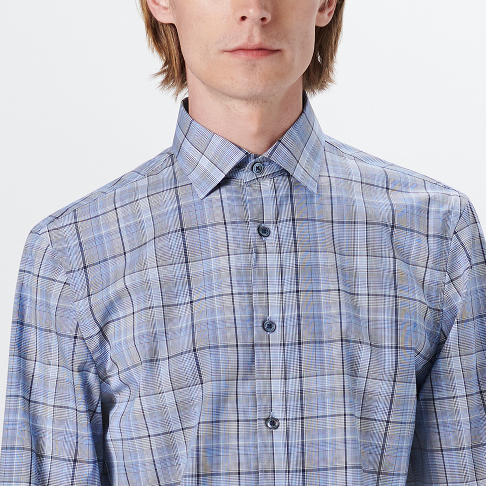 JULIAN long-sleeved shirt in prince of Wales check COMFORT STRETCH cotton with point collar, adjustable notched cuffs and curved hem.