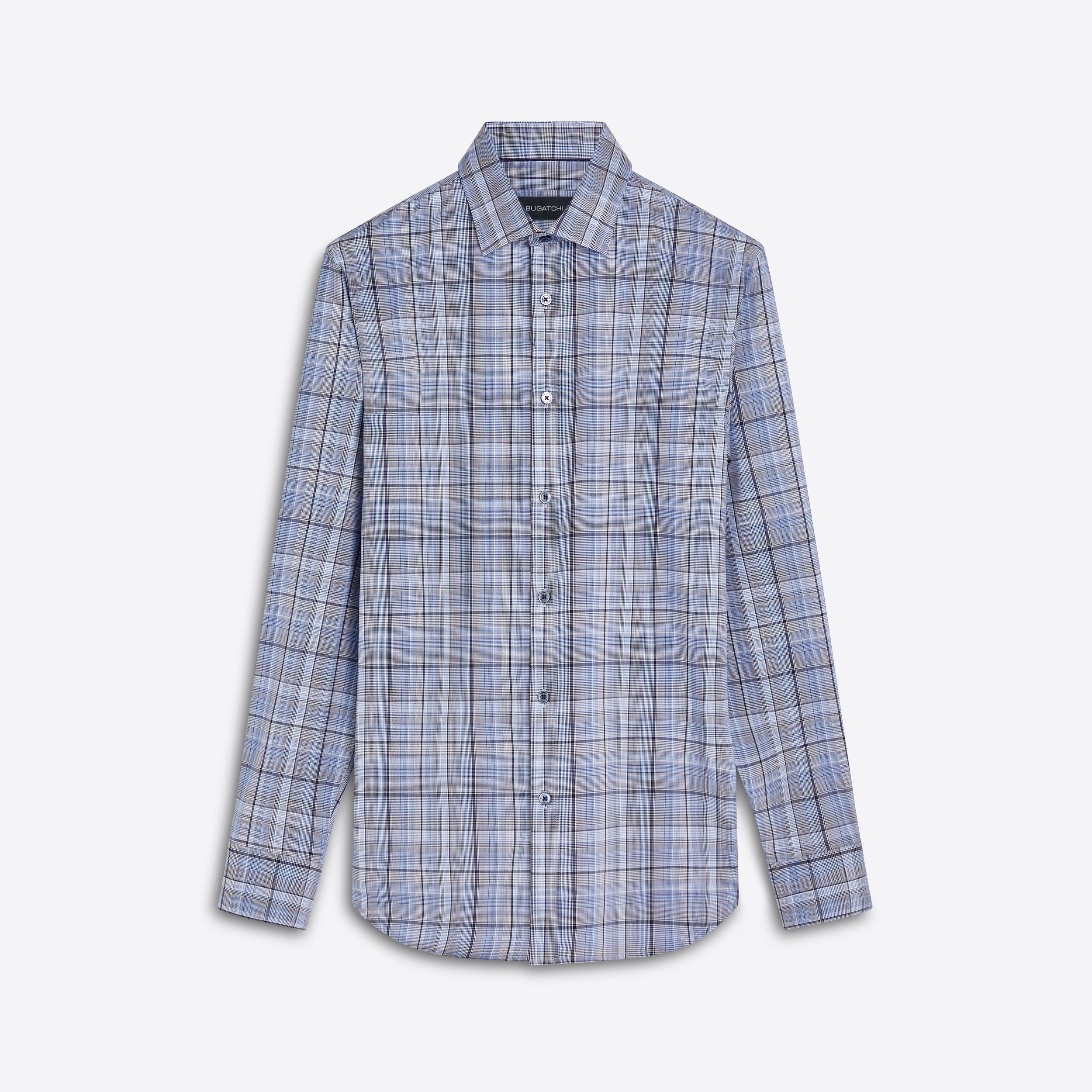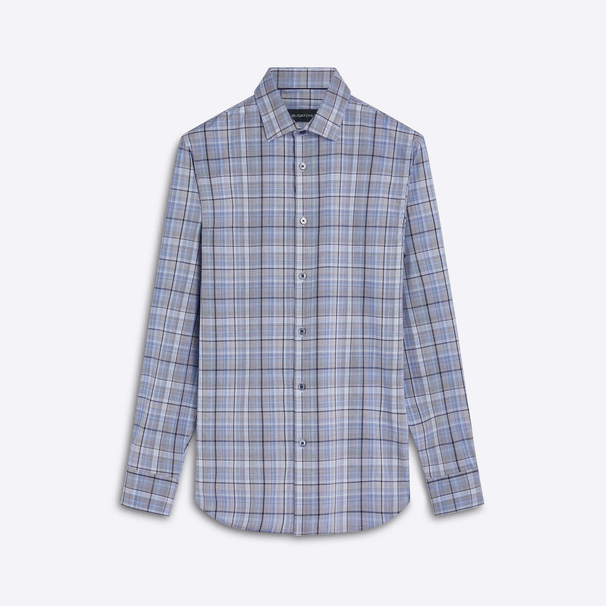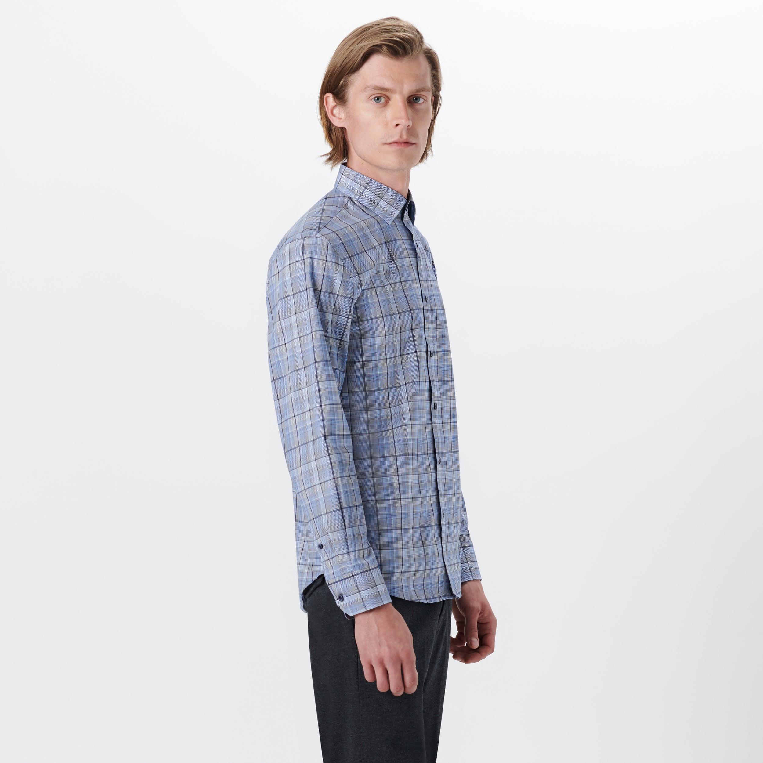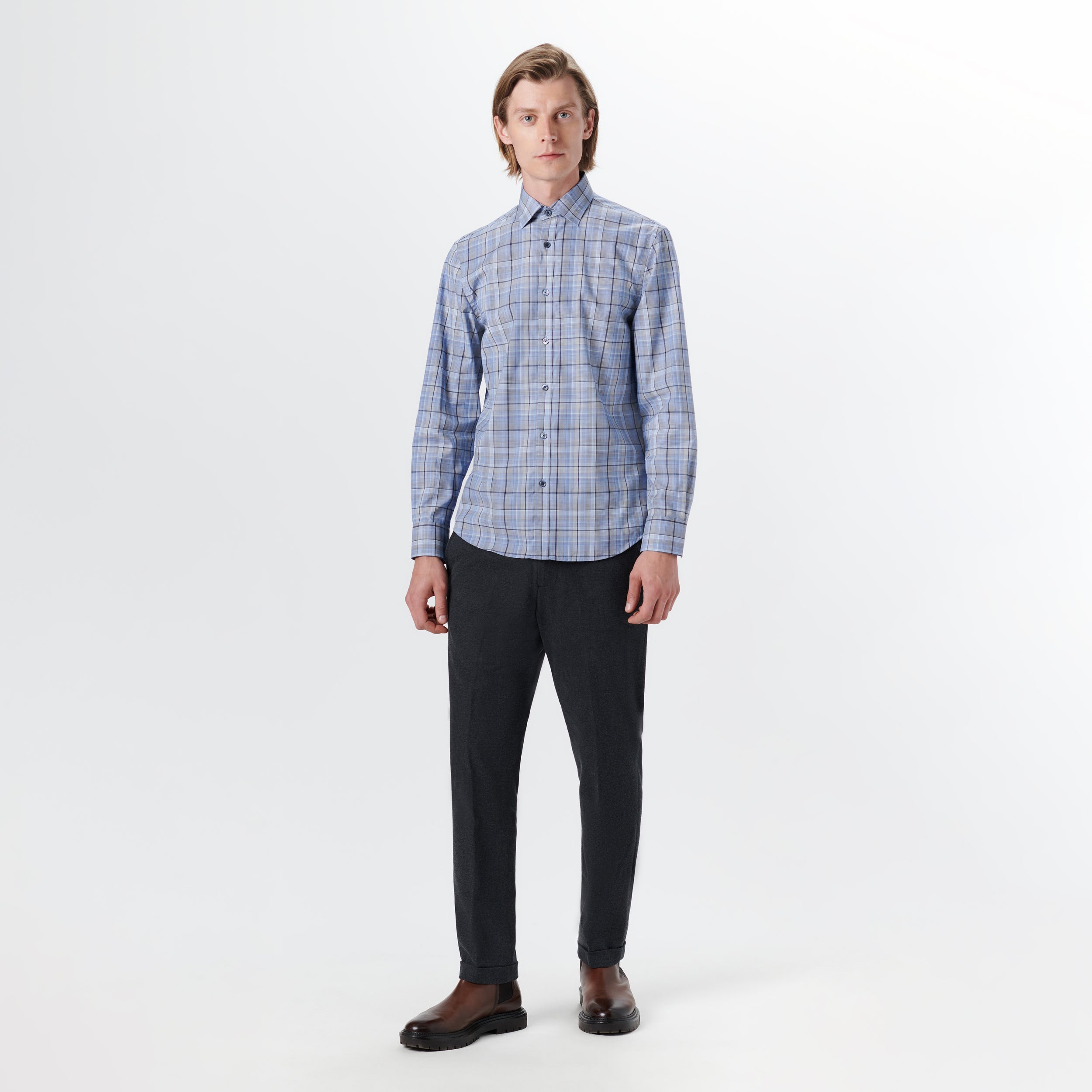 JULIAN long-sleeved shirt in prince of Wales check COMFORT STRETCH cotton with point collar, adjustable notched cuffs and curved hem.